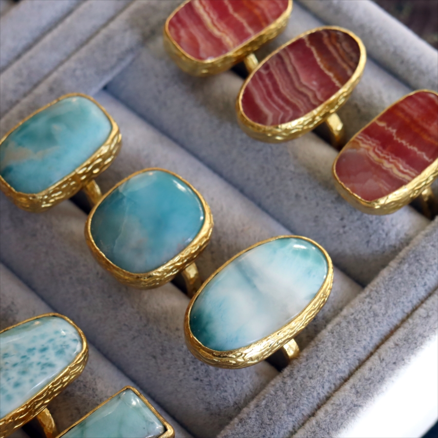 | 素 材 | 天然石(ラリマ―)・真鍮(22kゴールドプレート) |