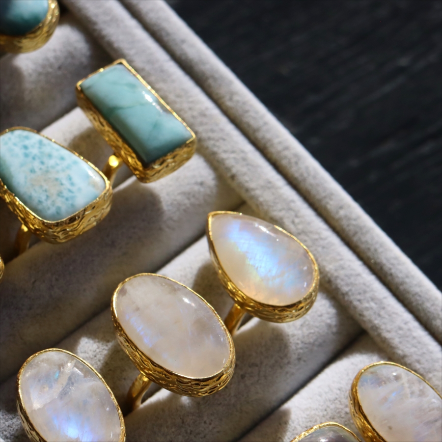 | 素 材 | 天然石(レインボームーンストーン)・真鍮(22kゴールドプレート) |