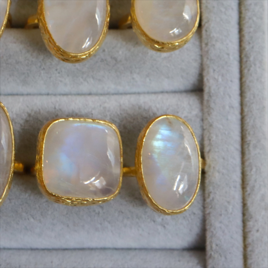 | 素 材 | 天然石(レインボームーンストーン)・真鍮(22kゴールドプレート) |