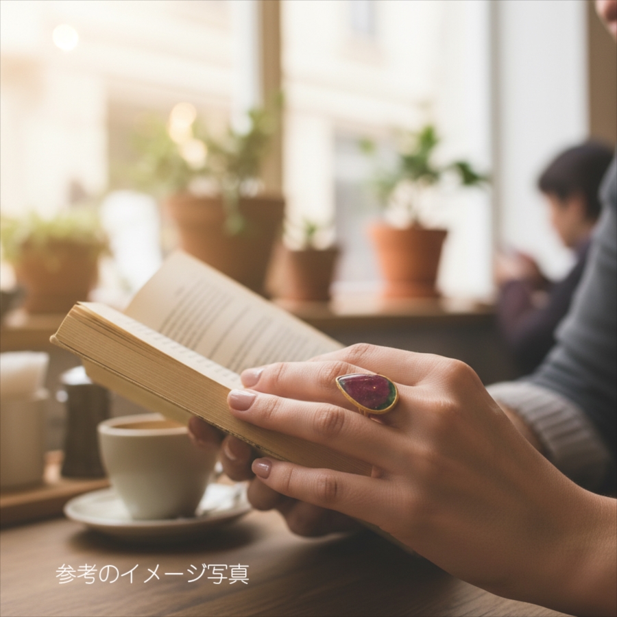 ストーンに厚みがあって存在感がありながら、どこか温かみのある佇まいで、カジュアルにもきれいめにも自然にフィット。人と同じでは物足りない、そんな大人の女性の手元にそっと寄り添ってくれる一点です。