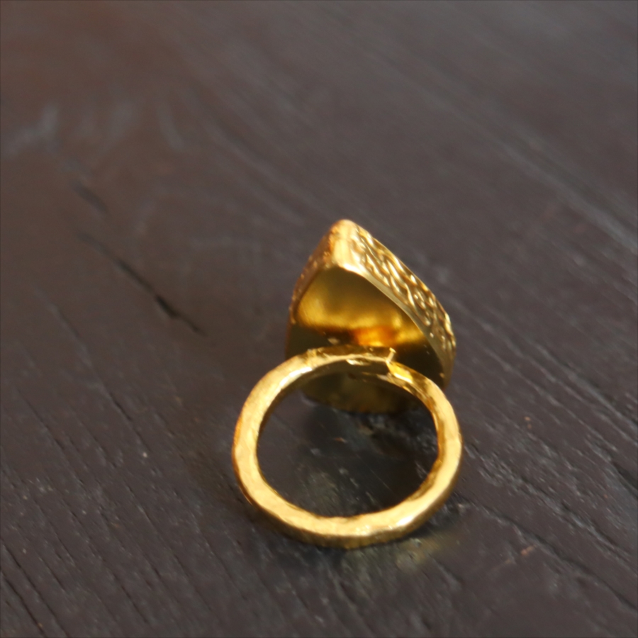 ストーンに厚みがあって存在感がありながら、どこか温かみのある佇まいで、カジュアルにもきれいめにも自然にフィット。人と同じでは物足りない、そんな大人の女性の手元にそっと寄り添ってくれる一点です。