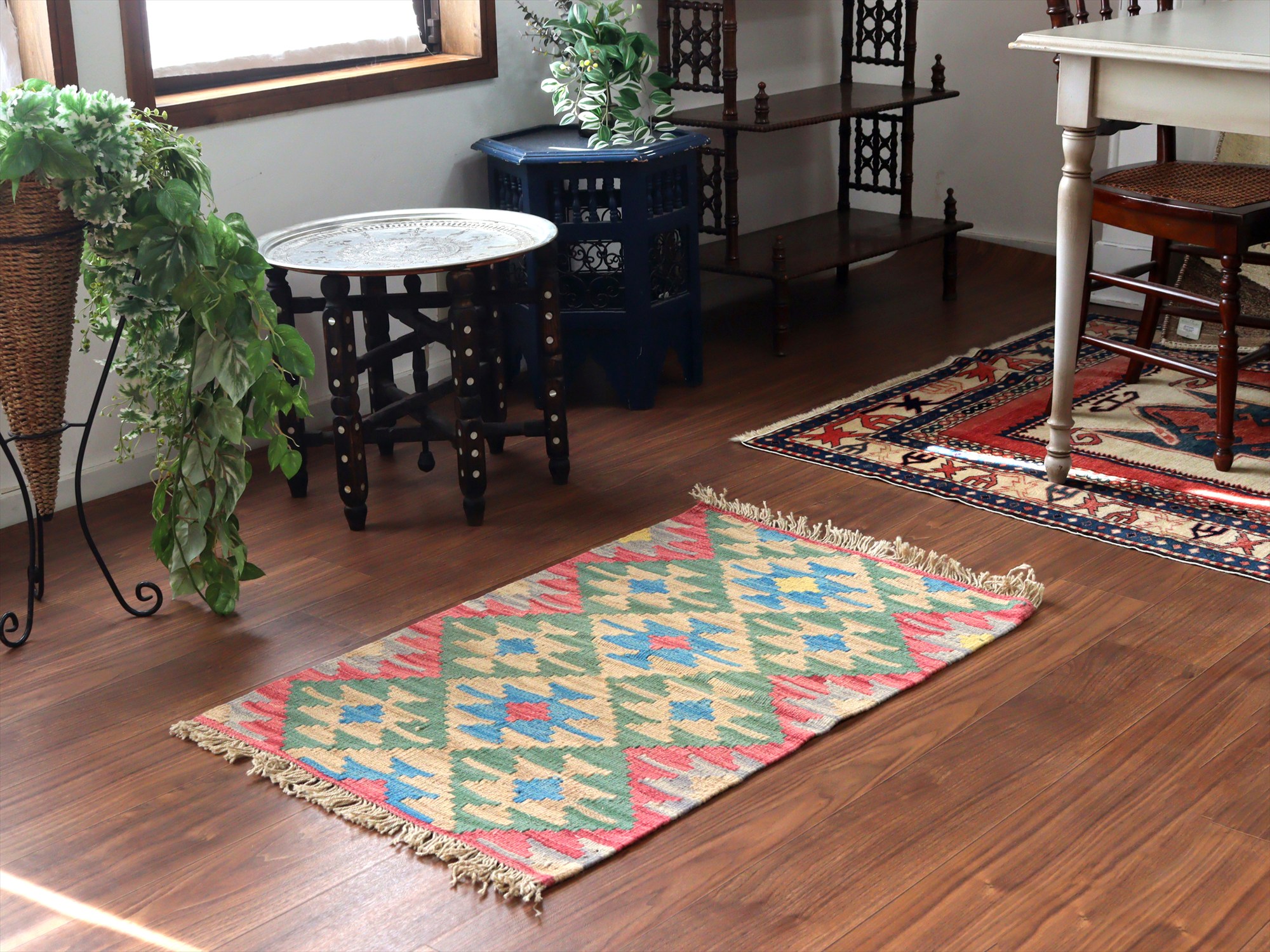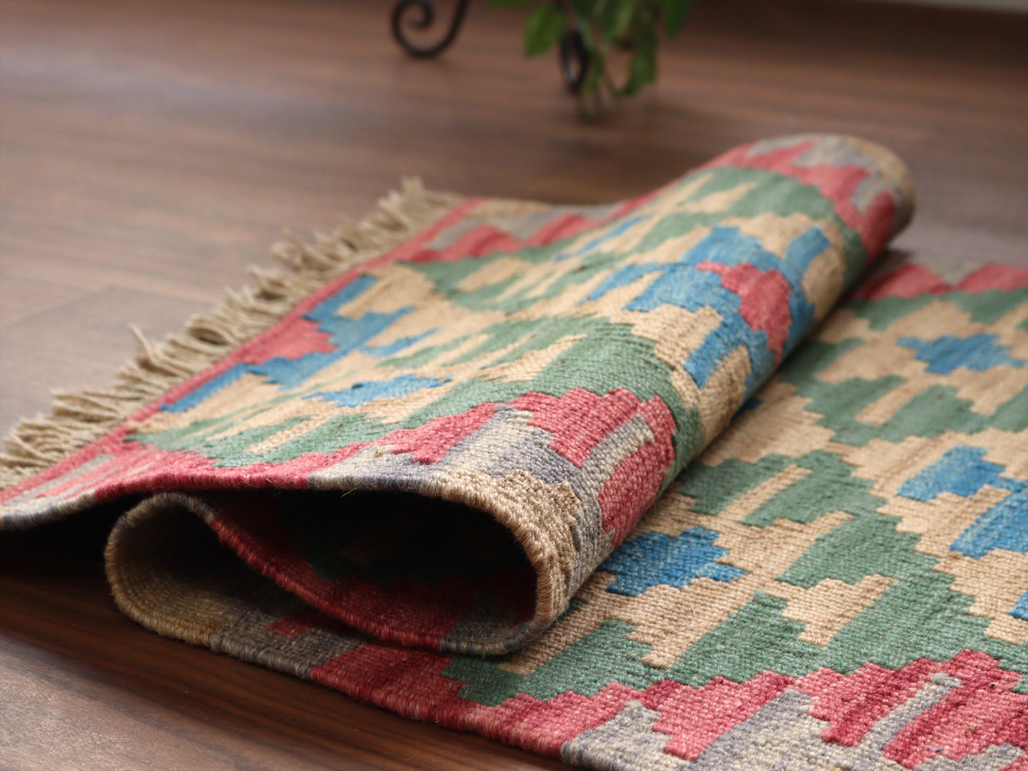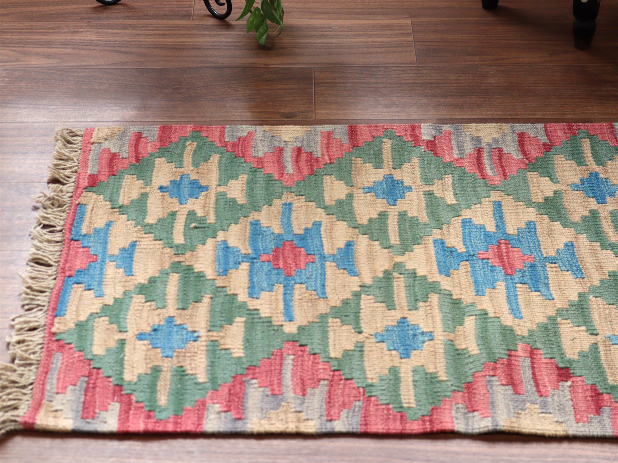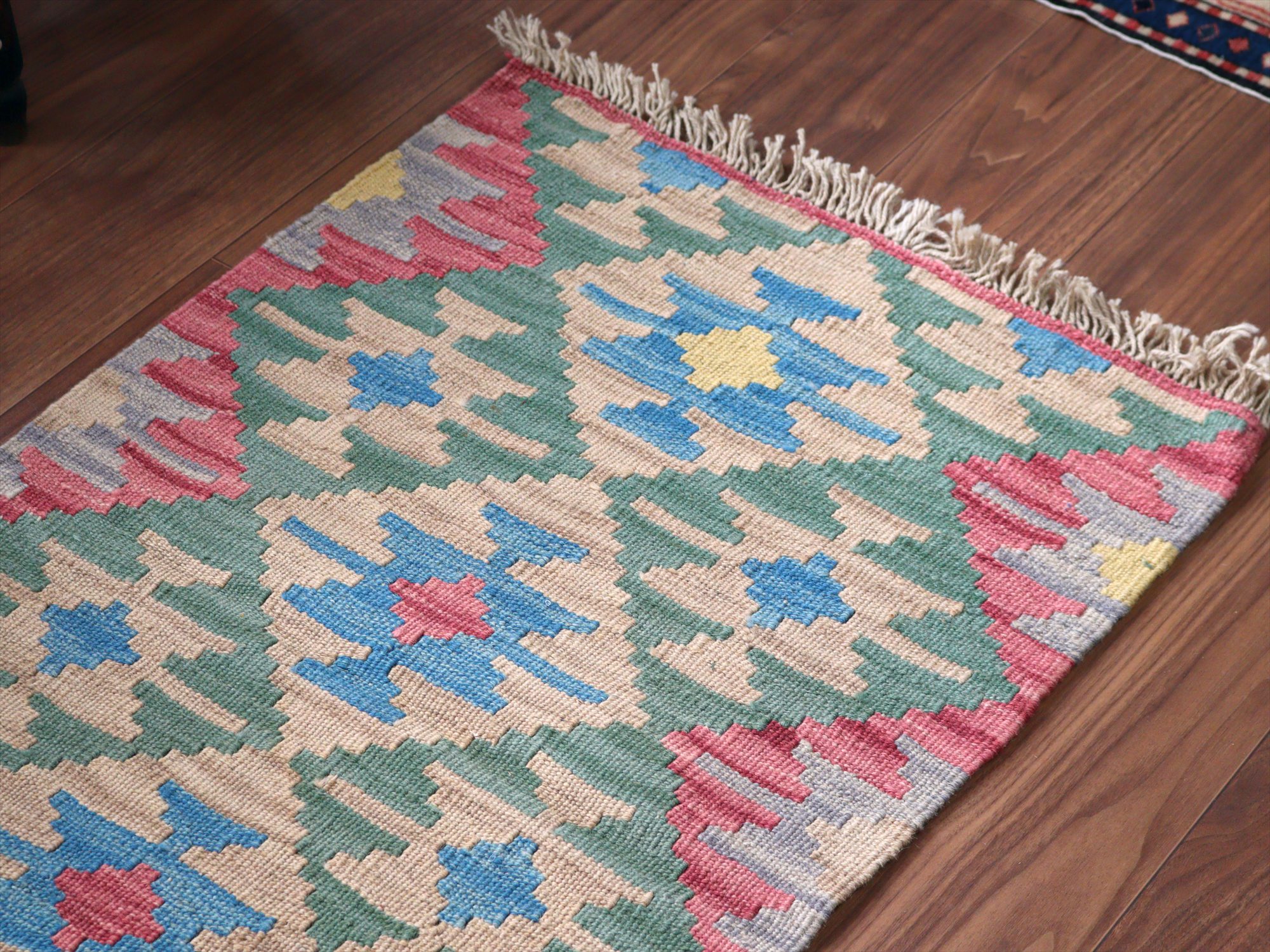 カシュカイキリム イラン 手織り98×61cm カラフルな幾何学モチーフ