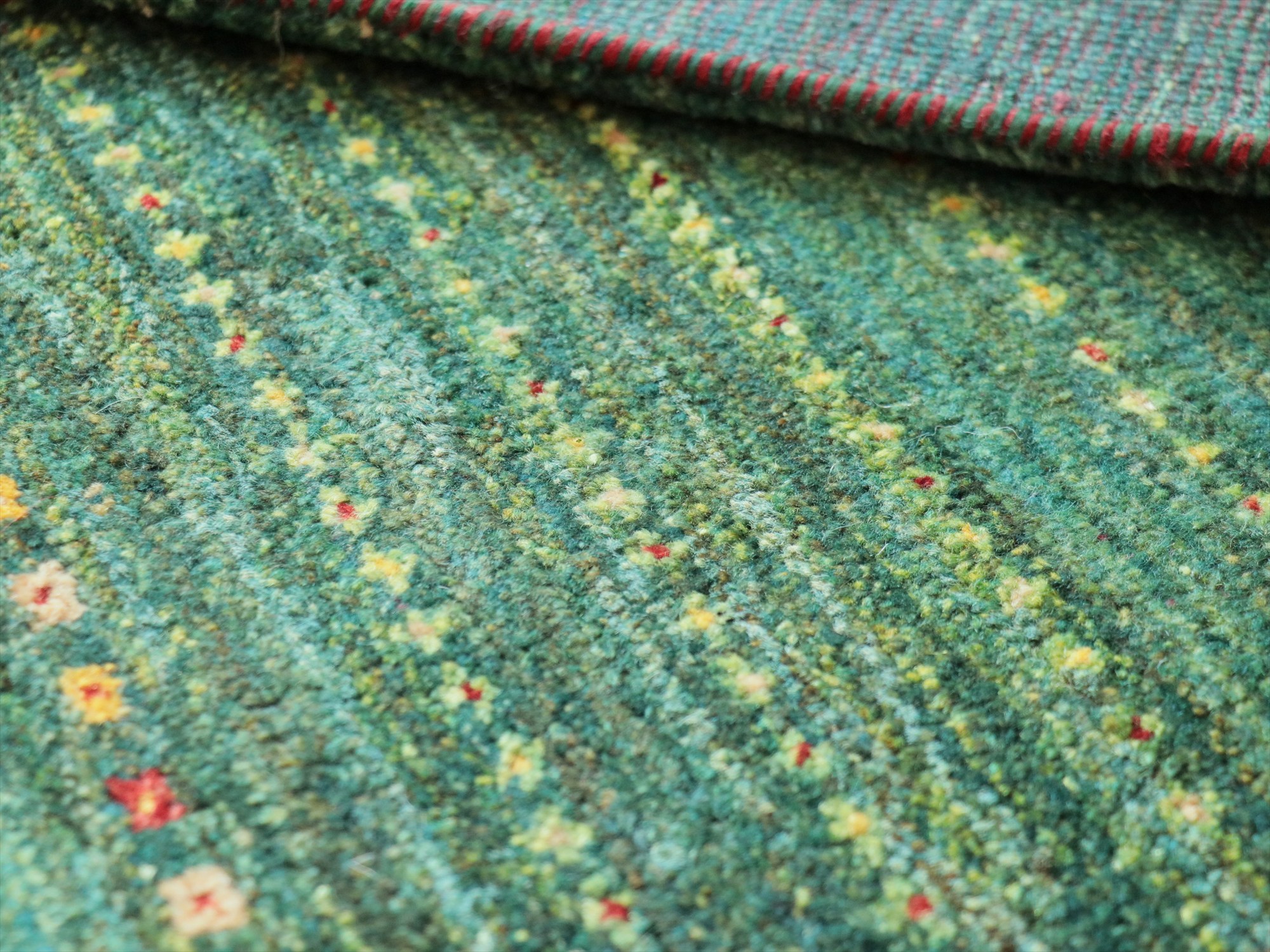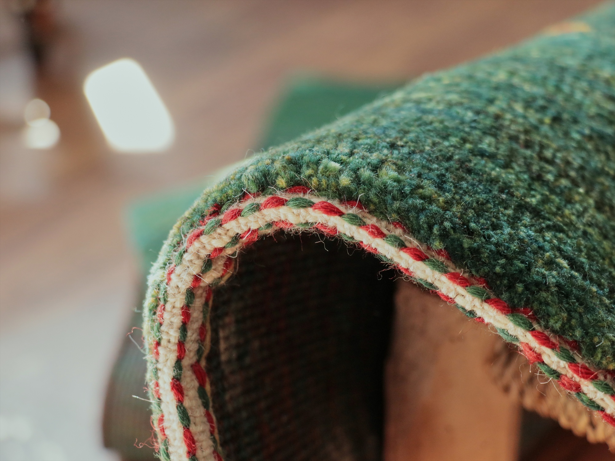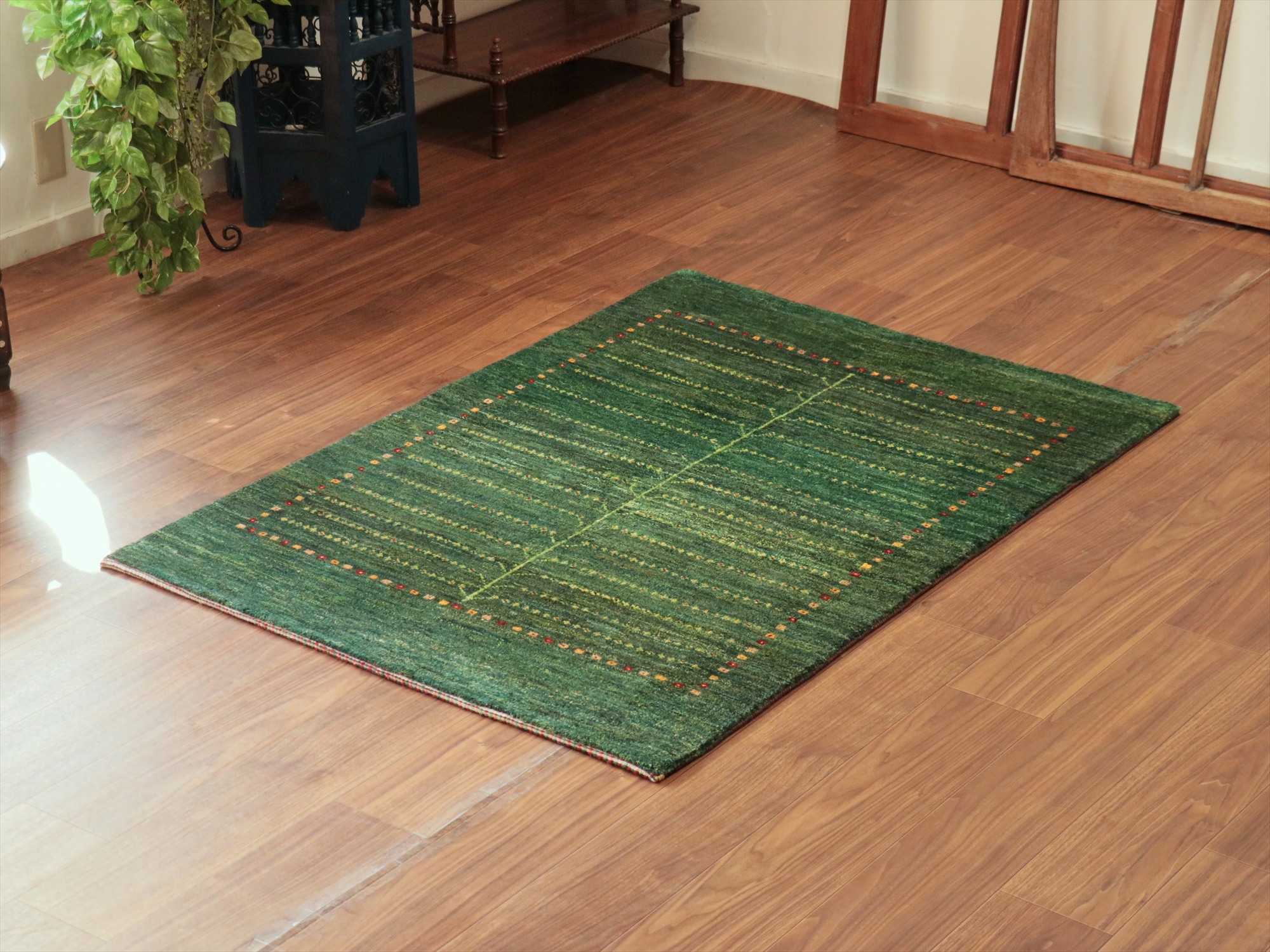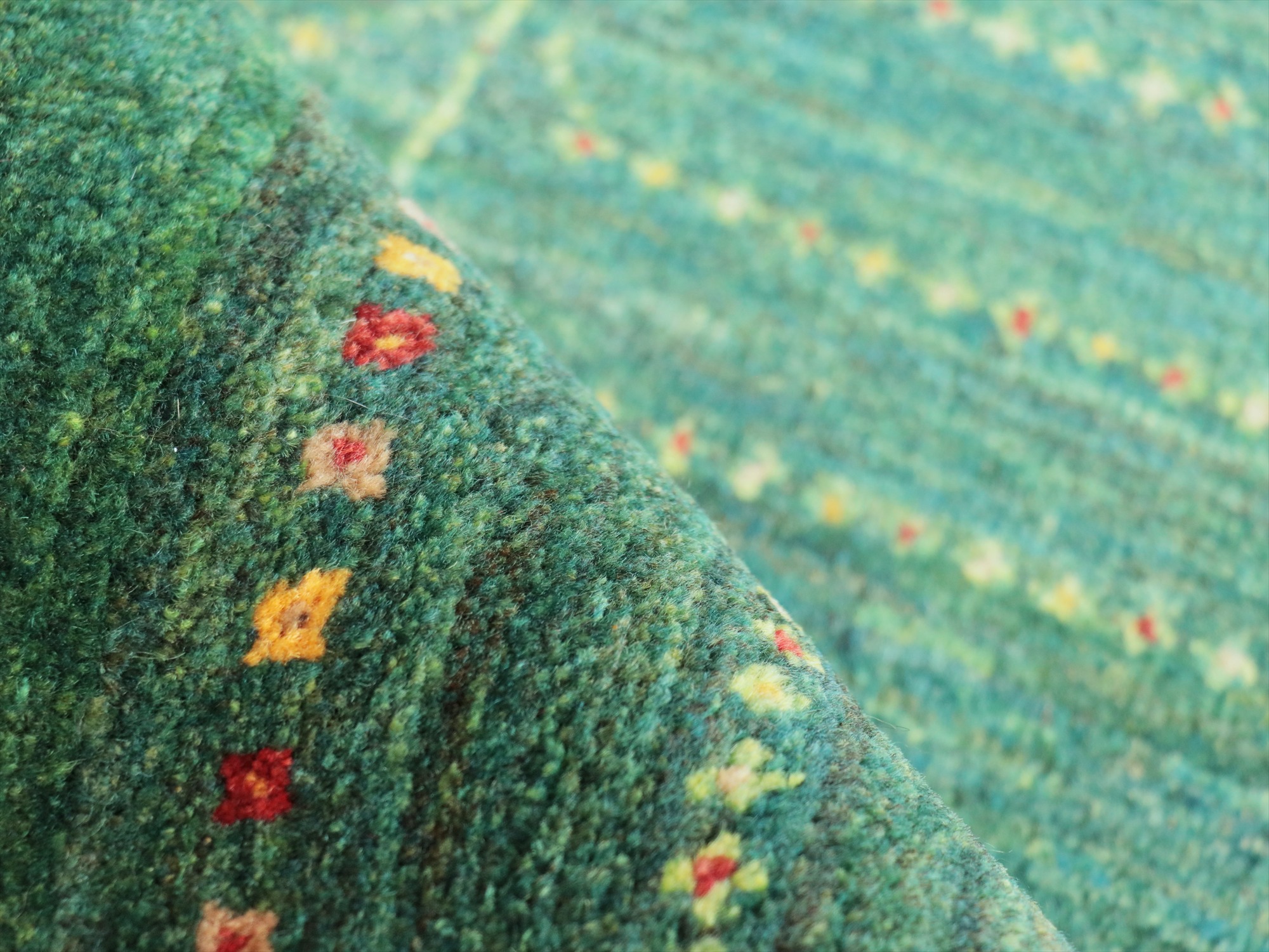 ・手紡ぎ、草木染(または無染色)、ウール100%、手織りのギャッベ。