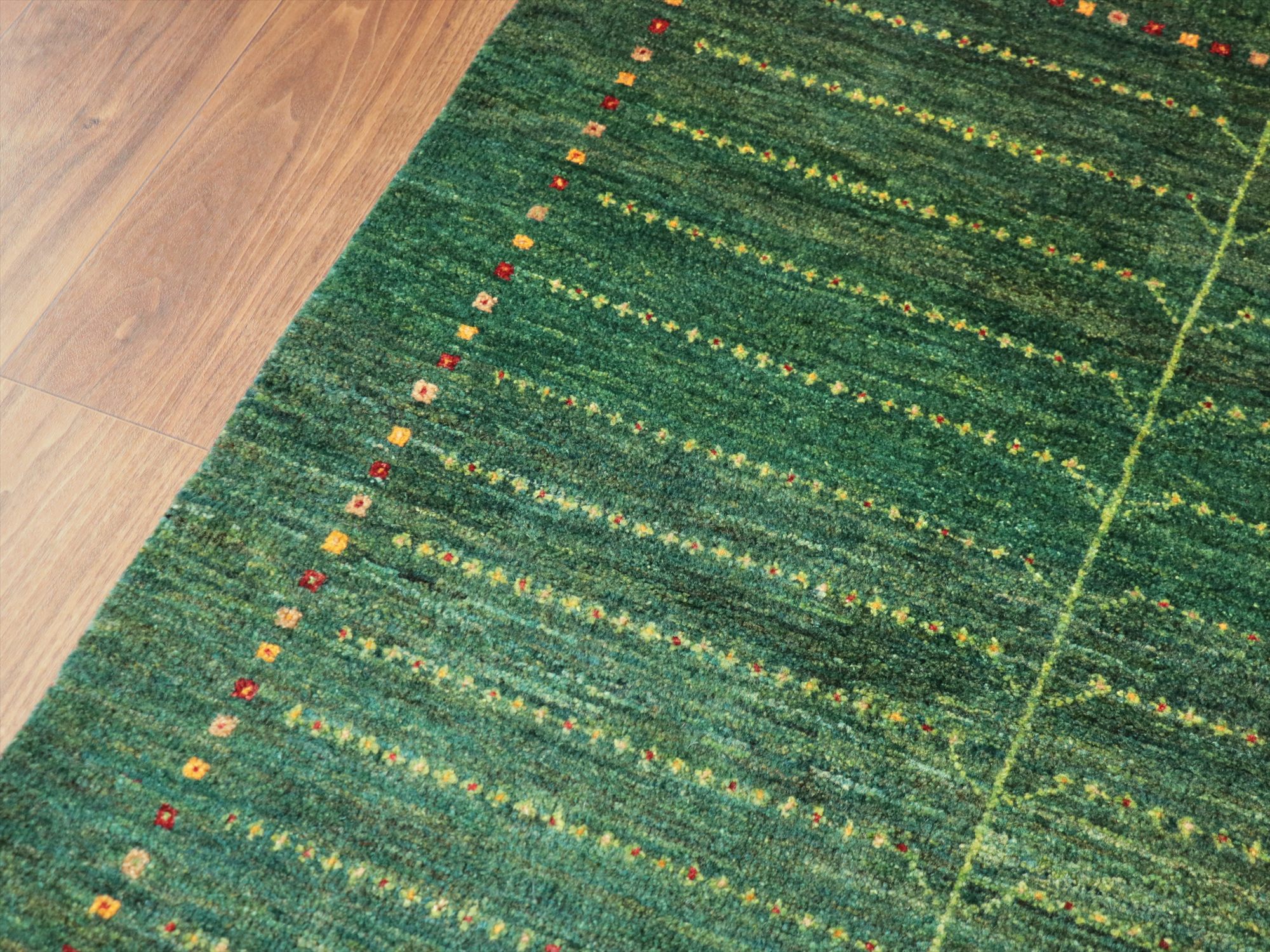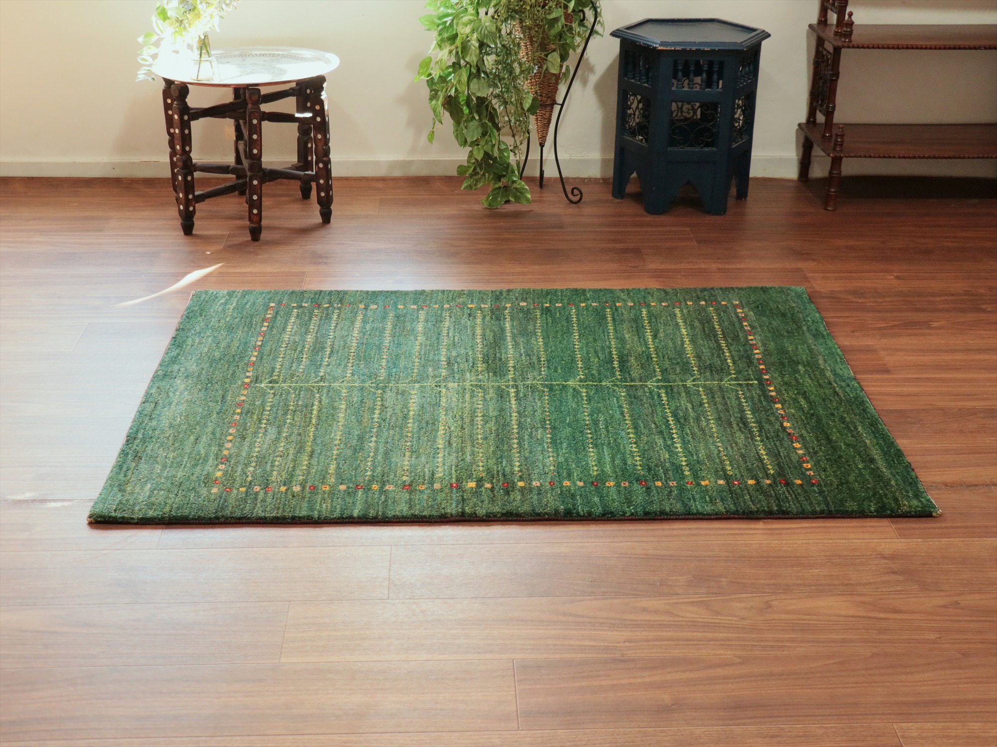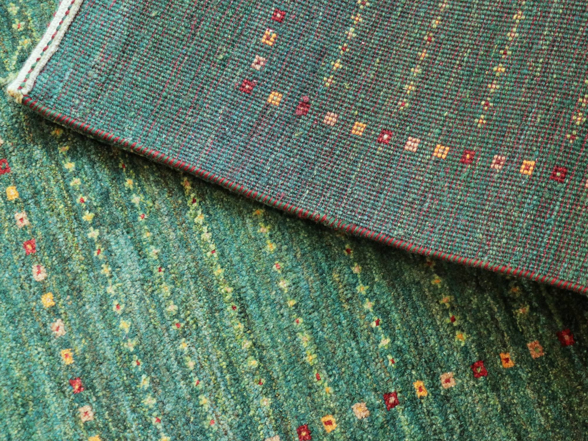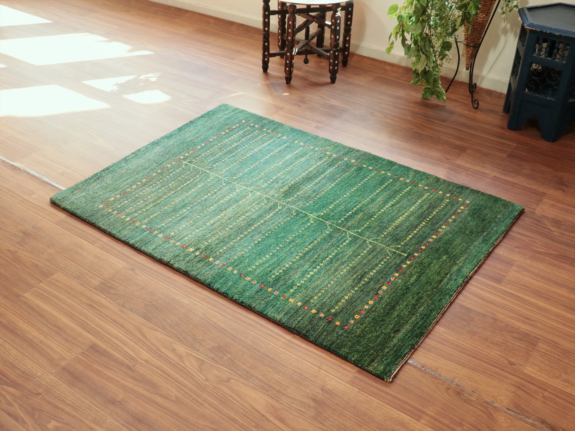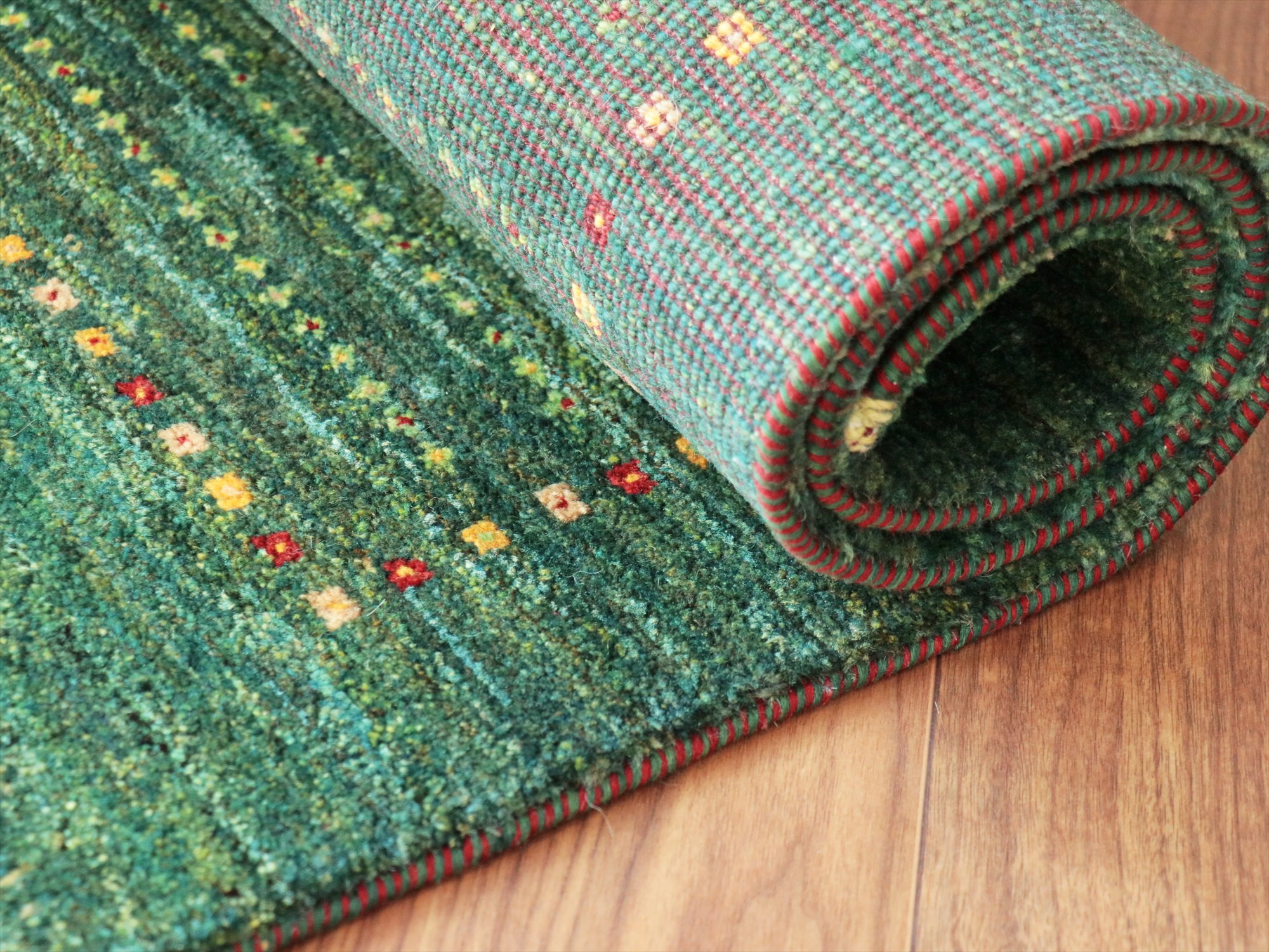 ・手紡ぎ、草木染(または無染色)、ウール100%、手織りのギャッベ。