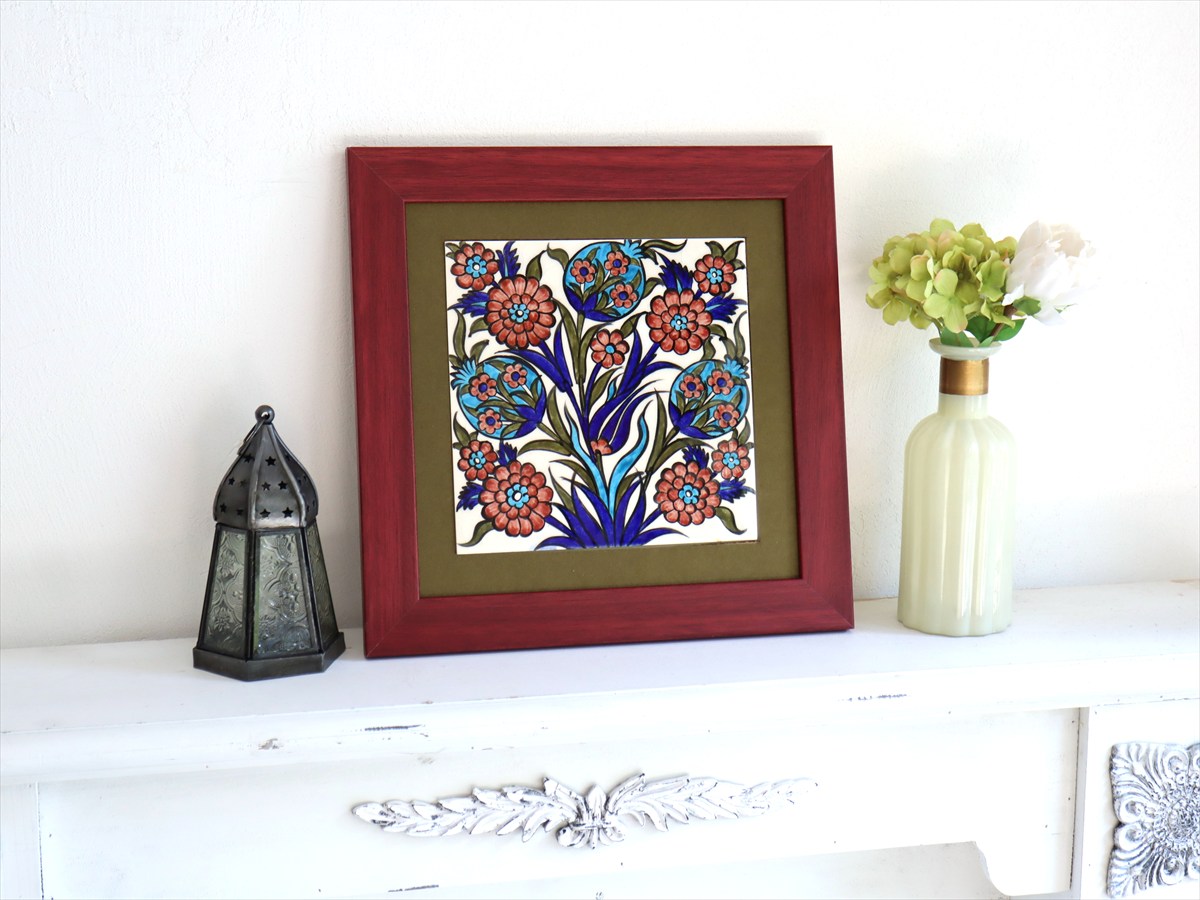 Key:タイル トルコ 陶器 イズニック キュタフヤ 手書き ハンドメイド パネル 額 インテリア 壁 ディスプレイ Iznik Tile Turkish Hand paint Handmade Ottoman Blue Mosque Kutahya