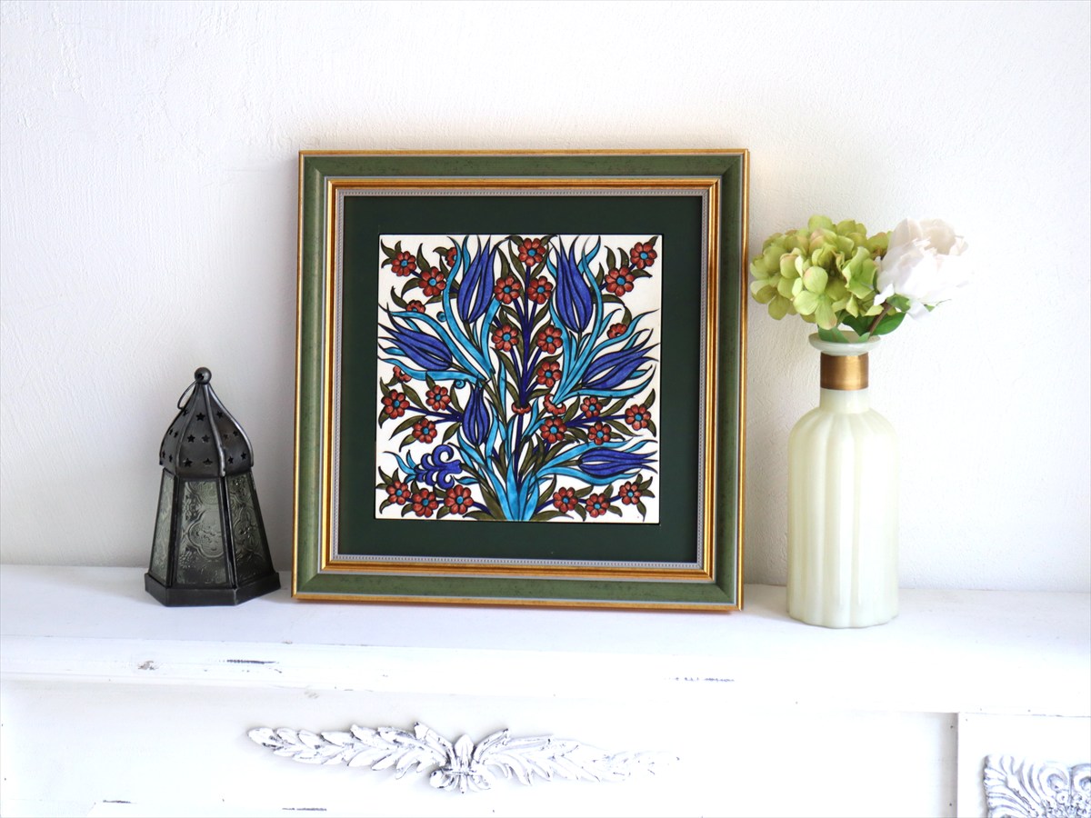 Key:タイル トルコ 陶器 イズニック キュタフヤ 手書き ハンドメイド パネル 額 インテリア 壁 ディスプレイ Iznik Tile Turkish Hand paint Handmade Ottoman Blue Mosque Kutahya