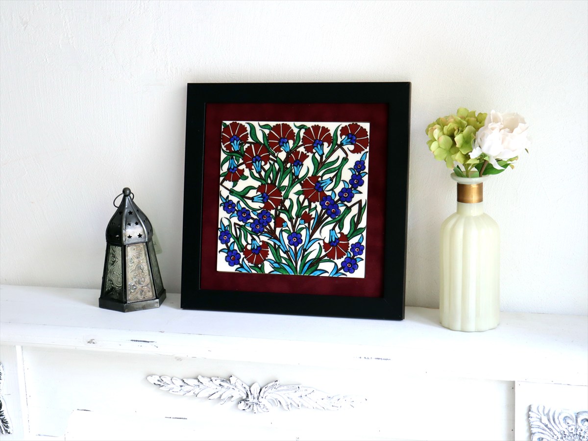 Key:タイル トルコ 陶器 イズニック キュタフヤ 手書き ハンドメイド パネル 額 インテリア 壁 ディスプレイ Iznik Tile Turkish Hand paint Handmade Ottoman Blue Mosque Kutahya