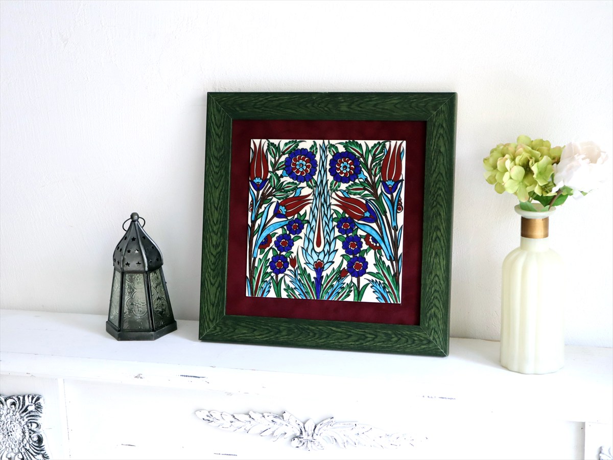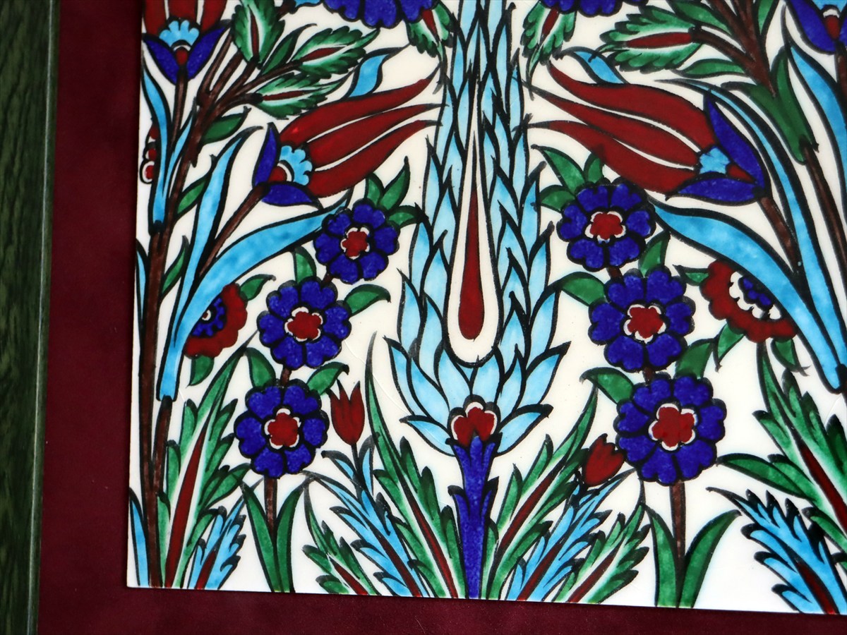 Key:タイル トルコ 陶器 イズニック キュタフヤ 手書き ハンドメイド パネル 額 インテリア 壁 ディスプレイ Iznik Tile Turkish Hand paint Handmade Ottoman Blue Mosque Kutahya
