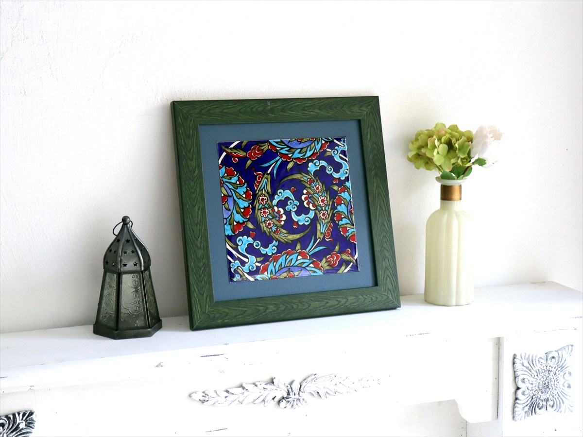 Key:タイル トルコ 陶器 イズニック キュタフヤ 手書き ハンドメイド パネル 額 インテリア 壁 ディスプレイ Iznik Tile Turkish Hand paint Handmade Ottoman Blue Mosque Kutahya