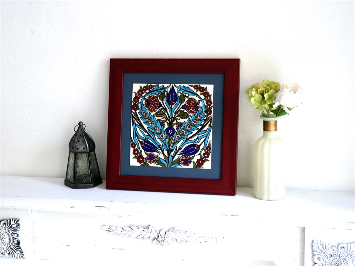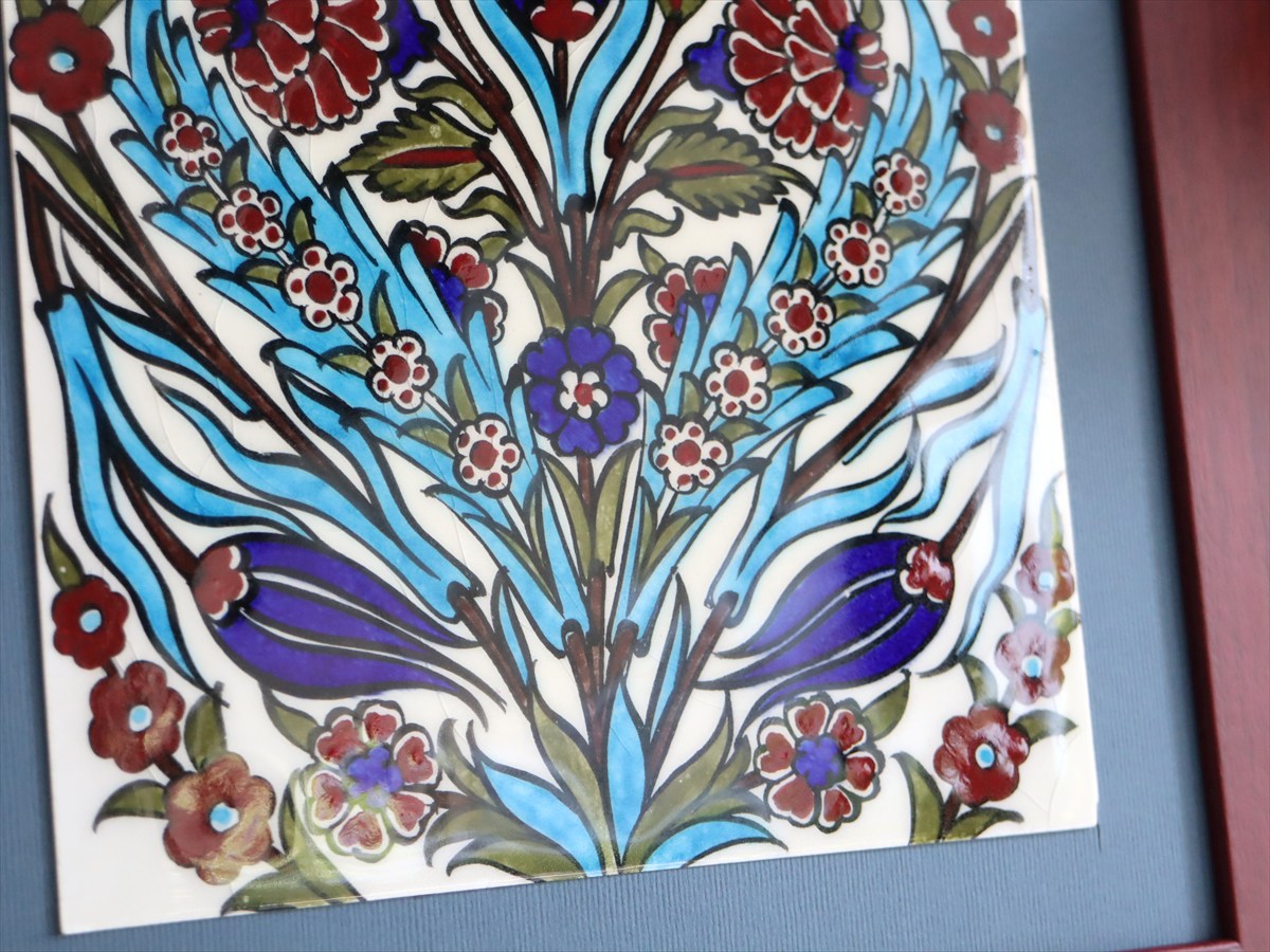 Key:タイル トルコ 陶器 イズニック キュタフヤ 手書き ハンドメイド パネル 額 インテリア 壁 ディスプレイ Iznik Tile Turkish Hand paint Handmade Ottoman Blue Mosque Kutahya