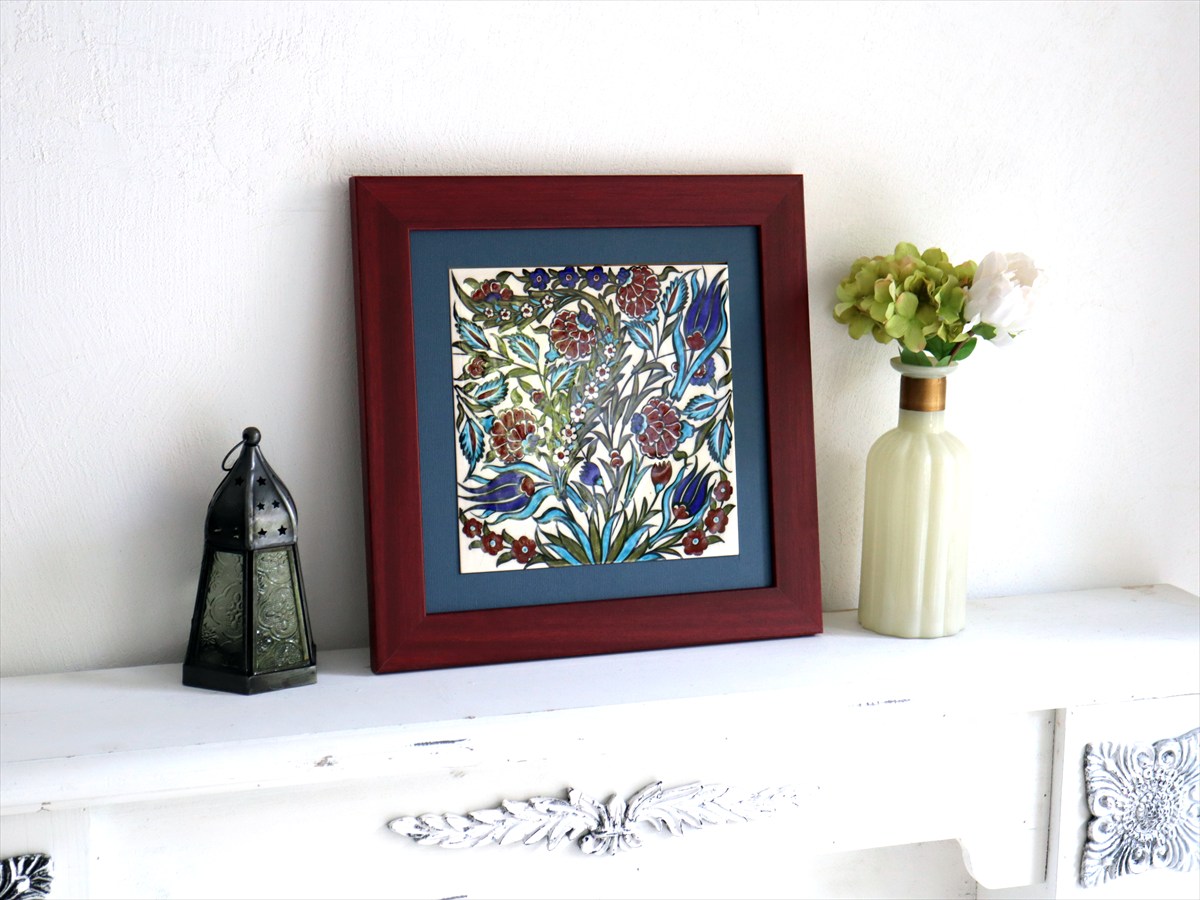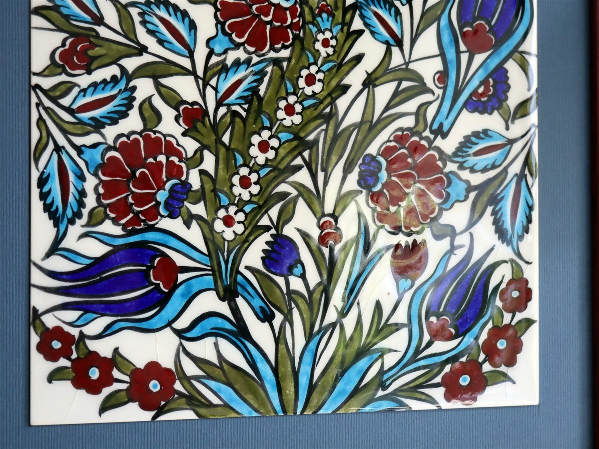 Key:タイル トルコ 陶器 イズニック キュタフヤ 手書き ハンドメイド パネル 額 インテリア 壁 ディスプレイ Iznik Tile Turkish Hand paint Handmade Ottoman Blue Mosque Kutahya