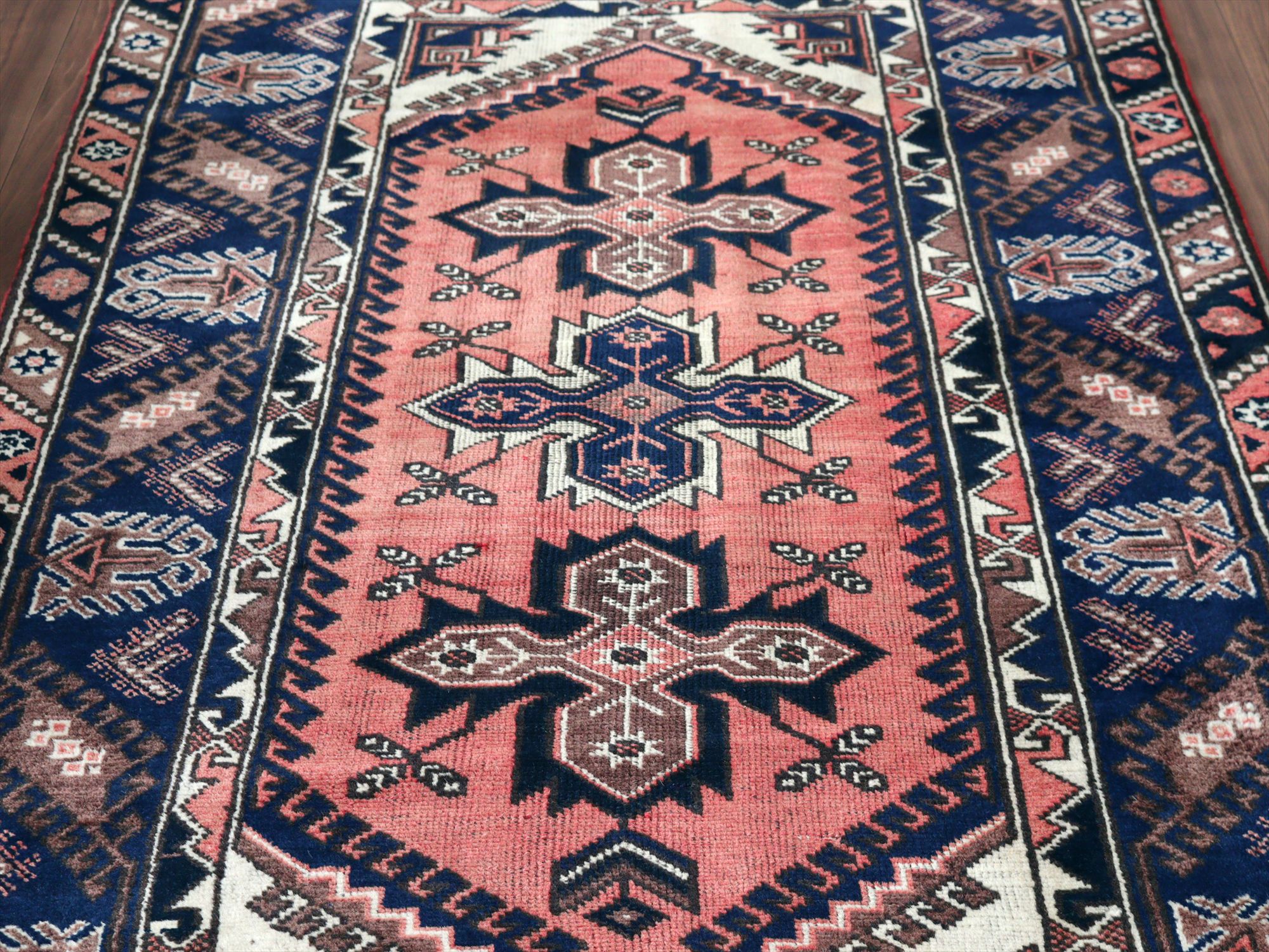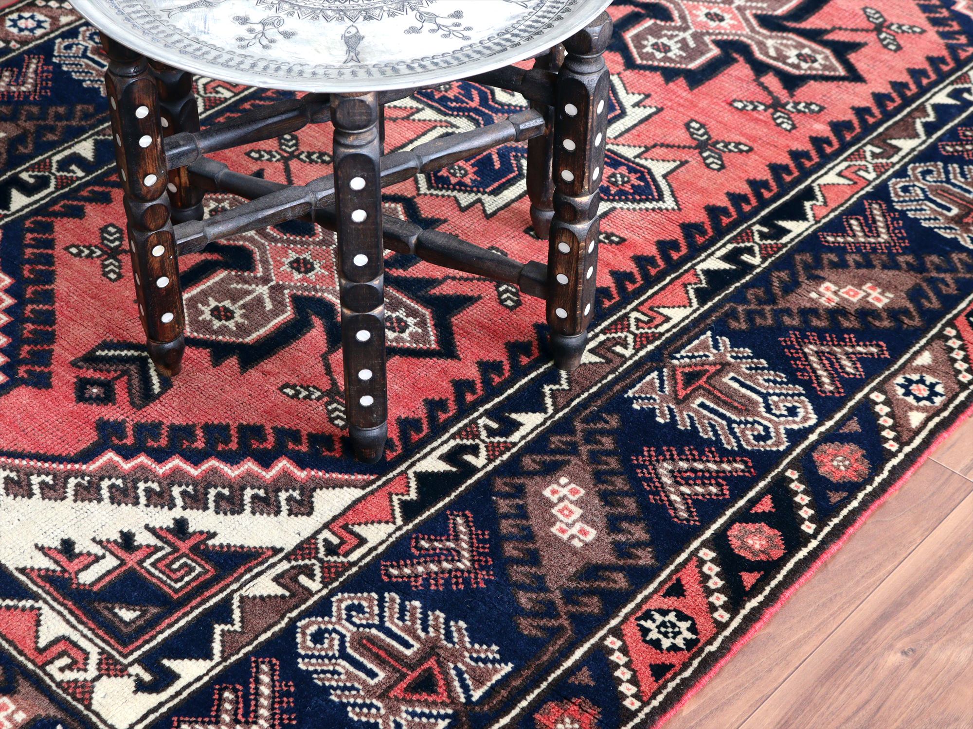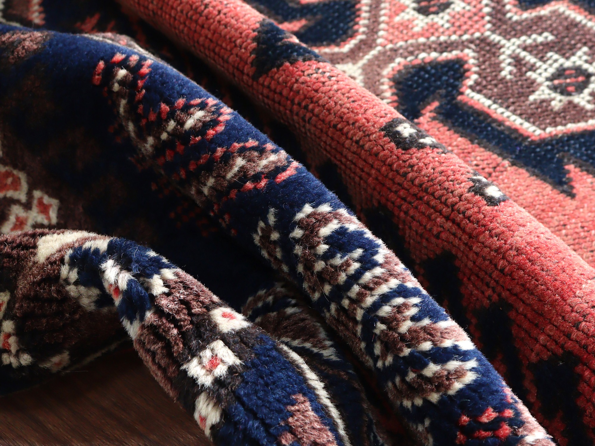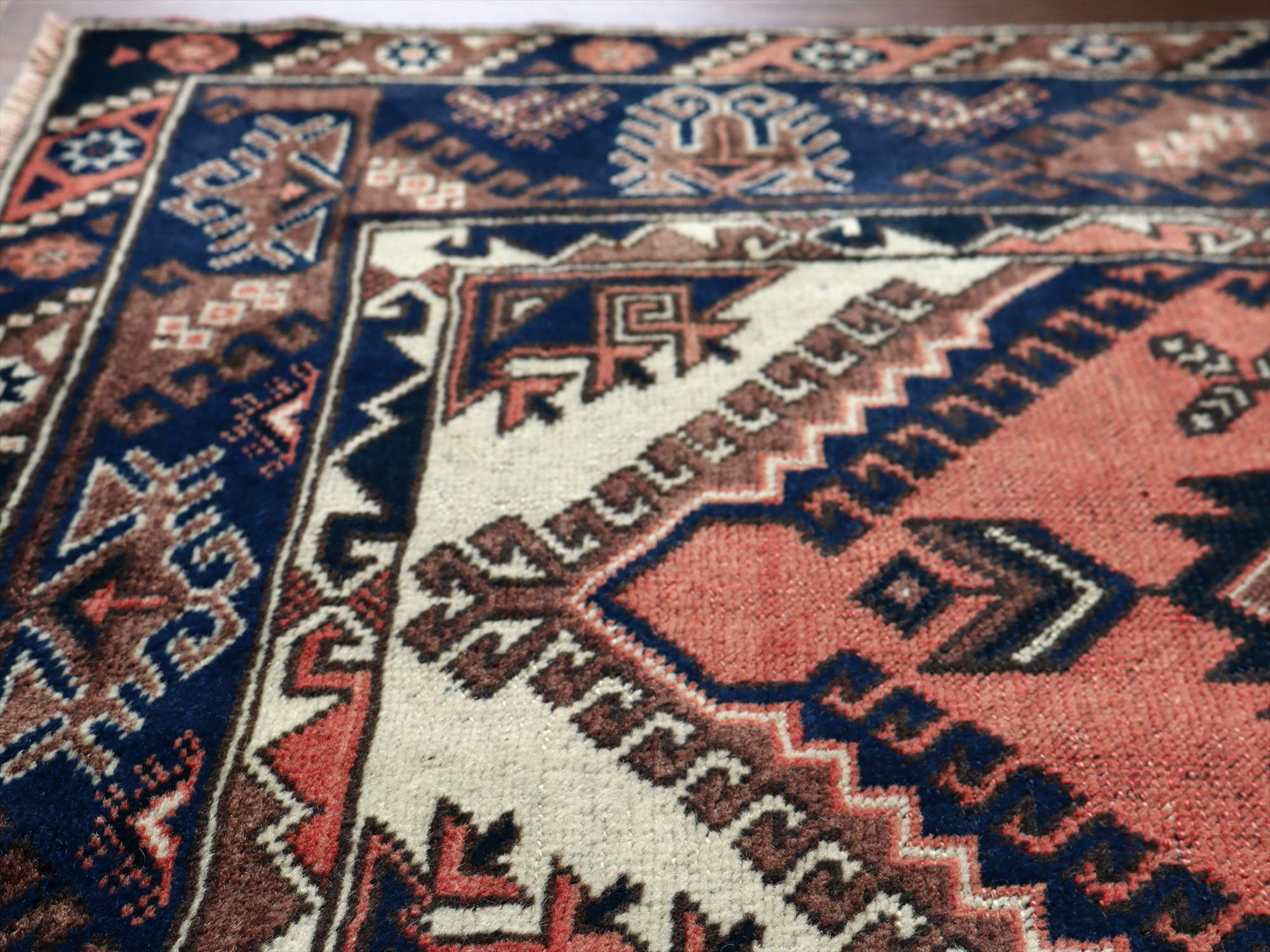 整った織りで丁寧に織られています。また、パイルはすっきり短くカットされています。部分的に擦れている箇所もありますが、気にならない程度です。