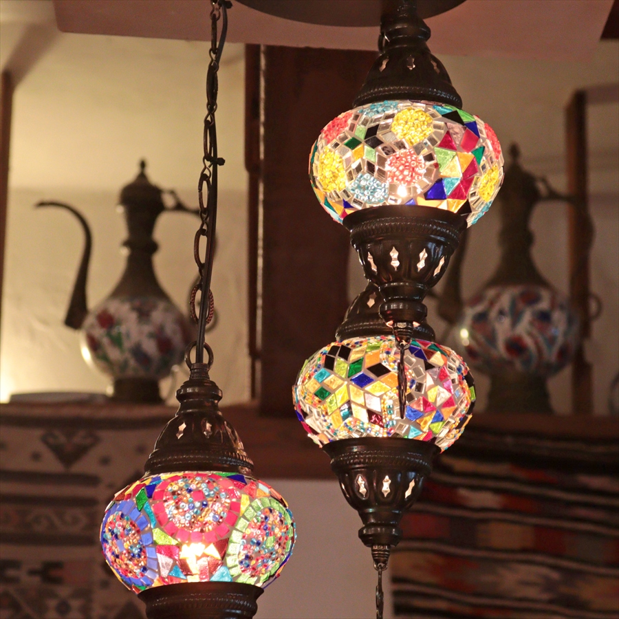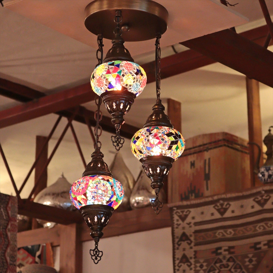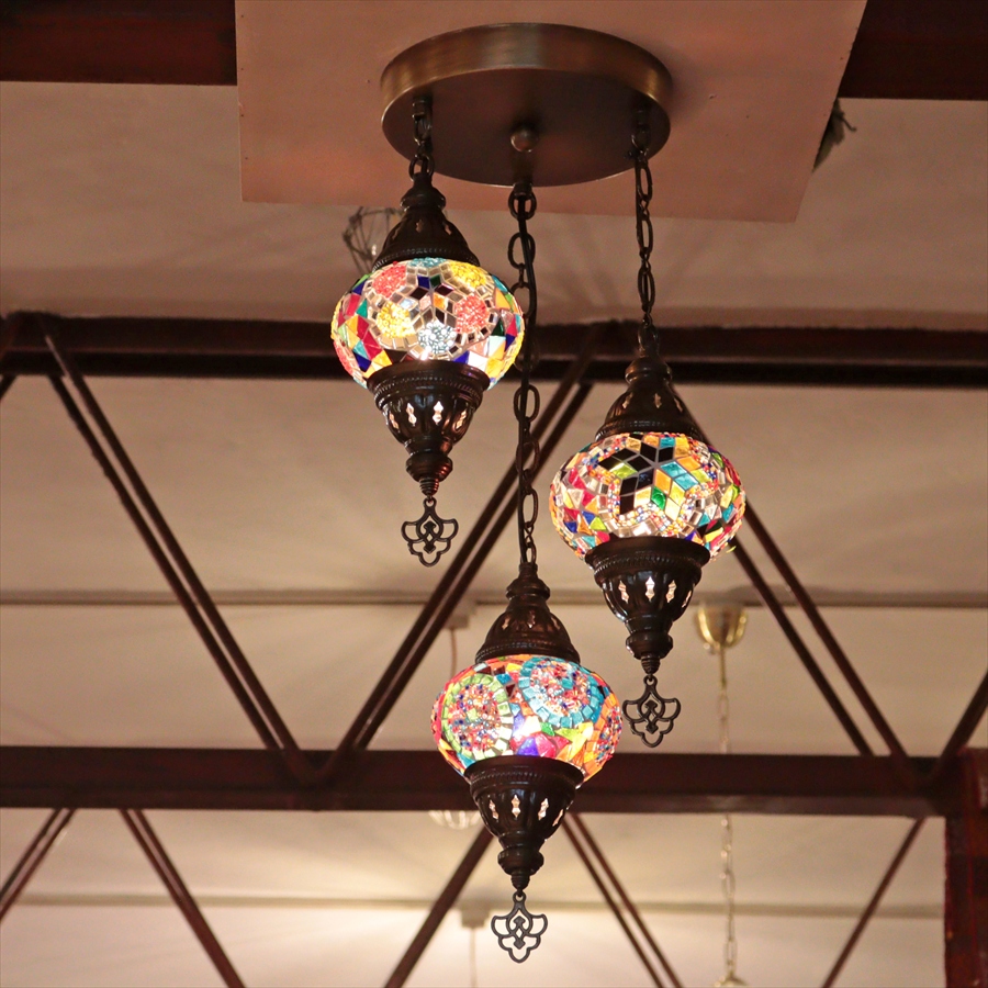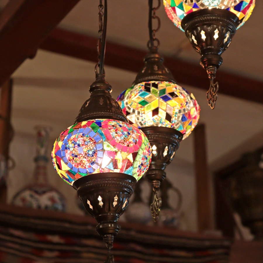Key:トルコランプ モザイクランプ 天井照明 シャンデリア 吹き抜け用照明 ガラスシェード ペンダントライト シーリングライト ランプ ライト 照明 インテリア エスニック オリエンタル