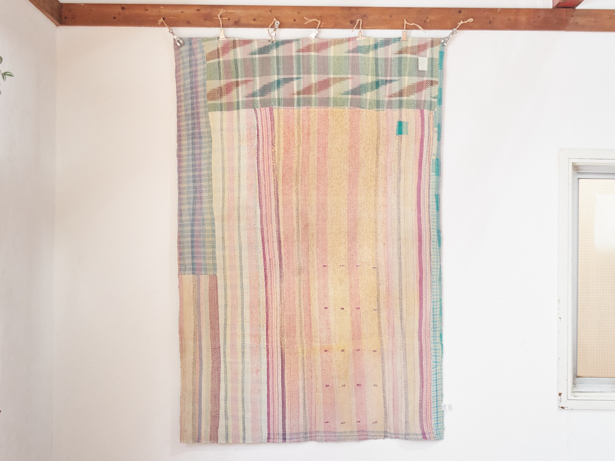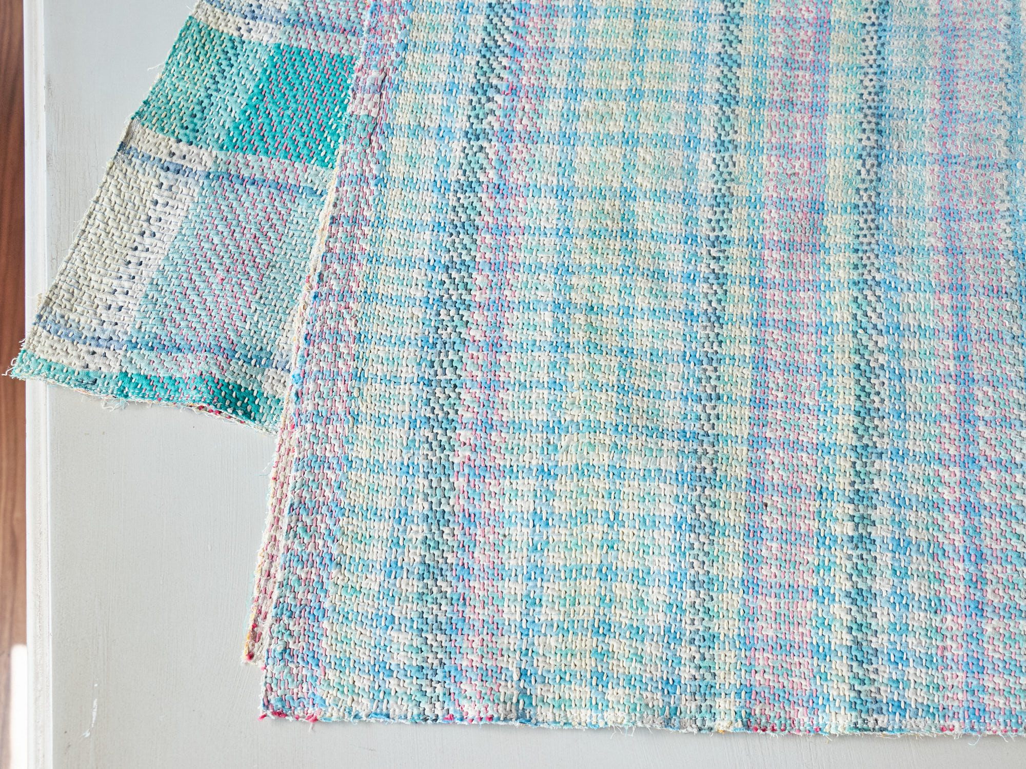 このピースは、かなり使い古した感じで、表面は擦り切れているところが多数あり、重ねてある下の布が見えています。クタっとした布とそれを補強するように丁寧に刺し子刺繍をみると、大切に長い間使っていたことがわかります。
