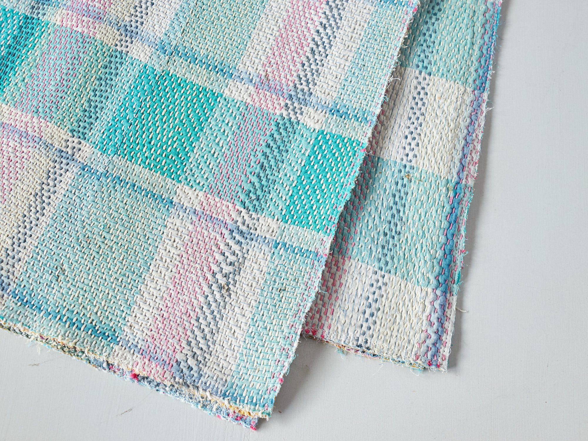 インド カンタ刺繍 パッチワーク ラリーキルト ヴィンテージ183×124cm Kantha embroidery India