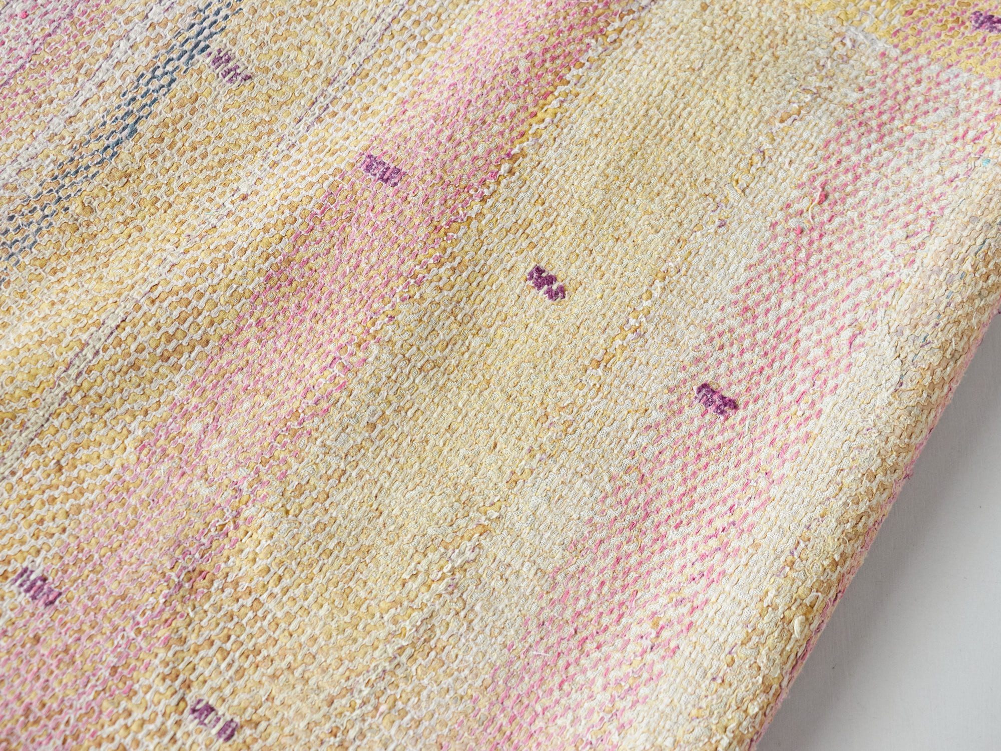 ベンガル地方(インド)で、寝具用として作られたコットンの刺し子刺繍です。着古した衣類などを再利用してあり、表面はすり減ったところも見られます。