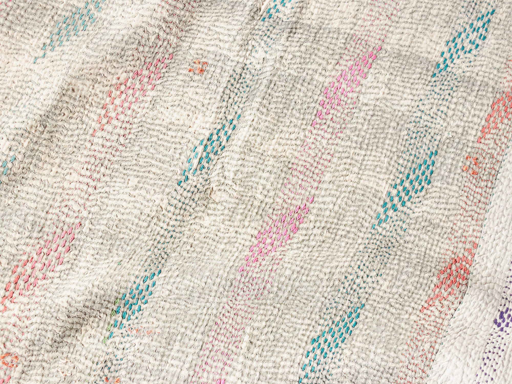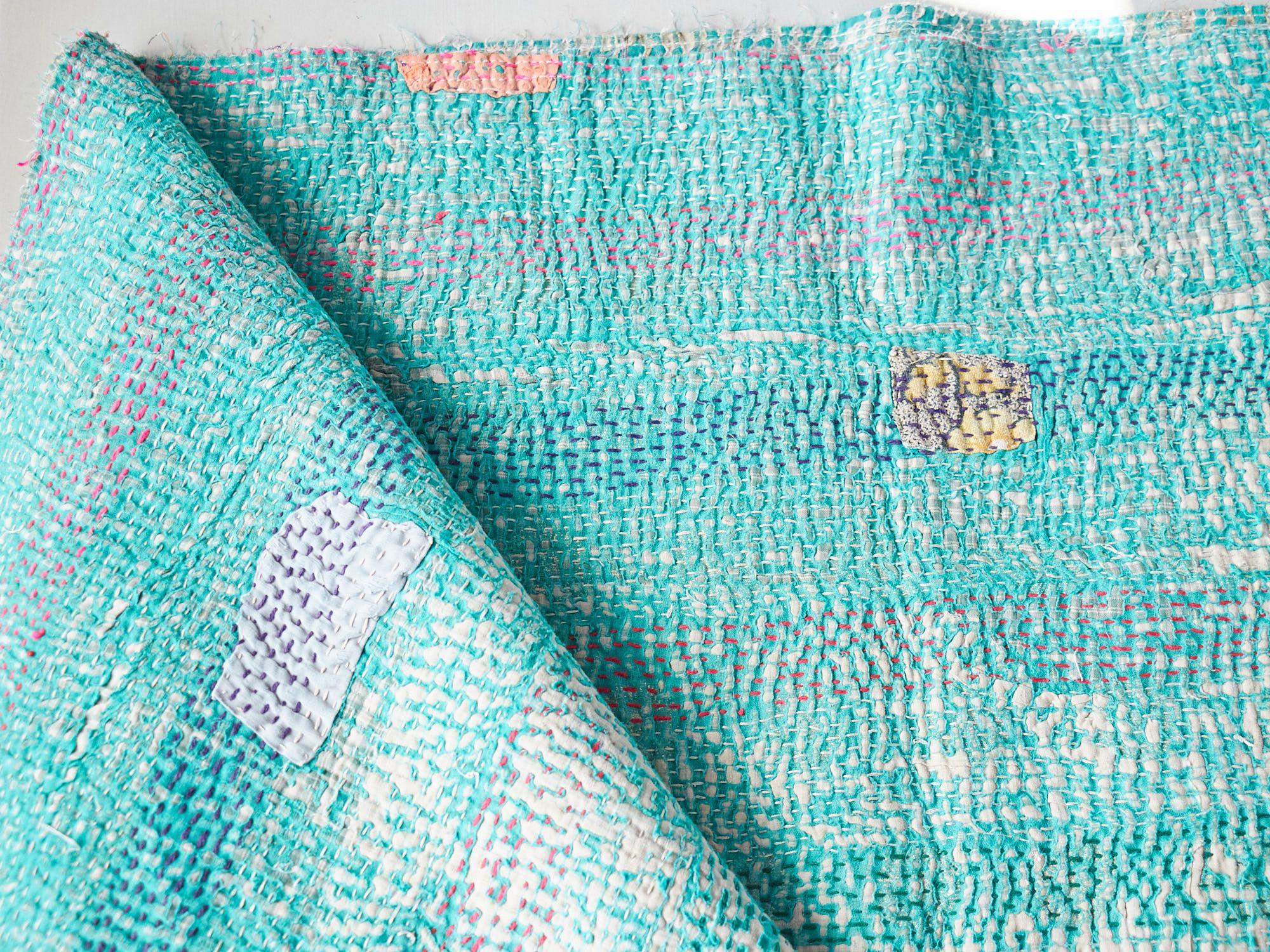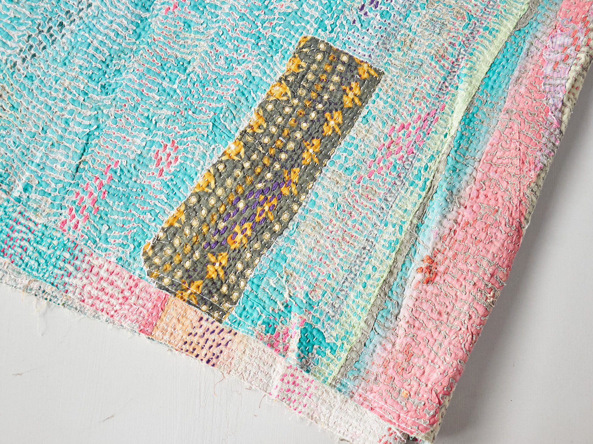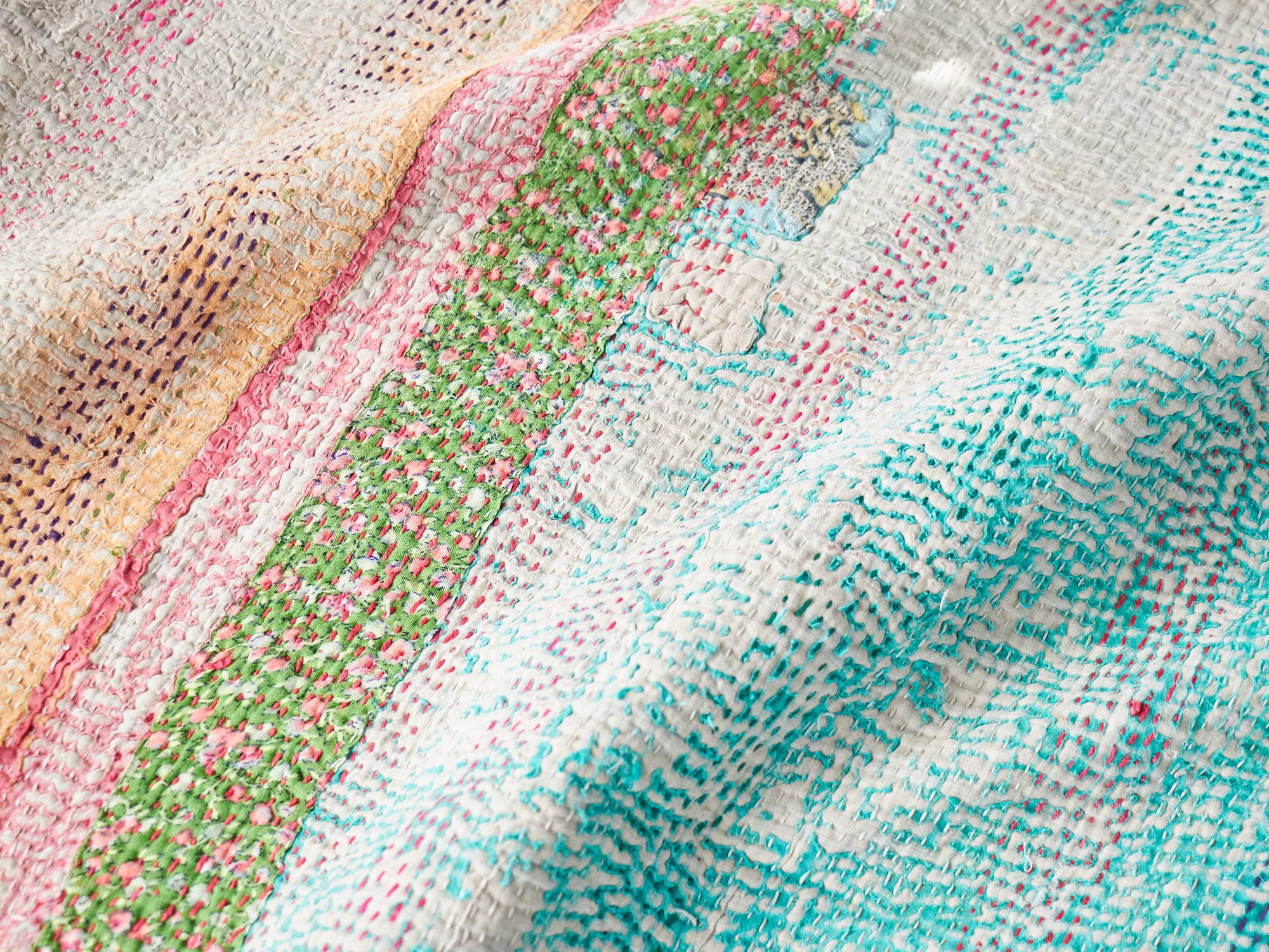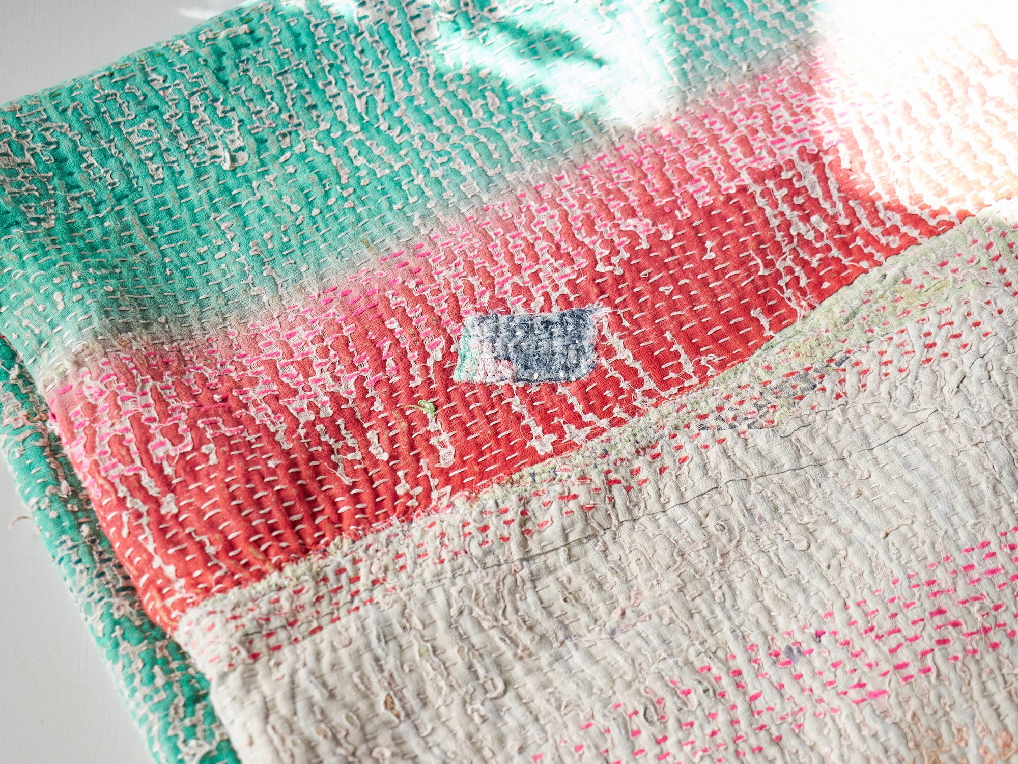インド カンタ刺繍 パッチワーク ラリーキルト ヴィンテージ199×136cm Kantha embroidery India