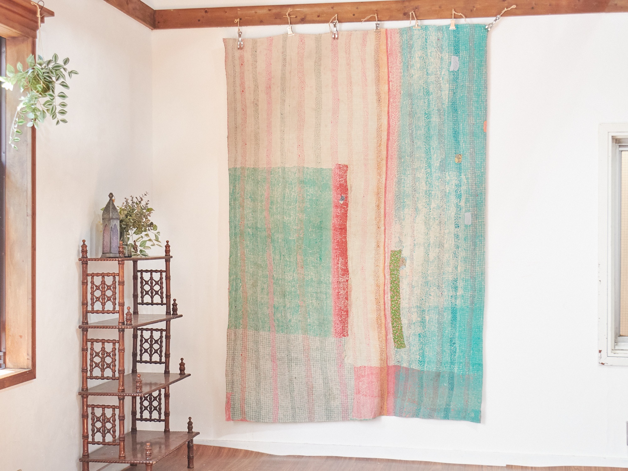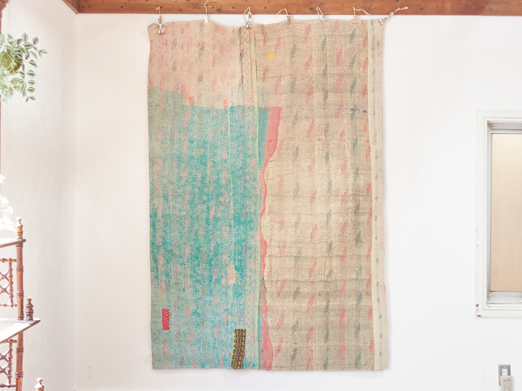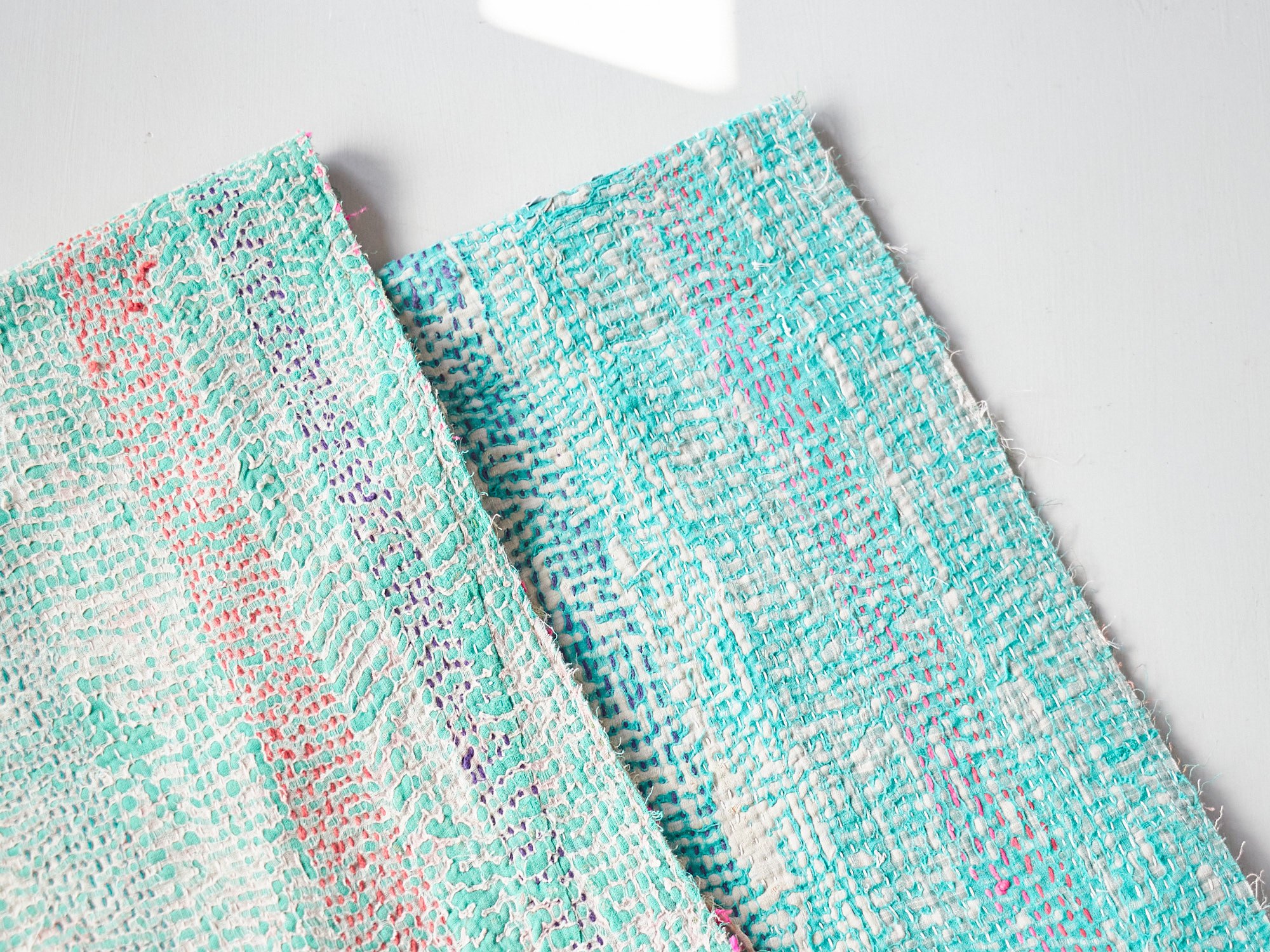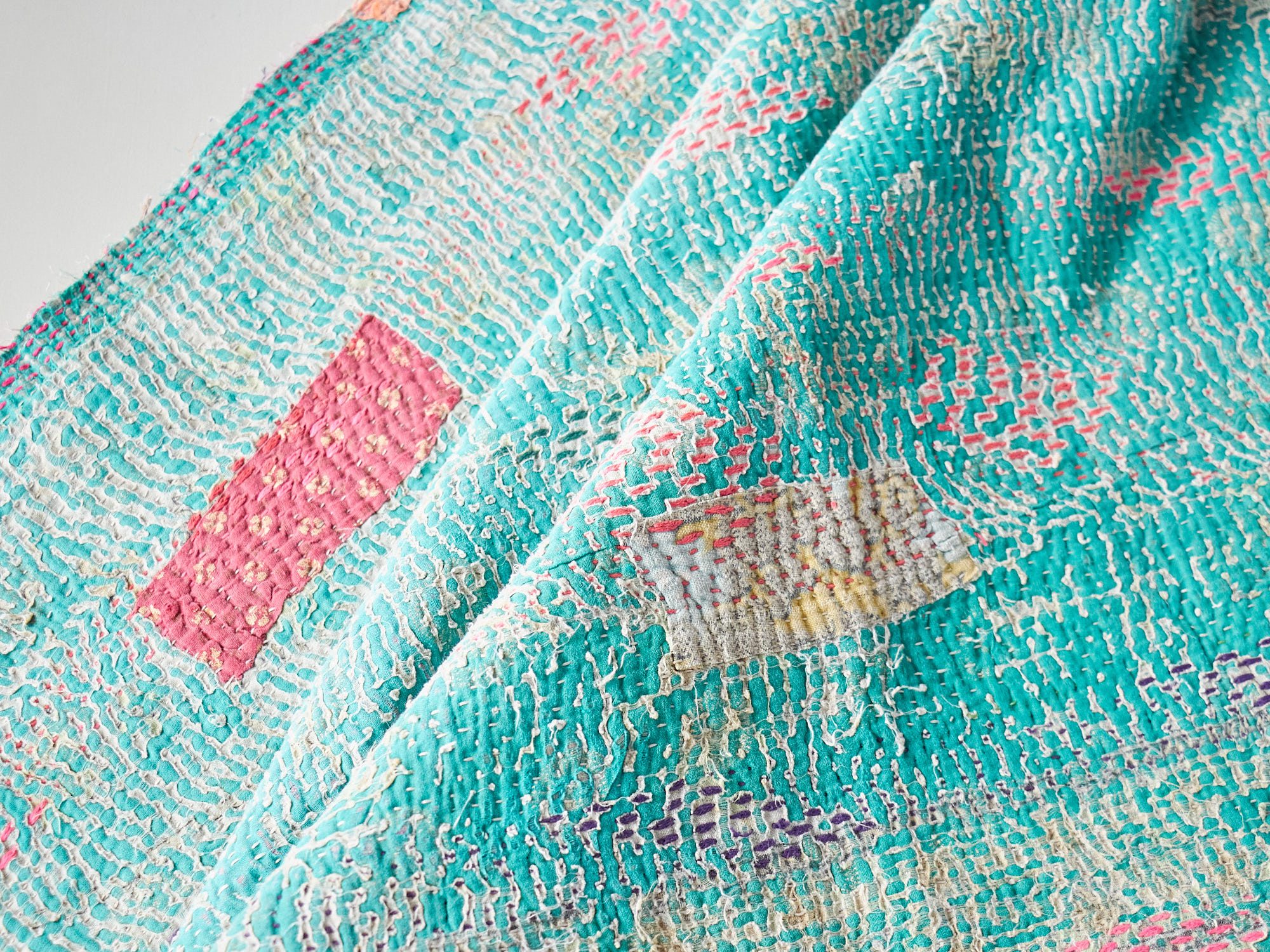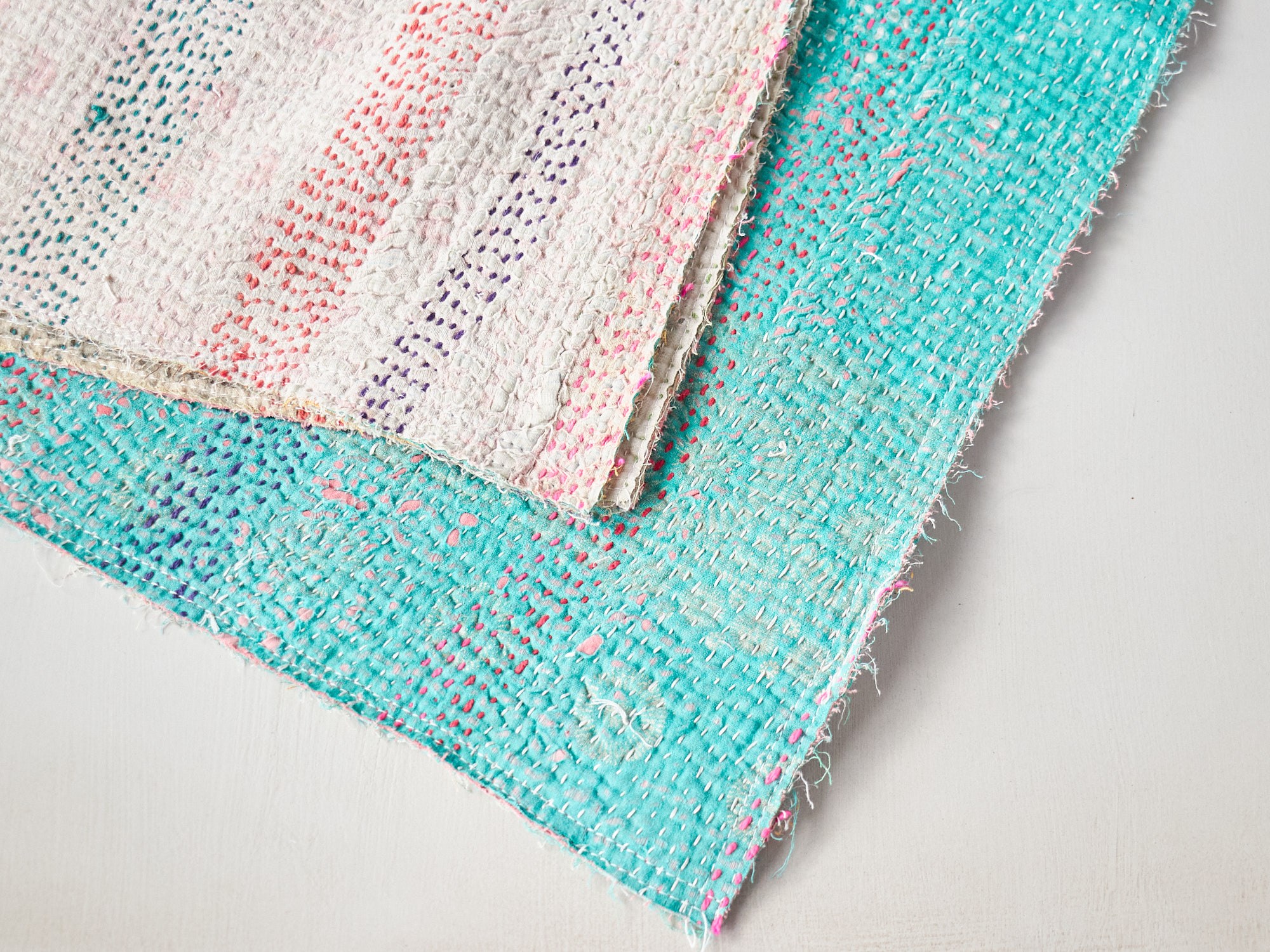 インド カンタ刺繍 パッチワーク ラリーキルト ヴィンテージ199×136cm Kantha embroidery India