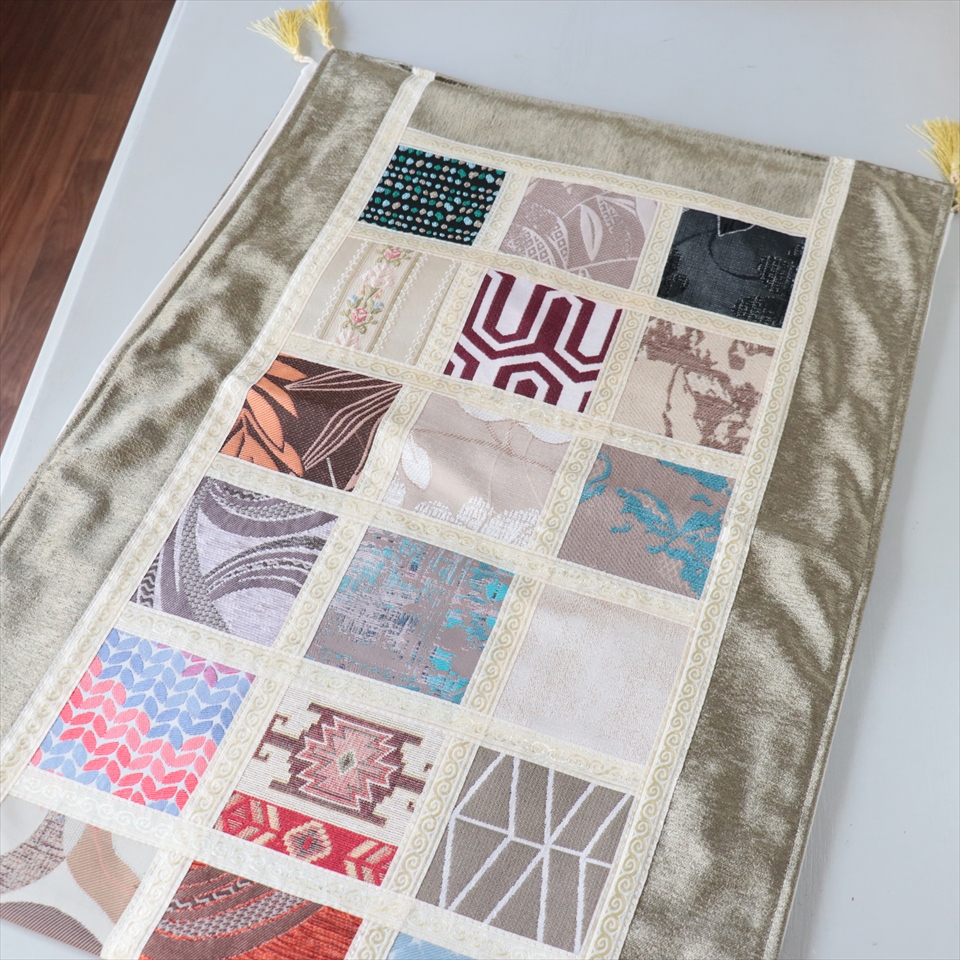 テーブルランナー モザイクパッチワーク 142x50cmサイズ シュニール素材