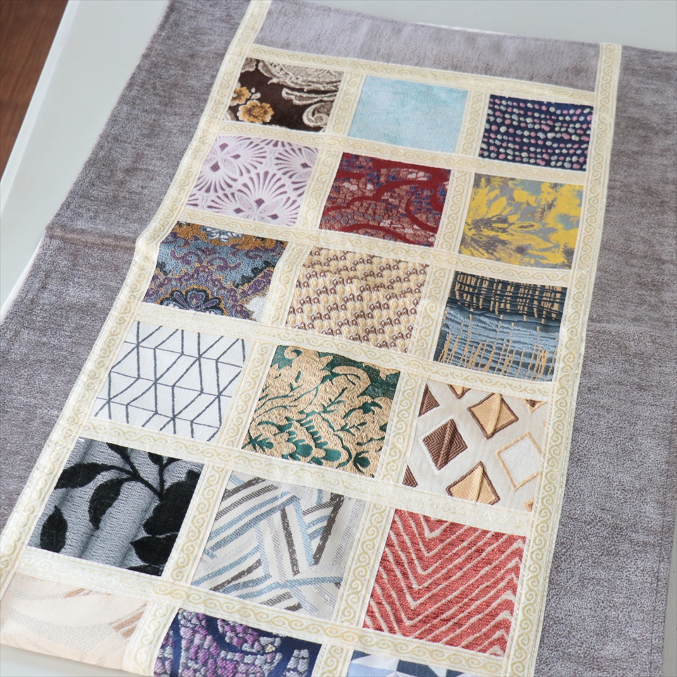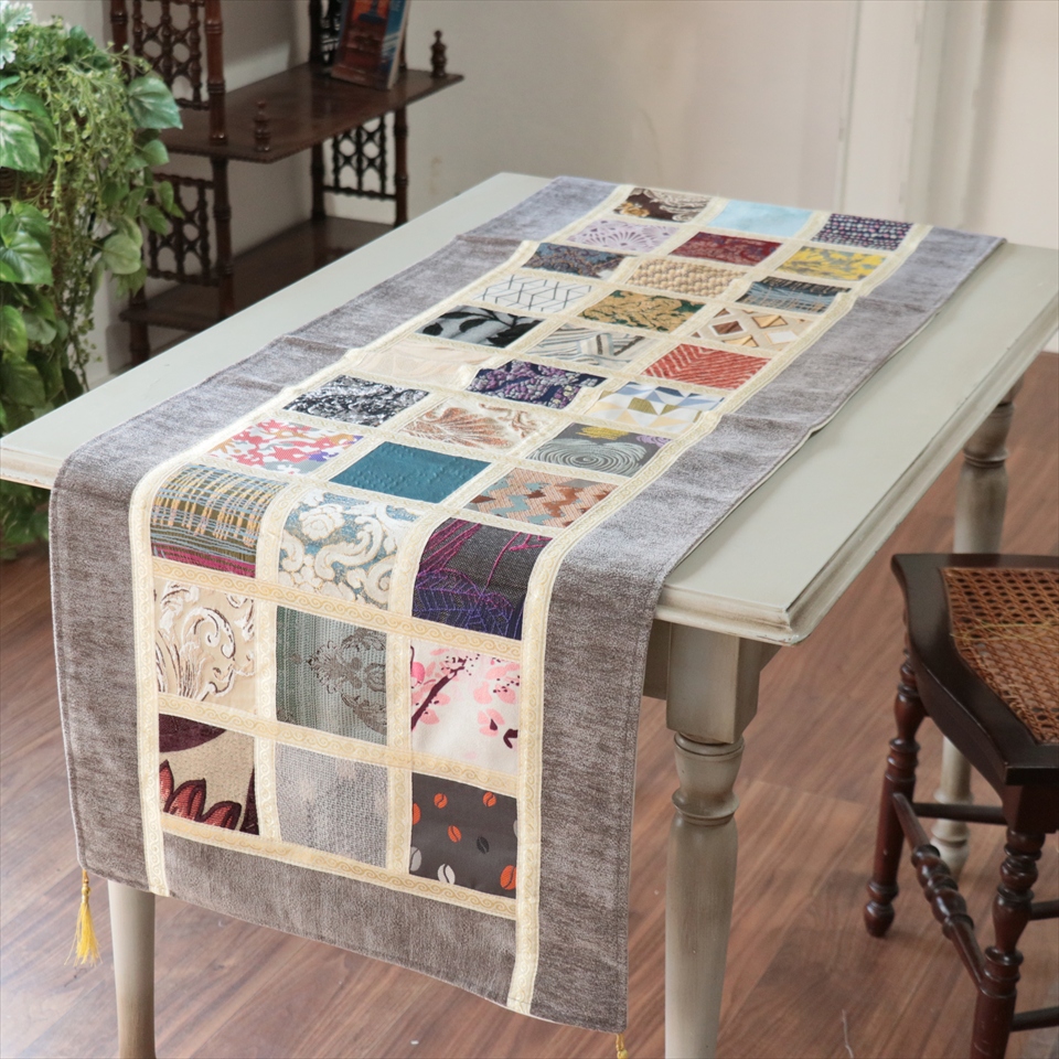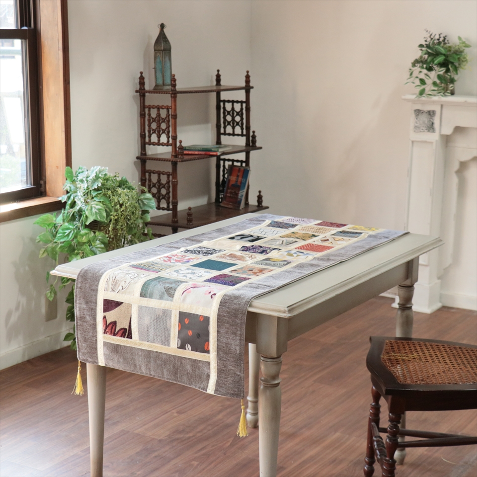 テーブルランナー モザイクパッチワーク 142x50cmサイズ シュニール素材