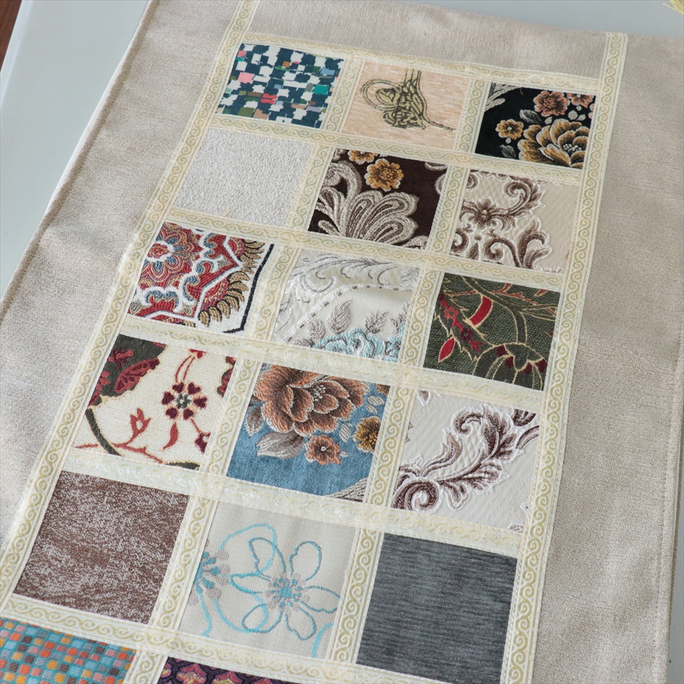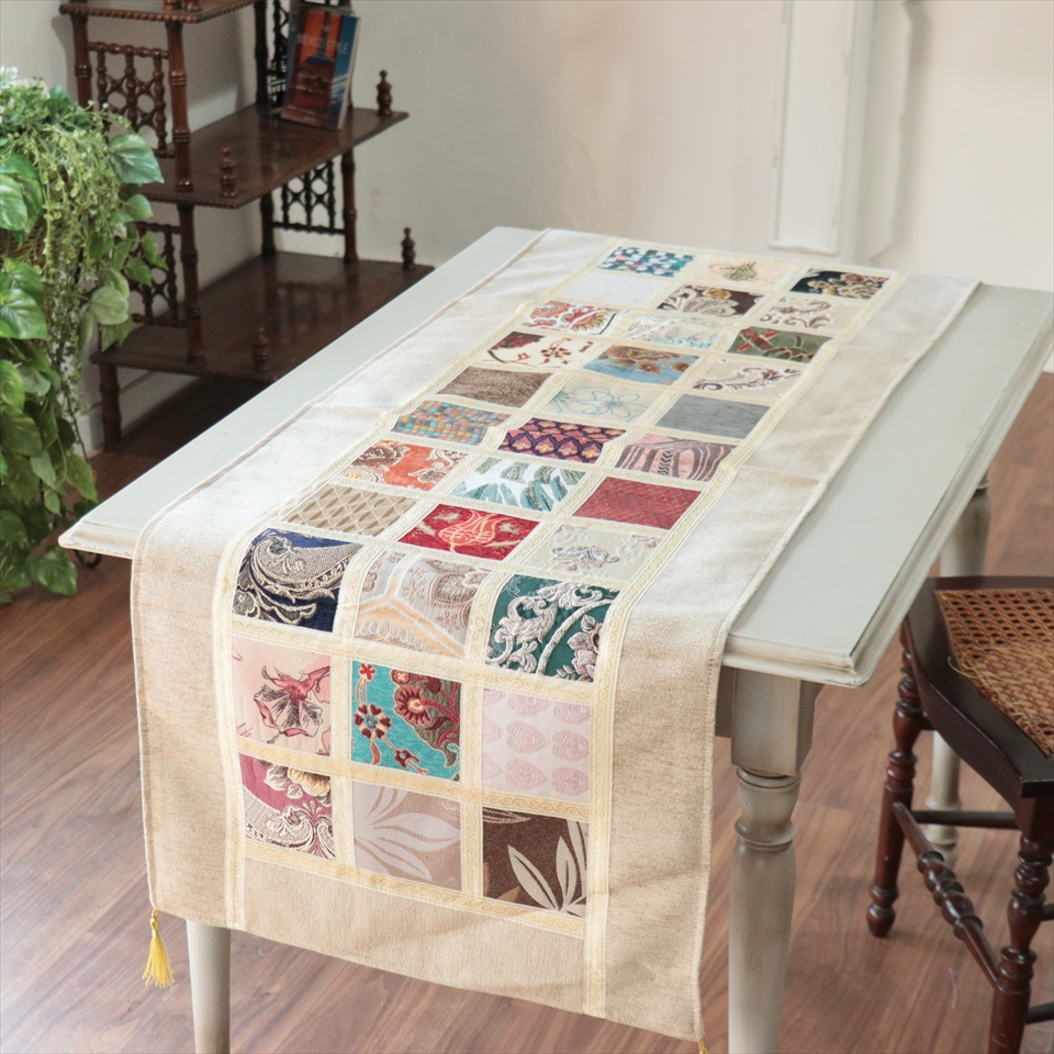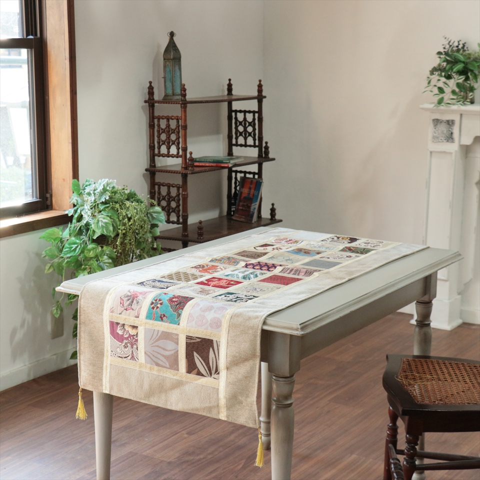 テーブルランナー モザイクパッチワーク 142x50cmサイズ シュニール素材
