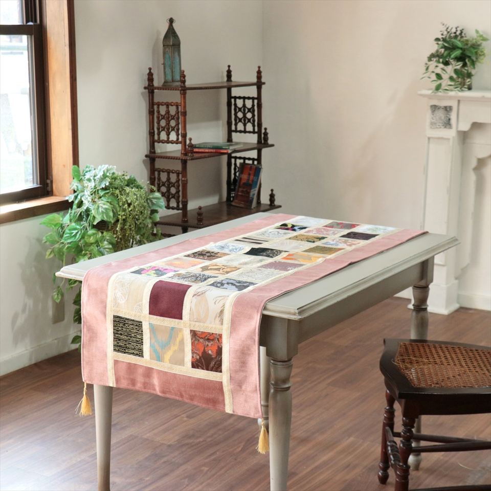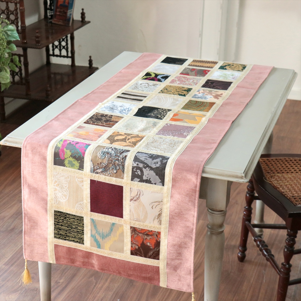 テーブルランナー モザイクパッチワーク 142x50cmサイズ シュニール素材