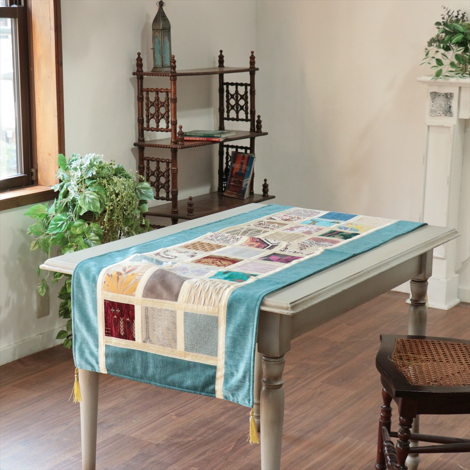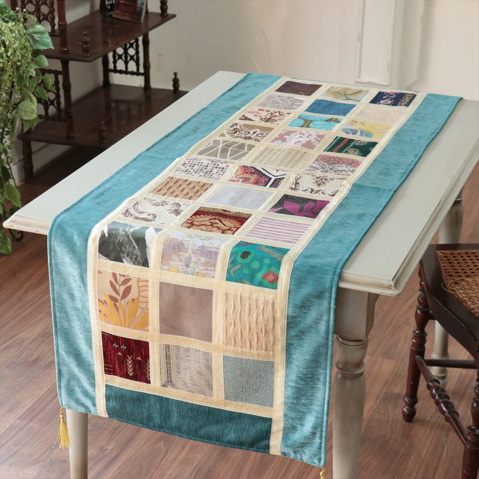 テーブルランナー モザイクパッチワーク 142x50cmサイズ シュニール素材