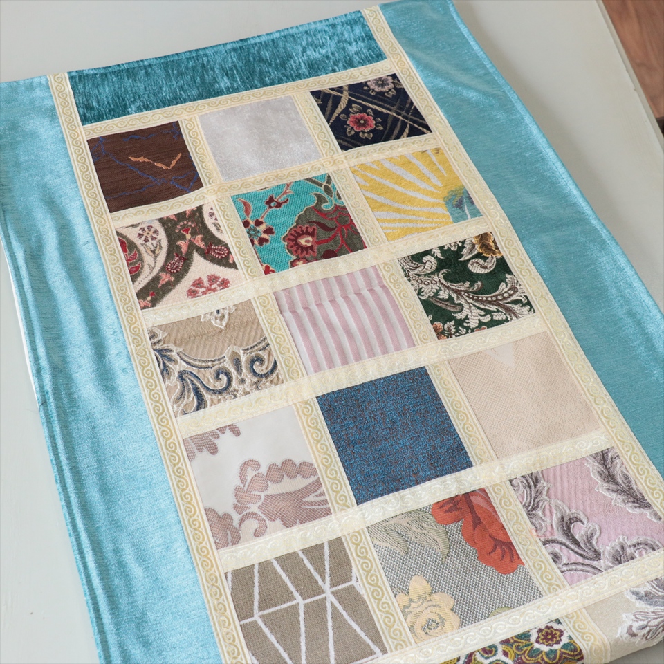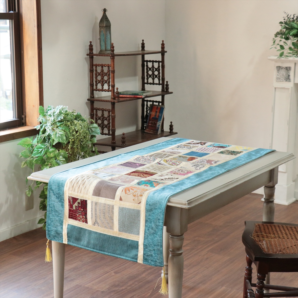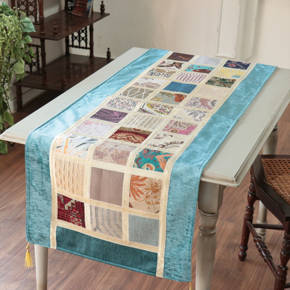 テーブルランナー モザイクパッチワーク 142x50cmサイズ シュニール素材