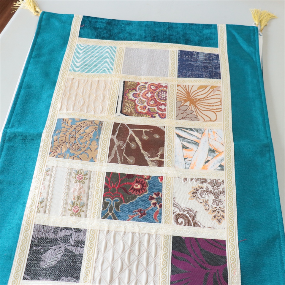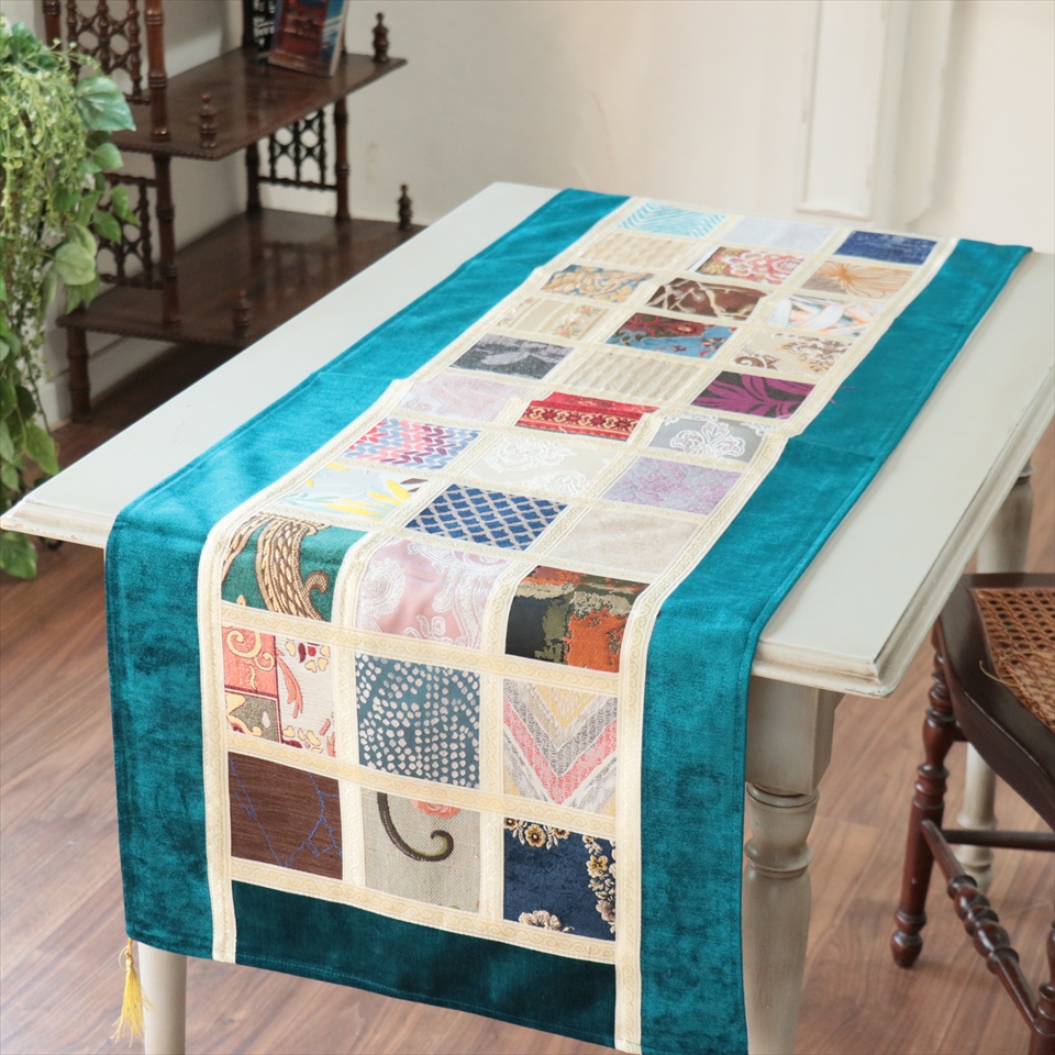 テーブルランナー モザイクパッチワーク 142x50cmサイズ シュニール素材