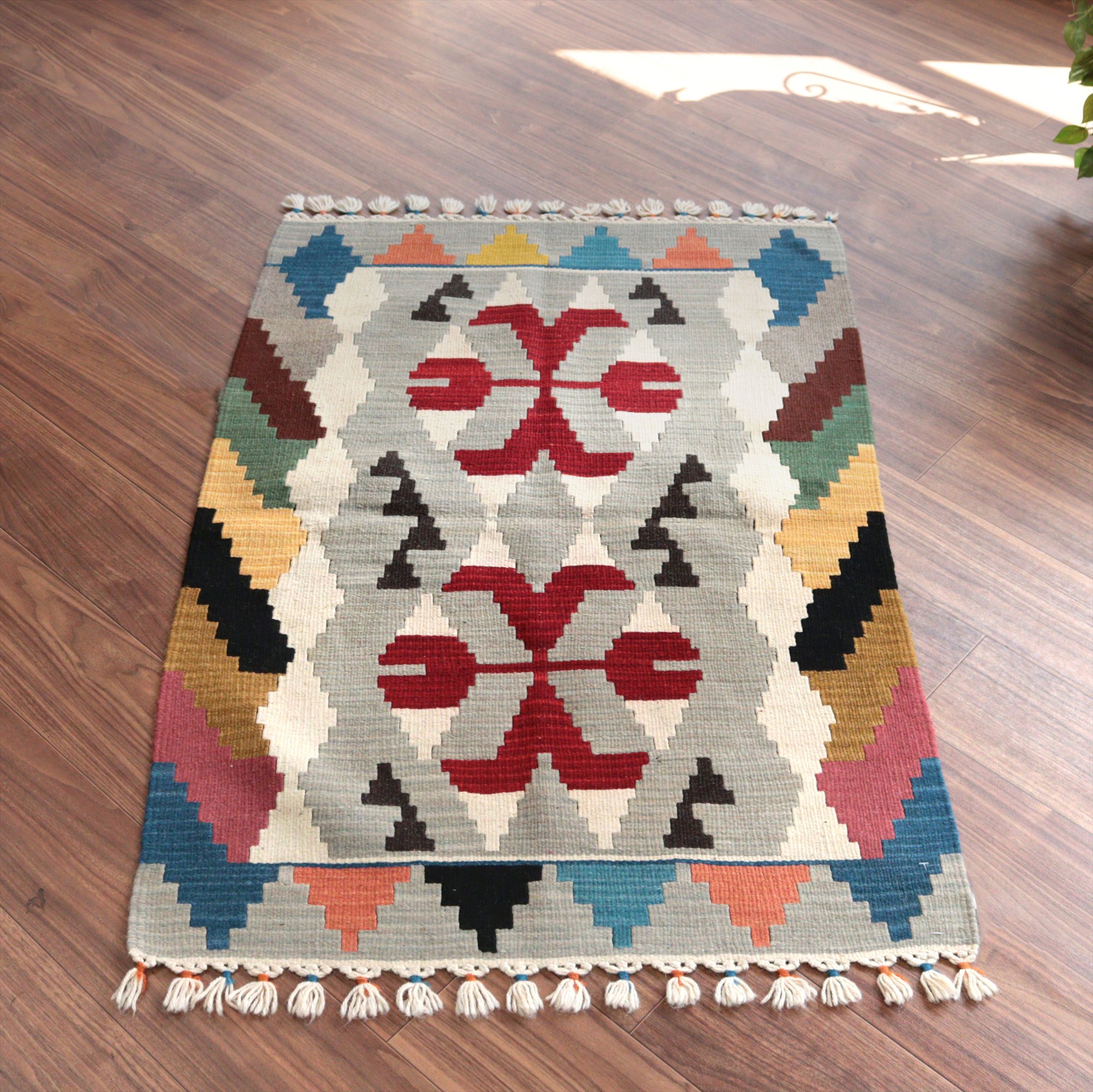 カイセリ産手織りキリム114×80cm グレー トルコの手織りラグ