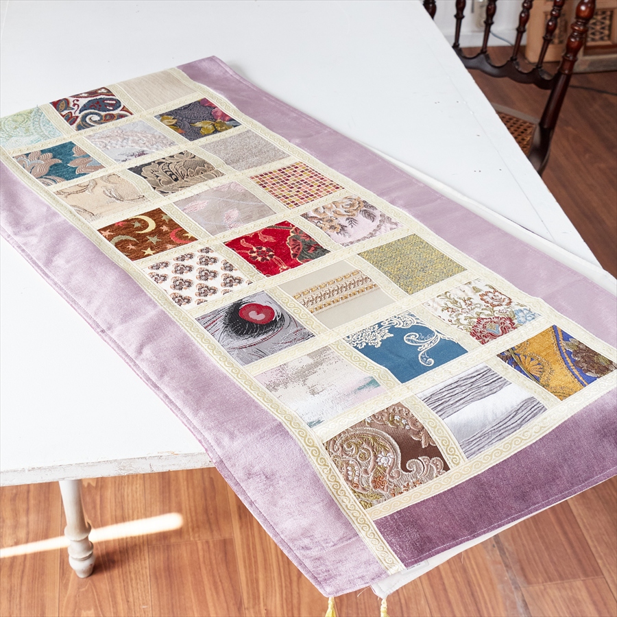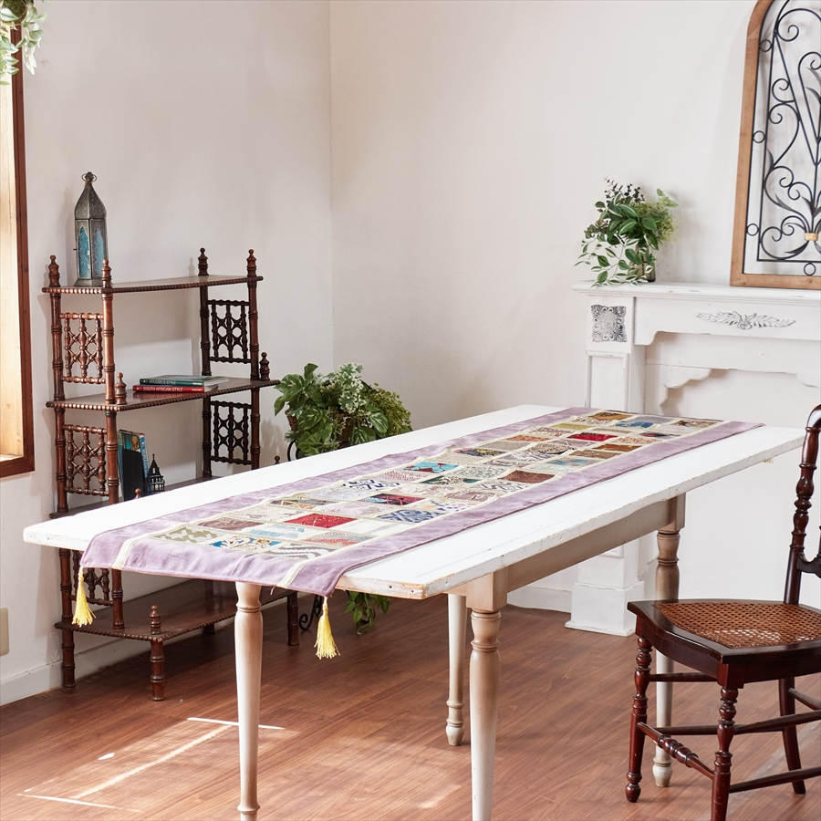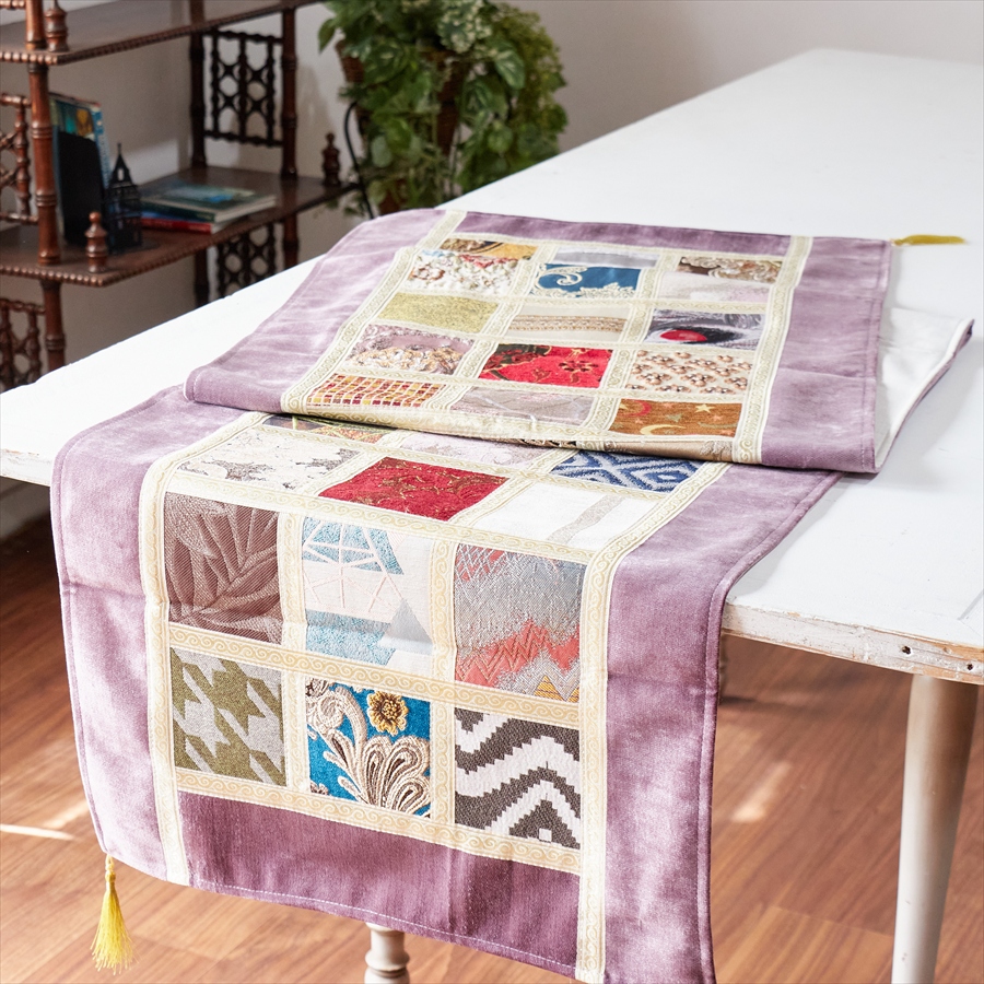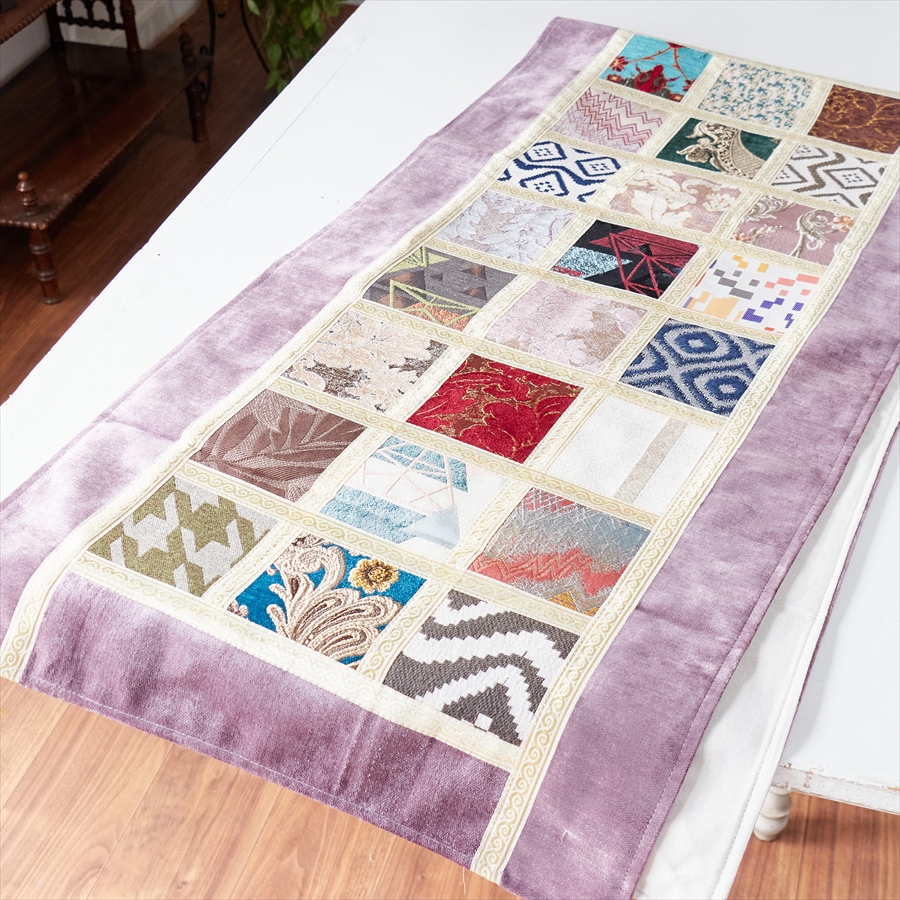 テーブルランナー モザイクパッチワーク 200x50cmサイズ シュニール素材