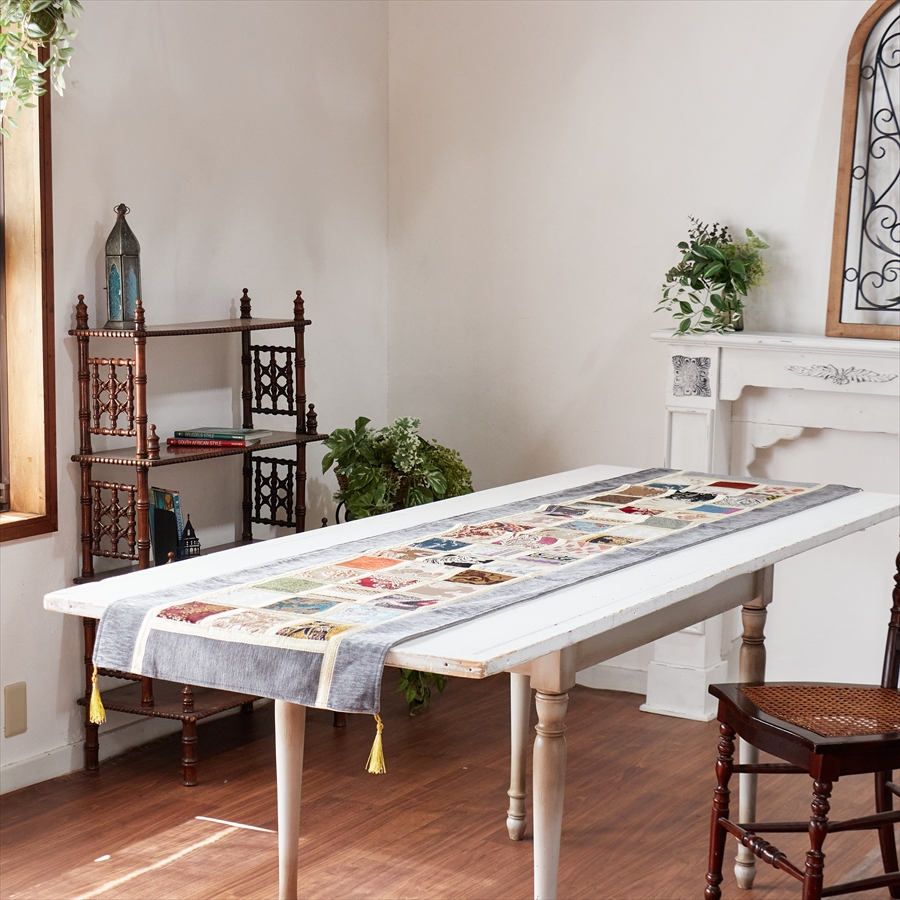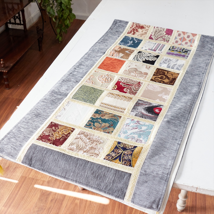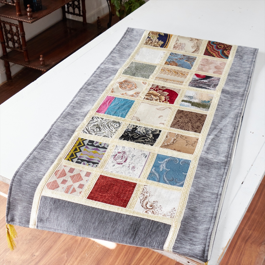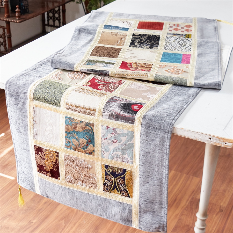 テーブルランナー モザイクパッチワーク 200x50cmサイズ シュニール素材