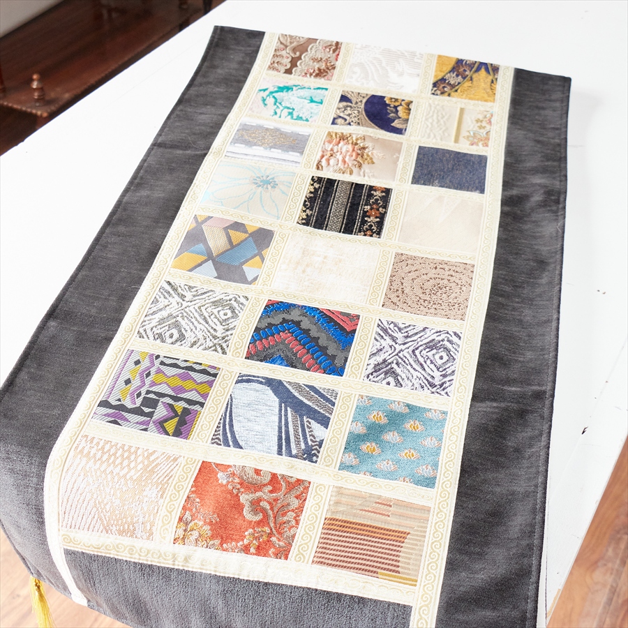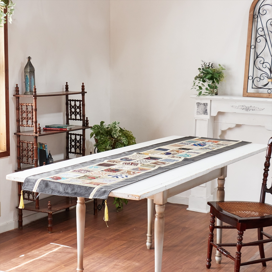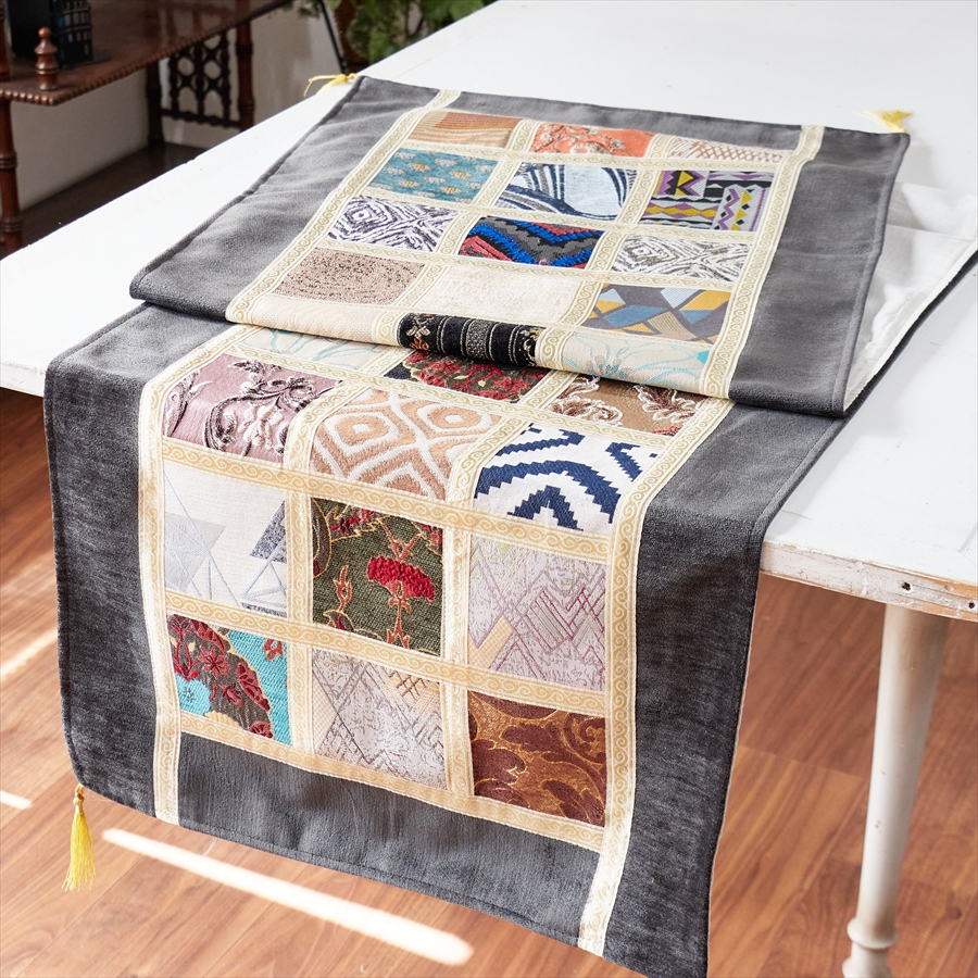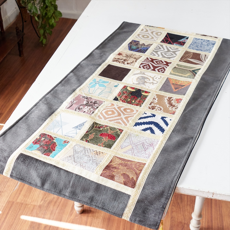 テーブルランナー モザイクパッチワーク 200x50cmサイズ シュニール素材