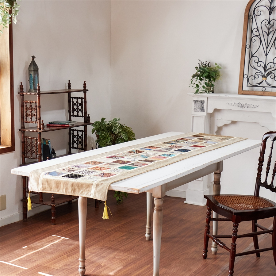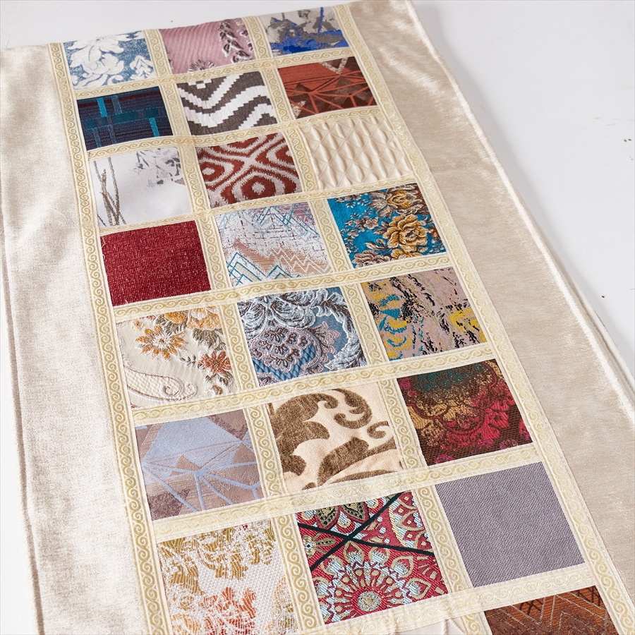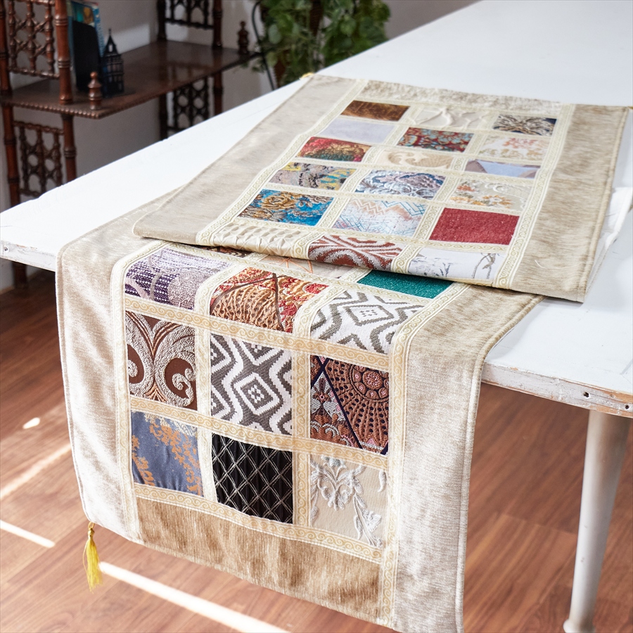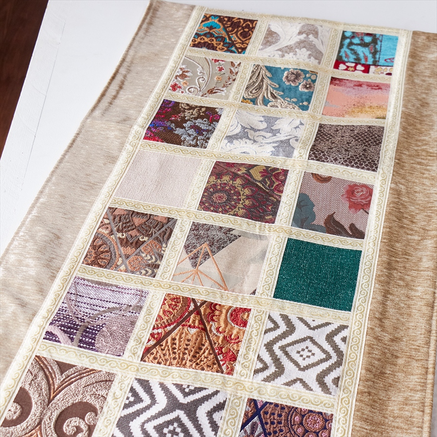 テーブルランナー モザイクパッチワーク 200x50cmサイズ シュニール素材