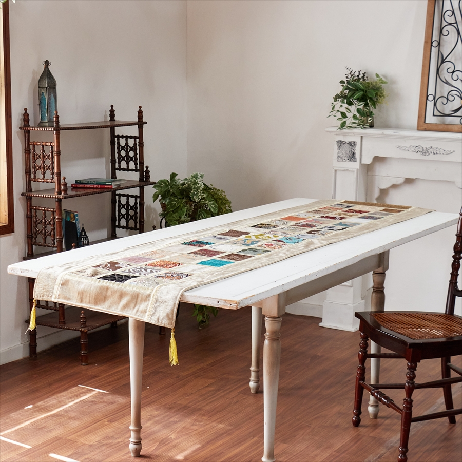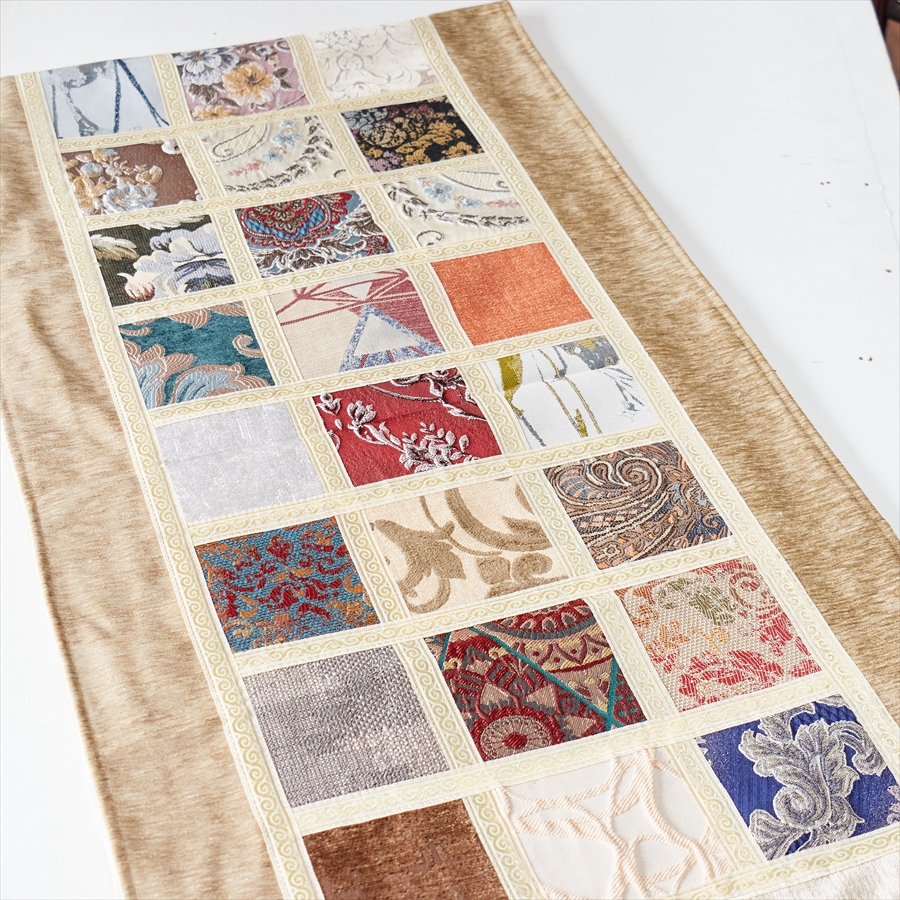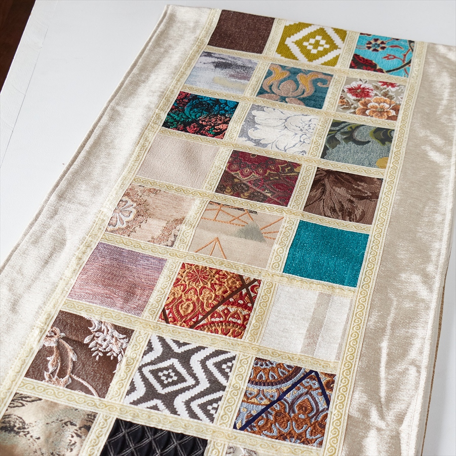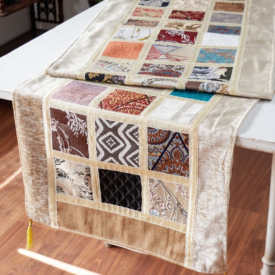 テーブルランナー モザイクパッチワーク 200x50cmサイズ シュニール素材