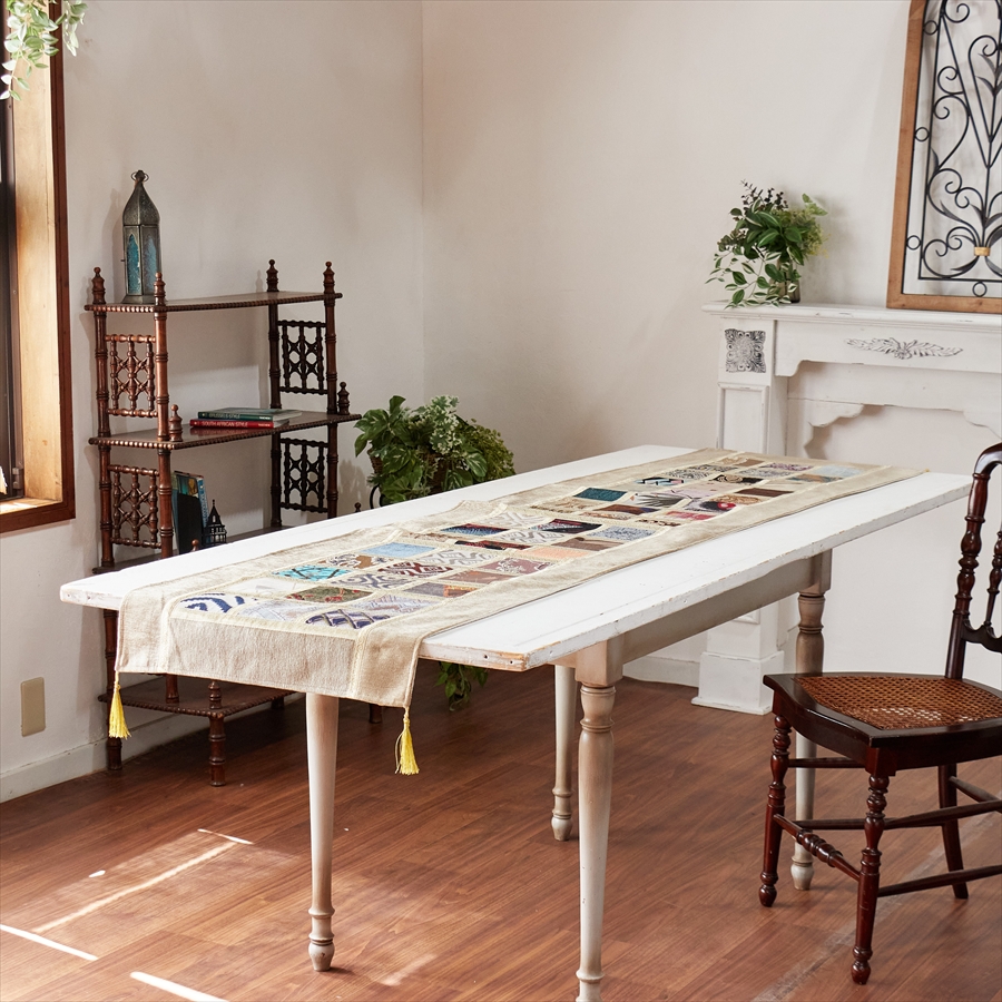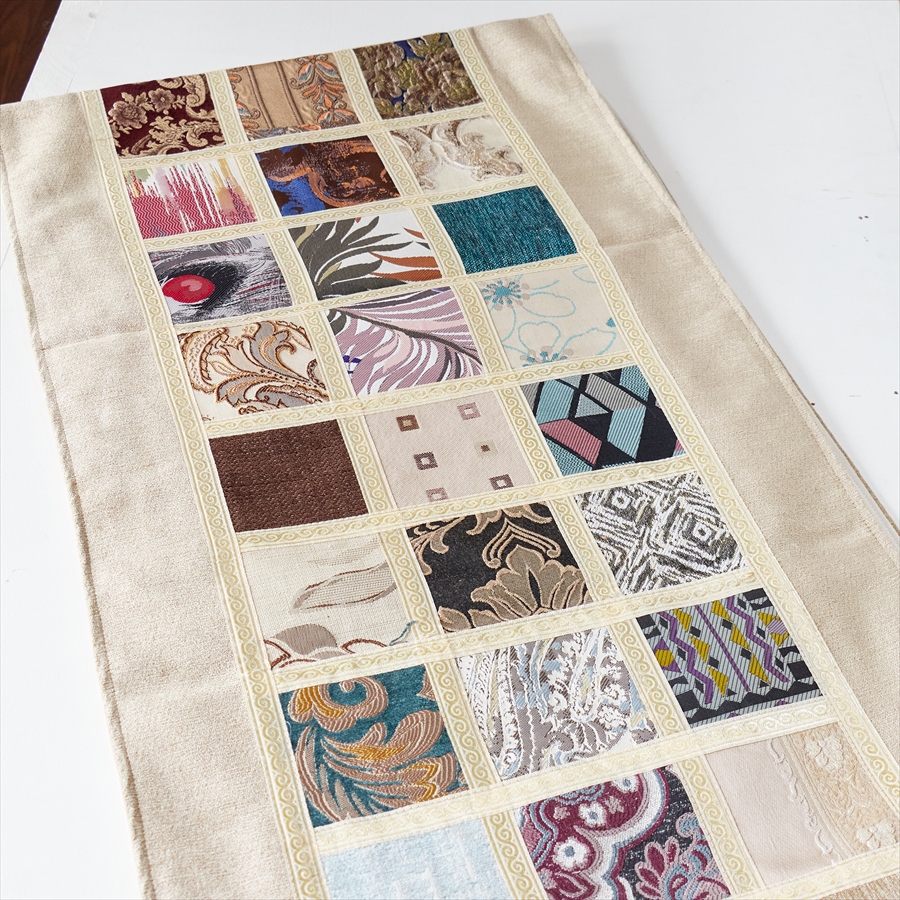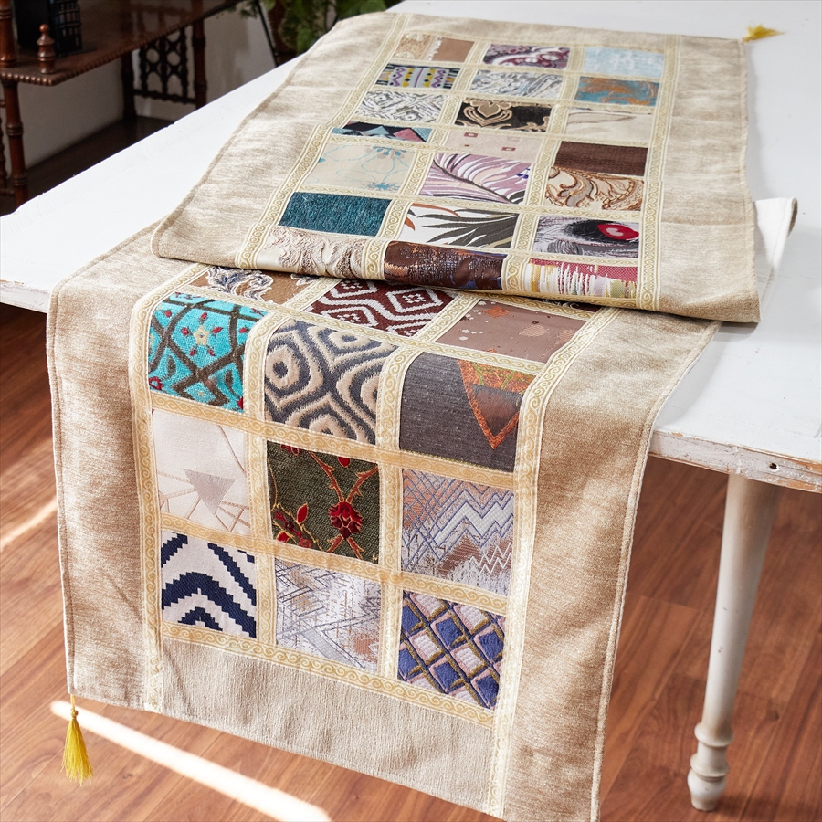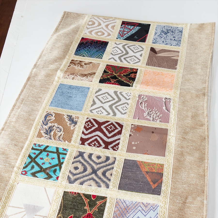 テーブルランナー モザイクパッチワーク 200x50cmサイズ シュニール素材