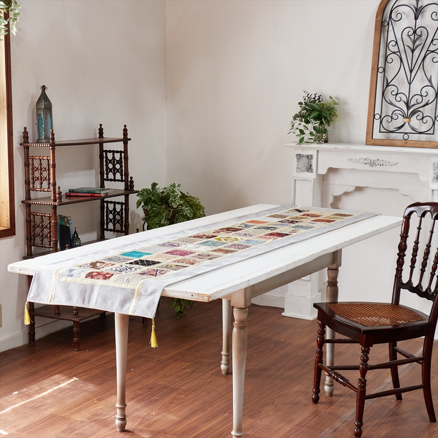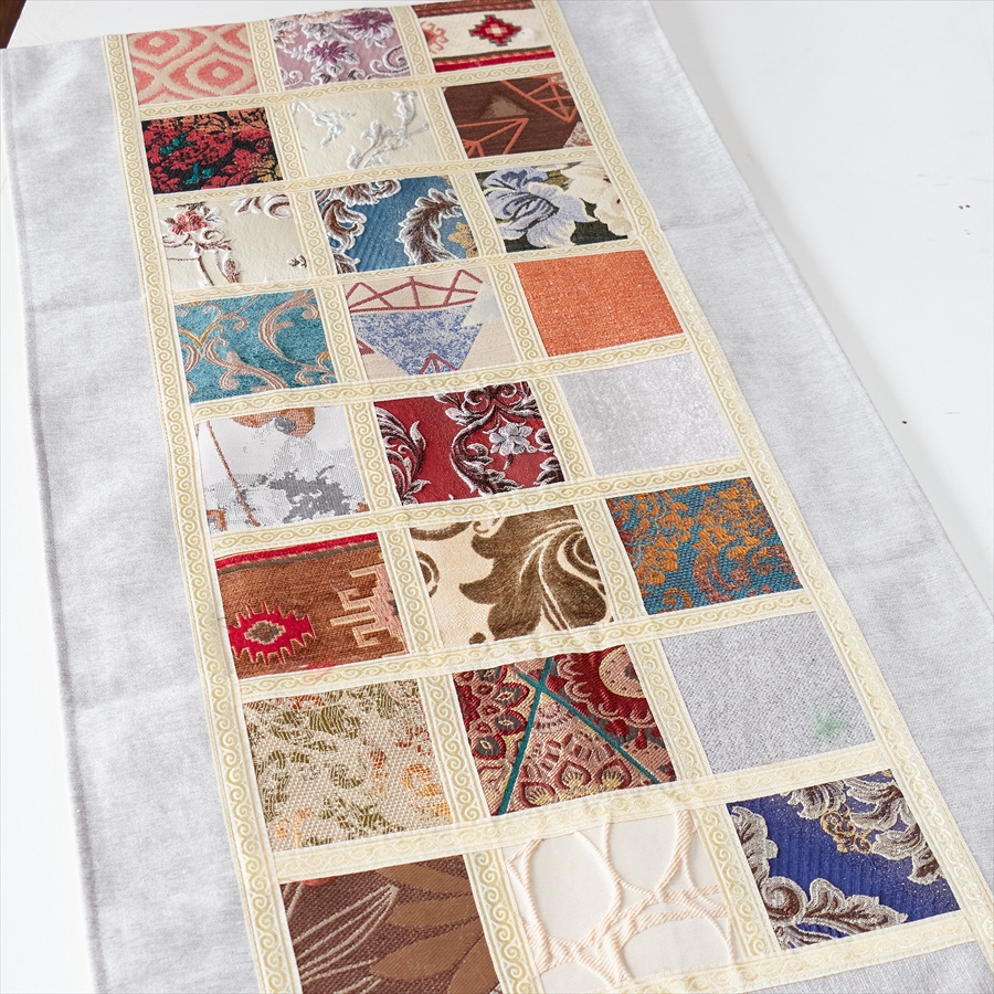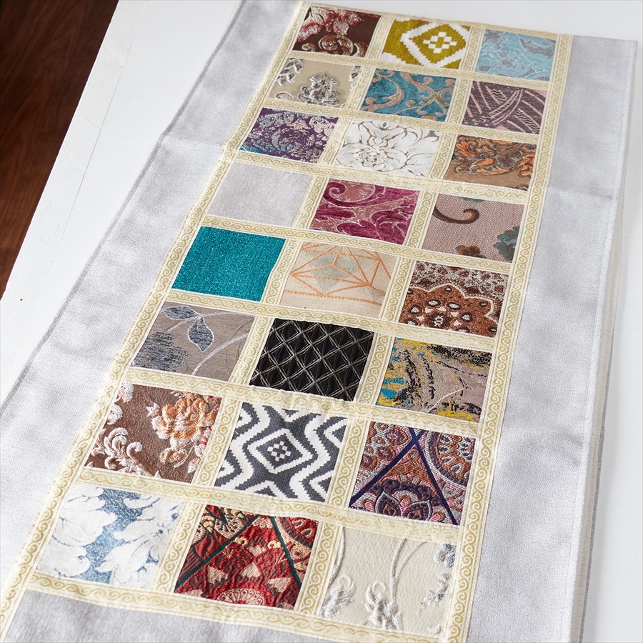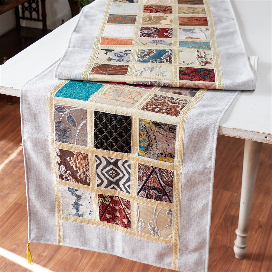 テーブルランナー モザイクパッチワーク 200x50cmサイズ シュニール素材