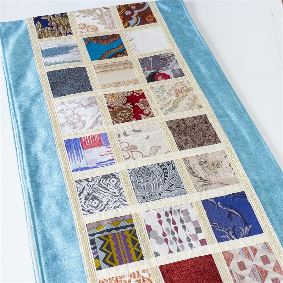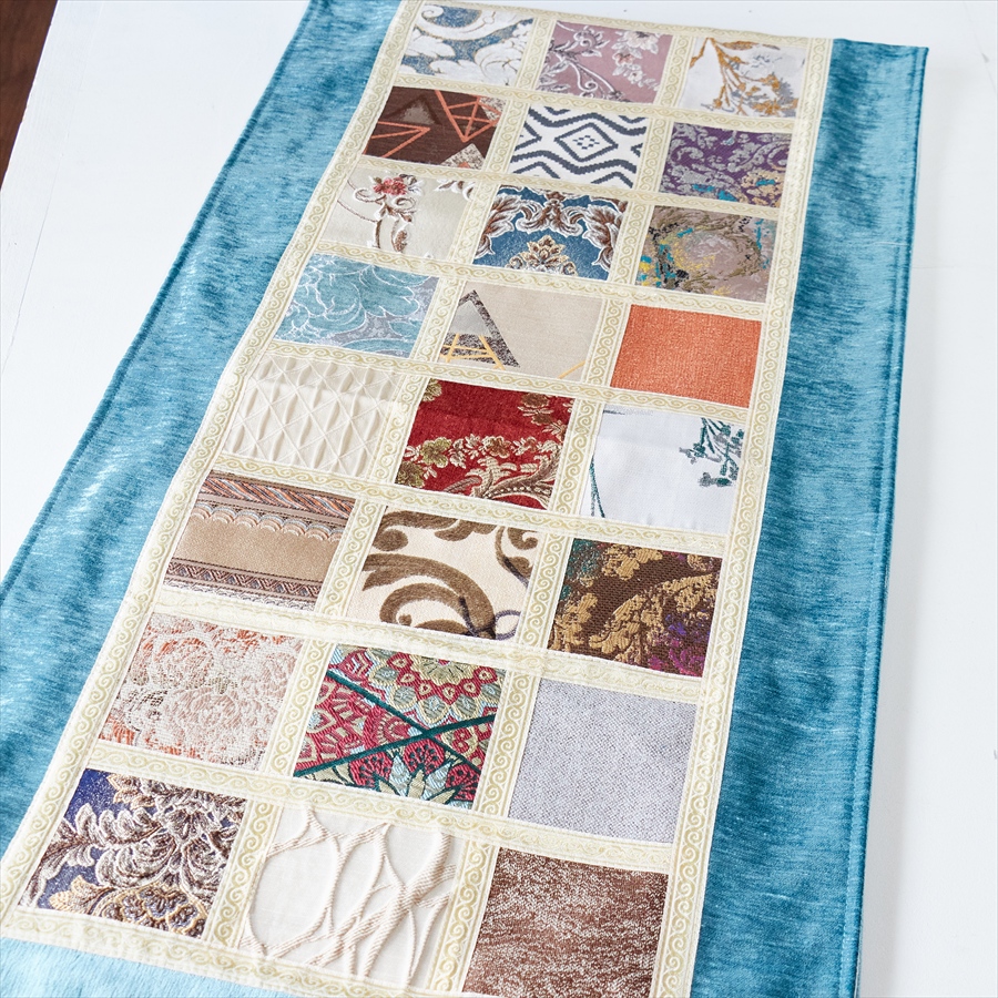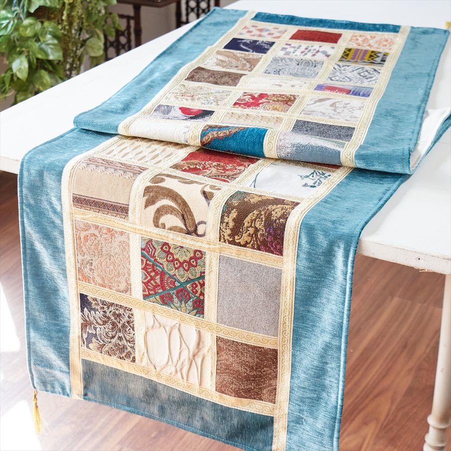 テーブルランナー モザイクパッチワーク 200x50cmサイズ シュニール素材