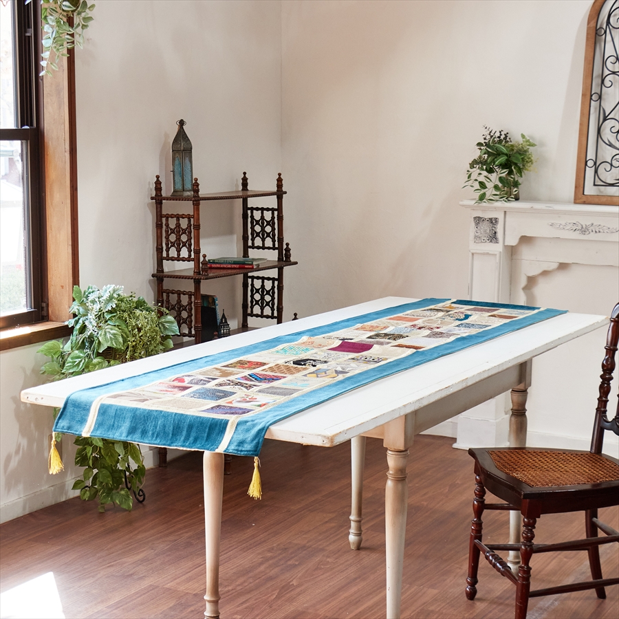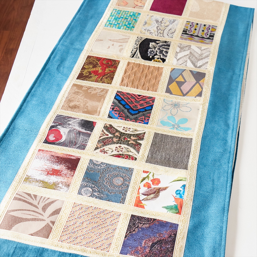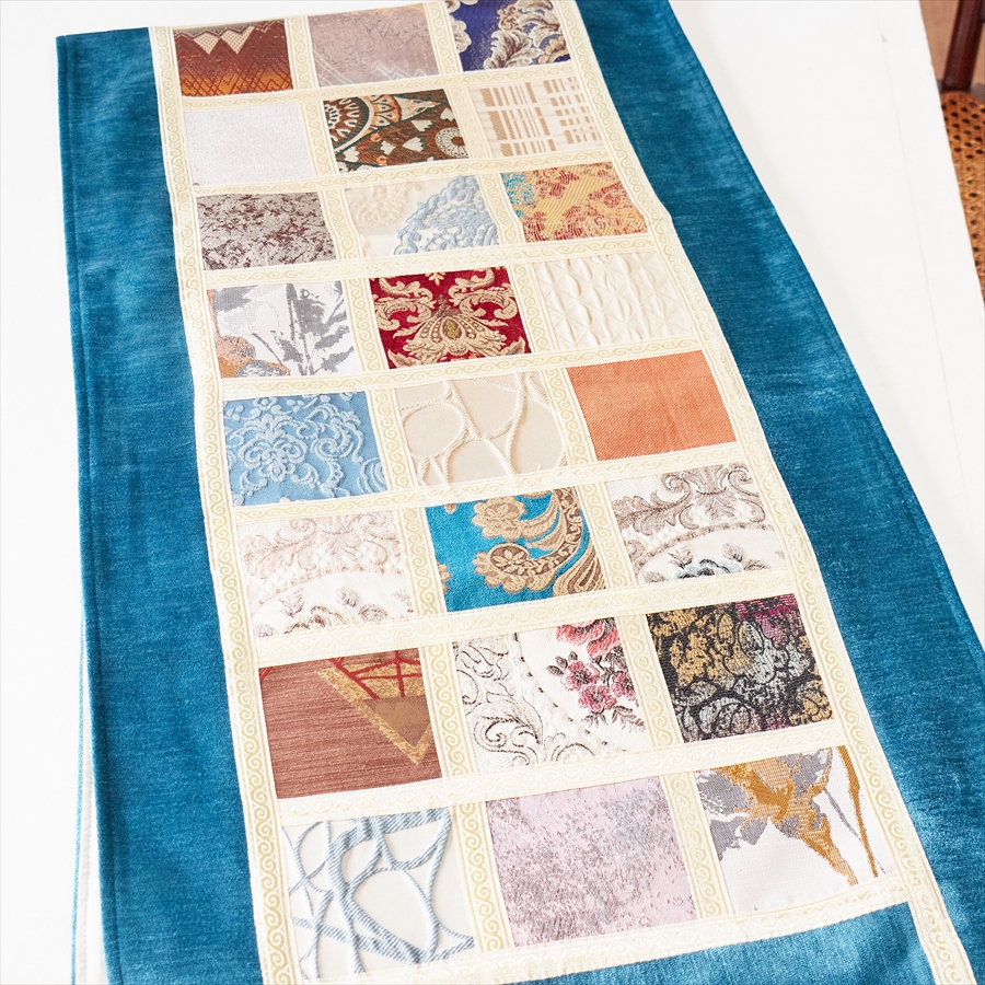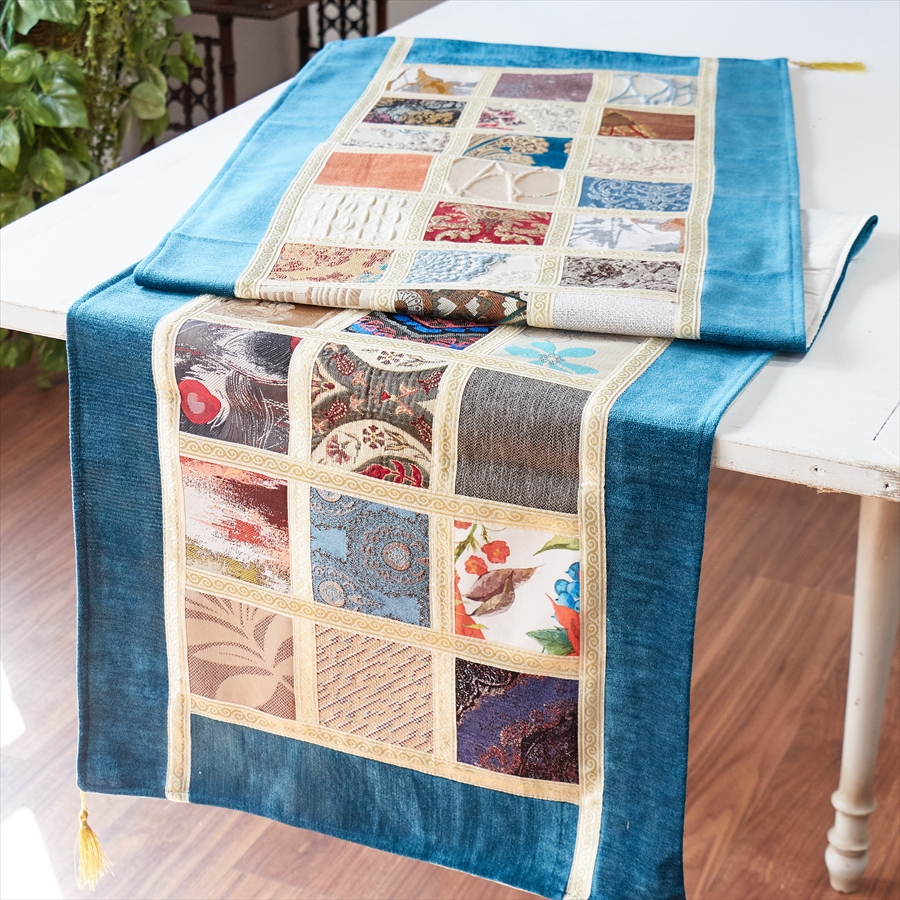 テーブルランナー モザイクパッチワーク 200x50cmサイズ シュニール素材