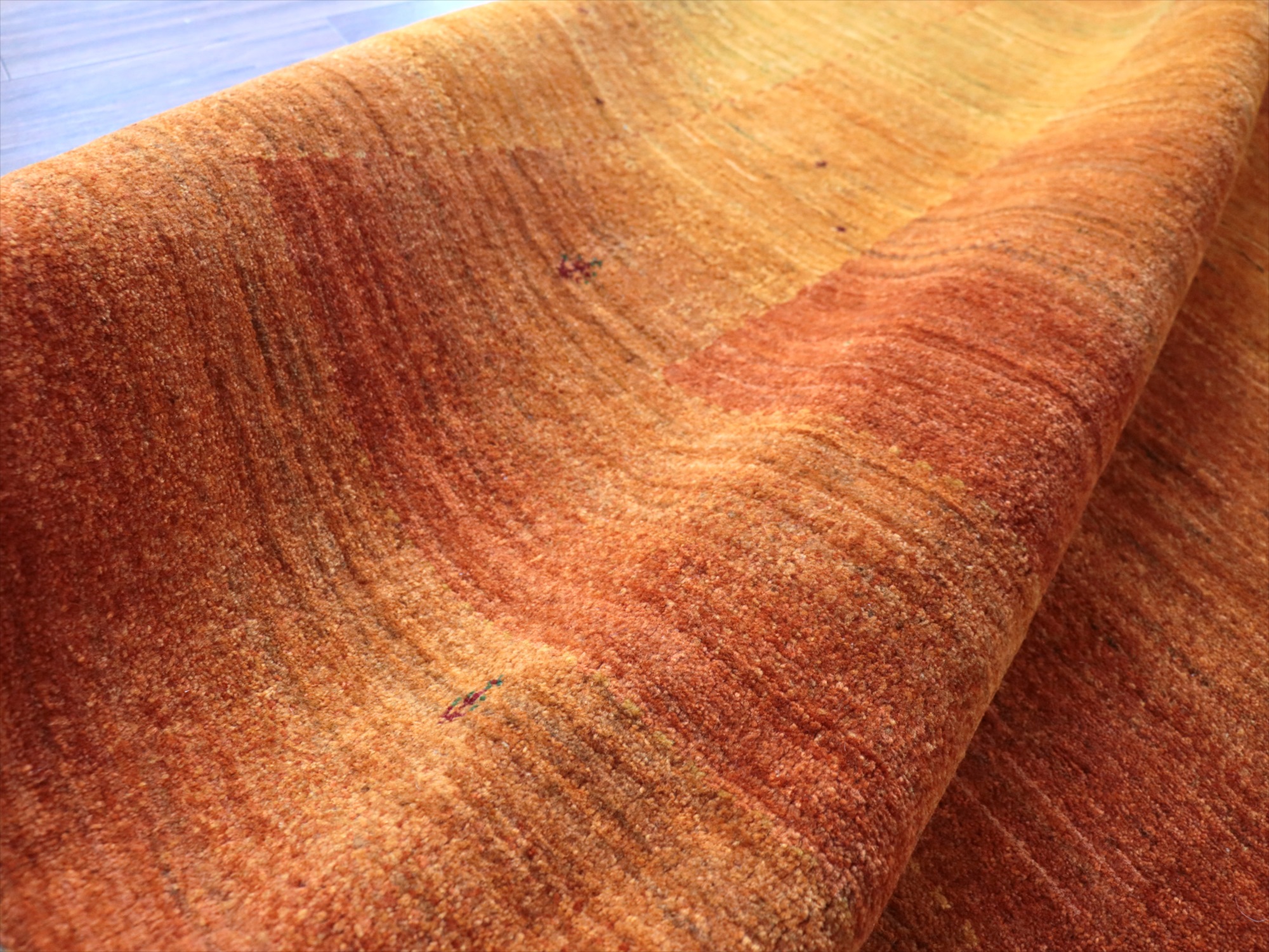 ギュっと目の詰まった織り地でパイルは短めです。ふかふかというのではなく、踏んだ時にツンとたったパイルに支えられる感じで、織りの密度の高さを実感できます。