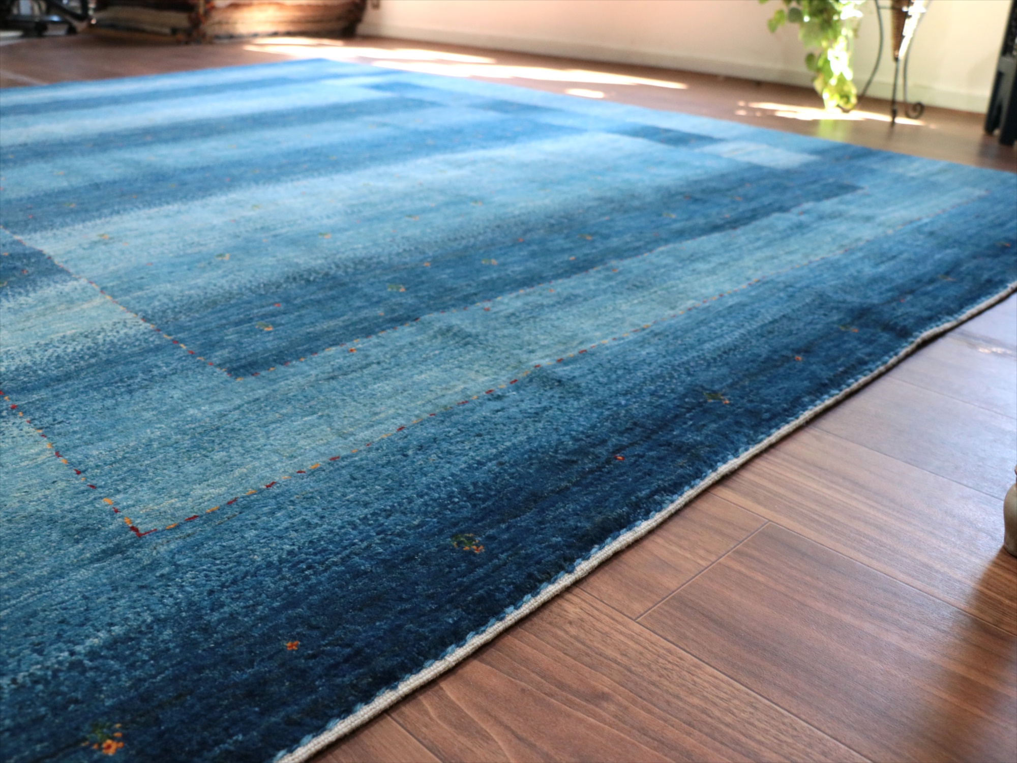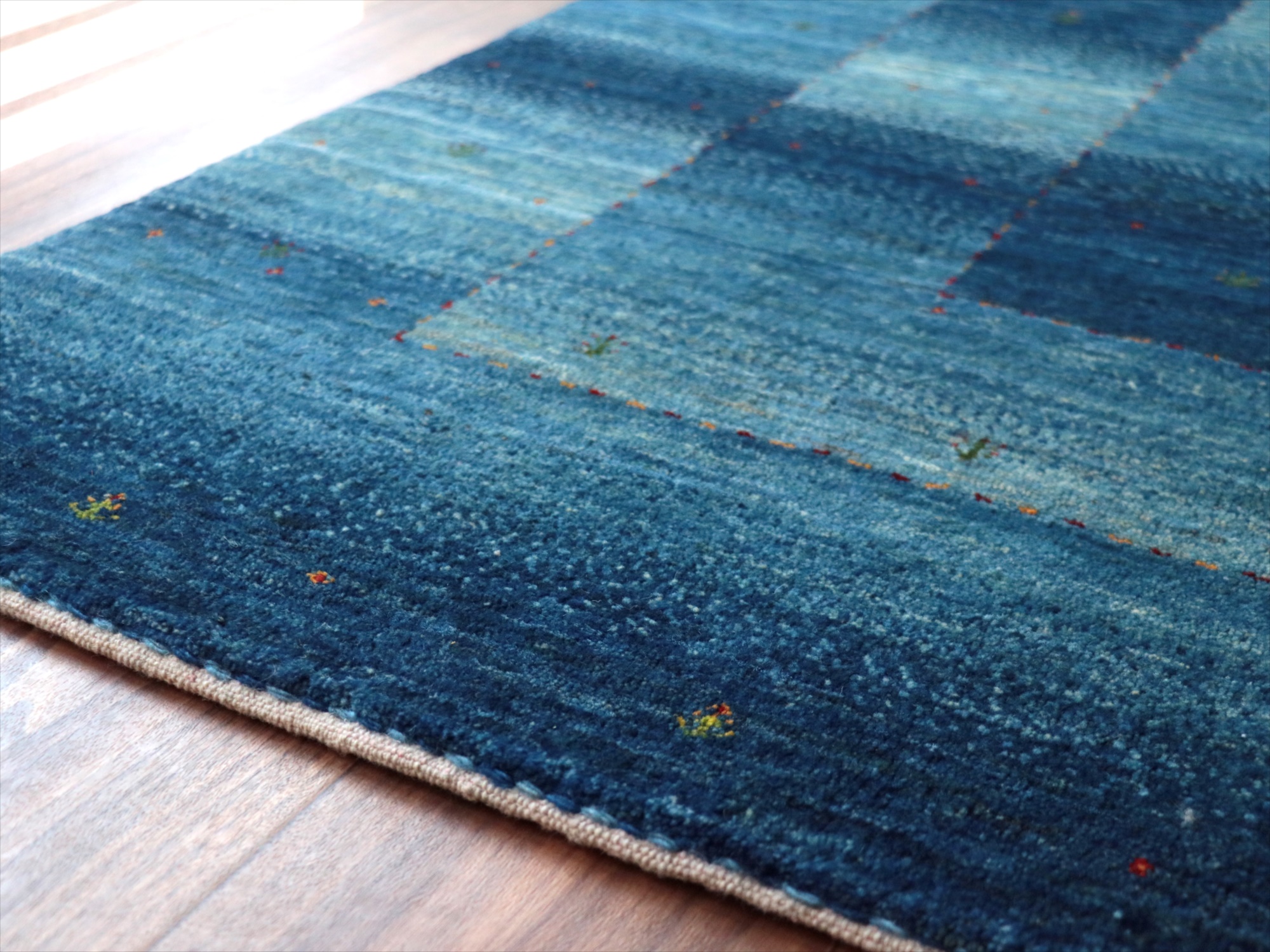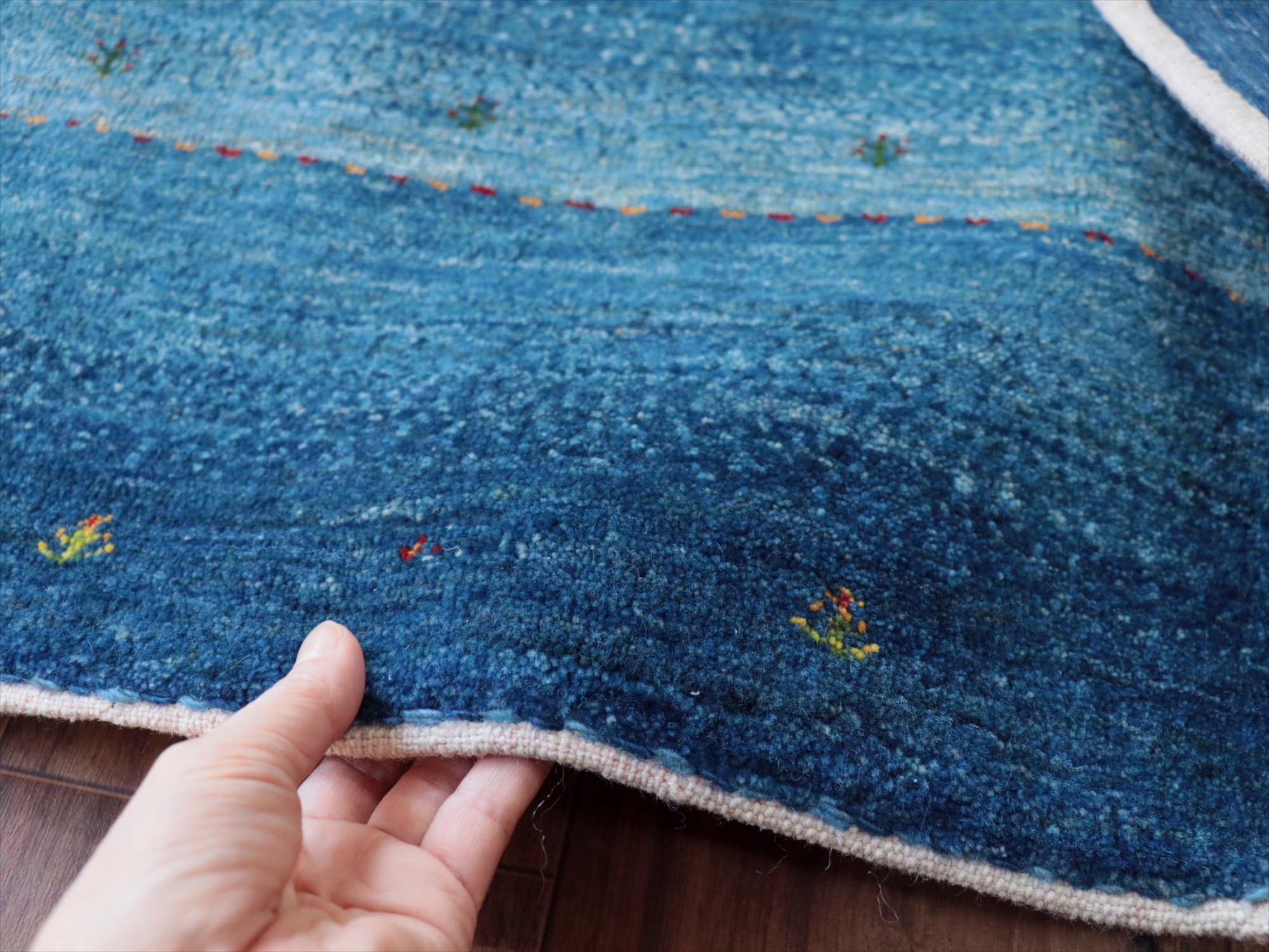 パイルの刈り込みは短めで、ギャッベ全体の厚みは1.1-1.2cm程度。