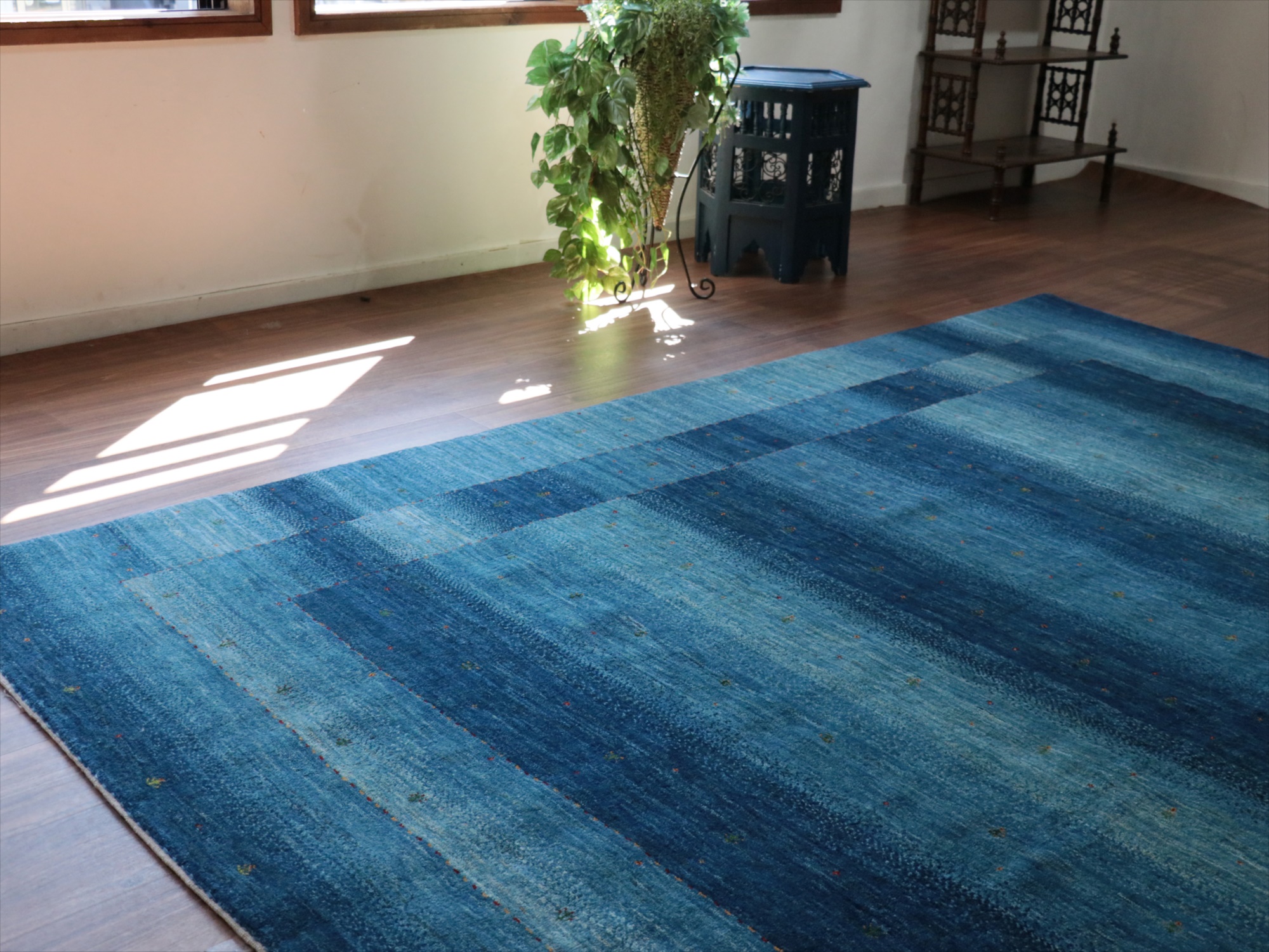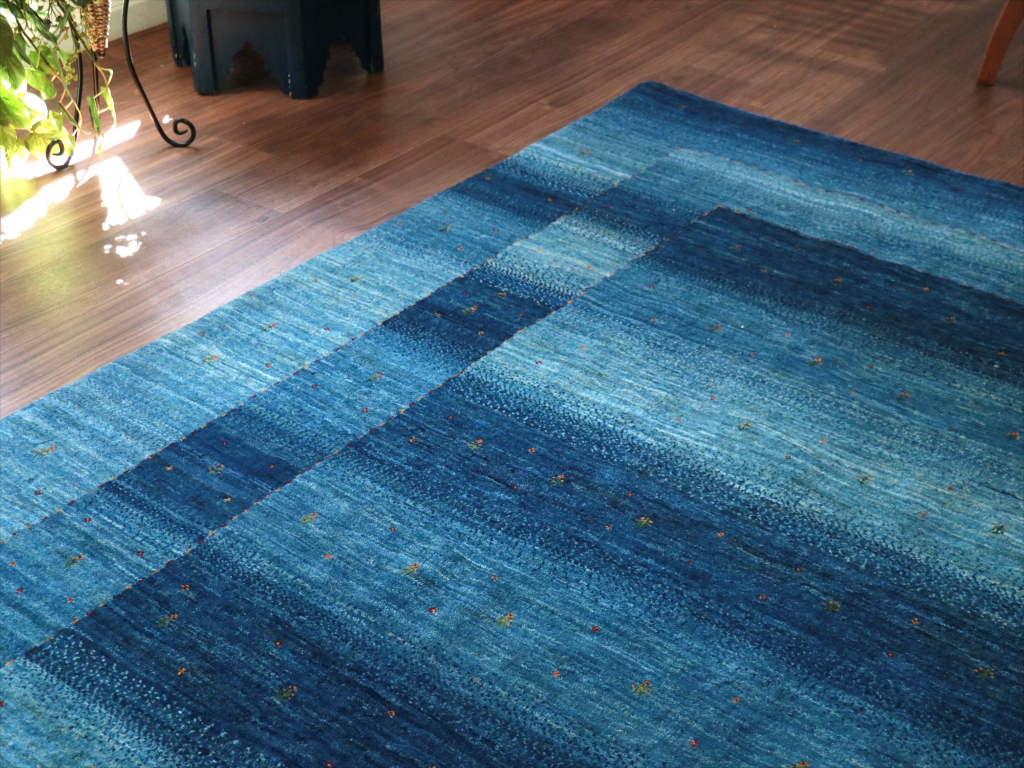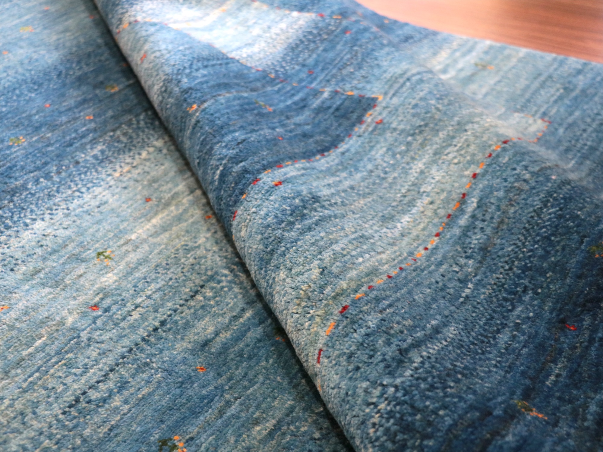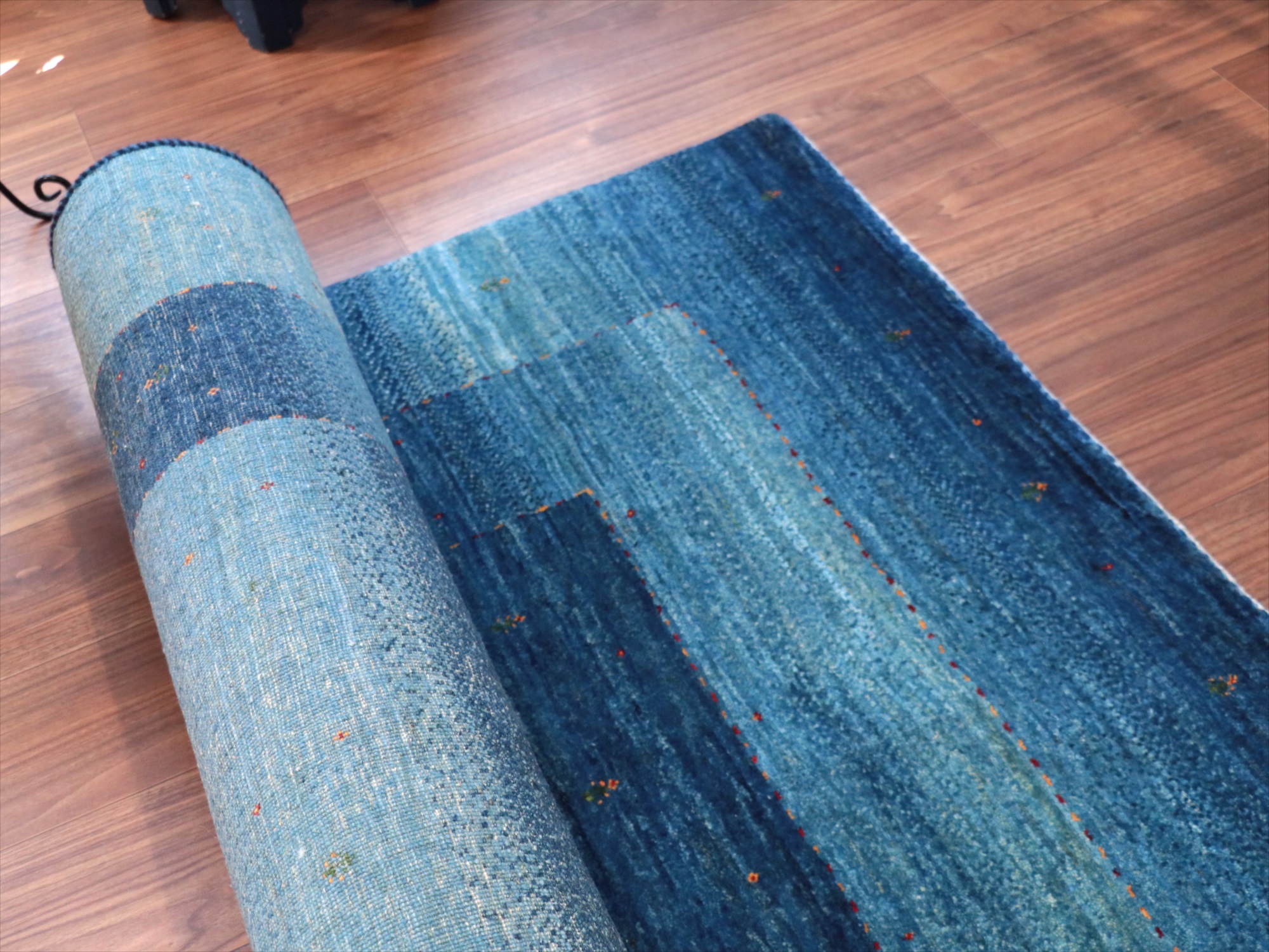 パイルの刈り込みは短めで、ギャッベ全体の厚みは1.1-1.2cm程度。