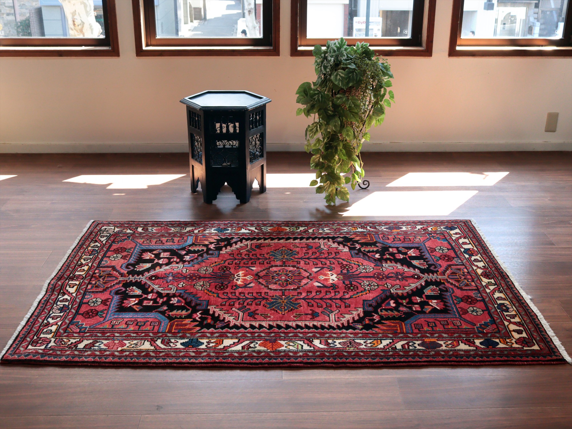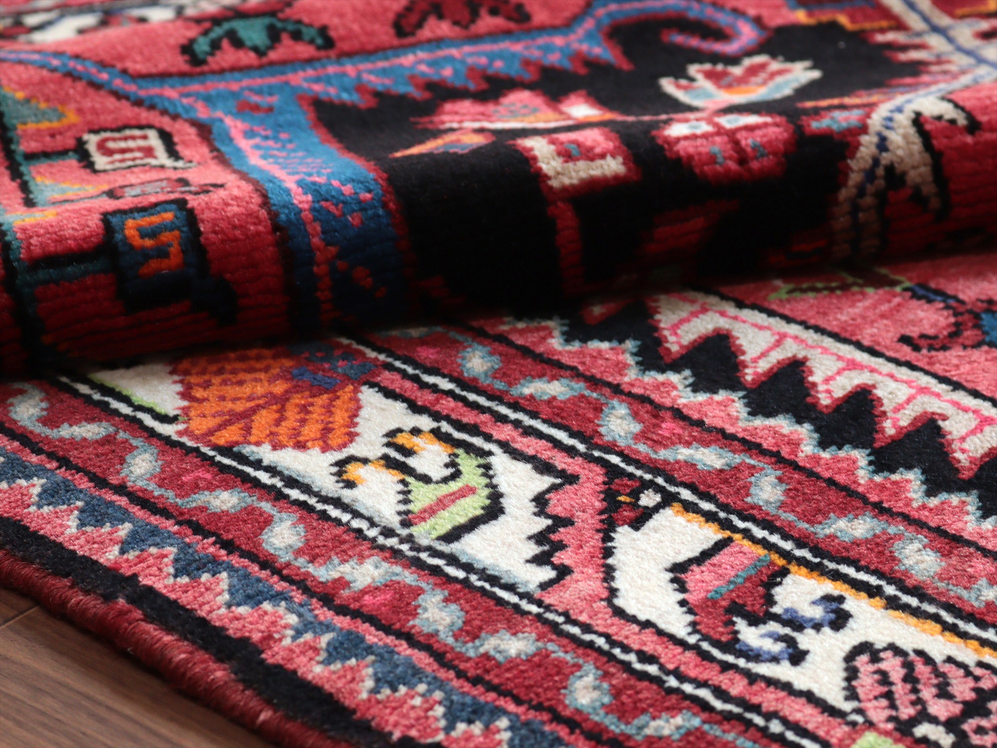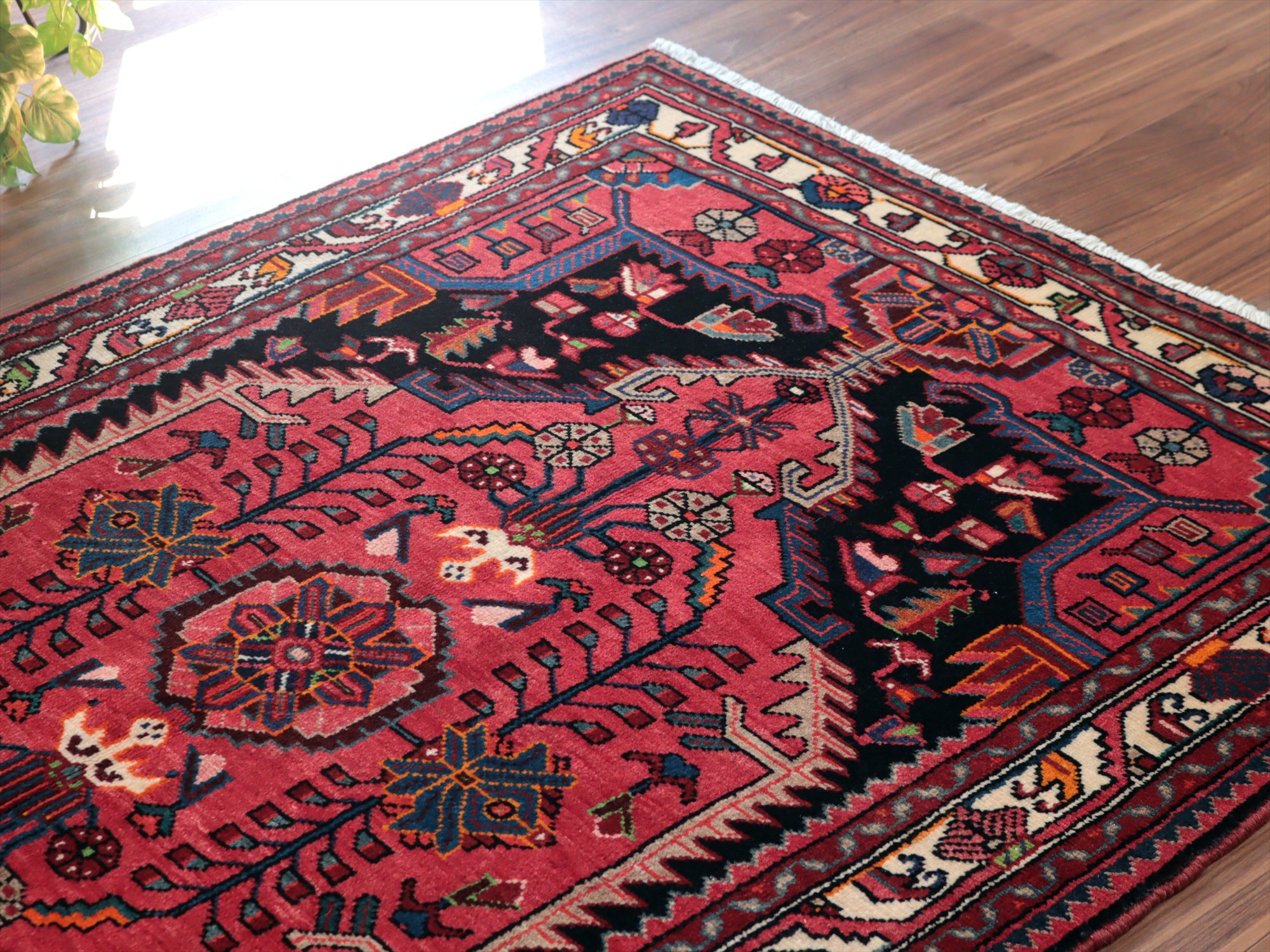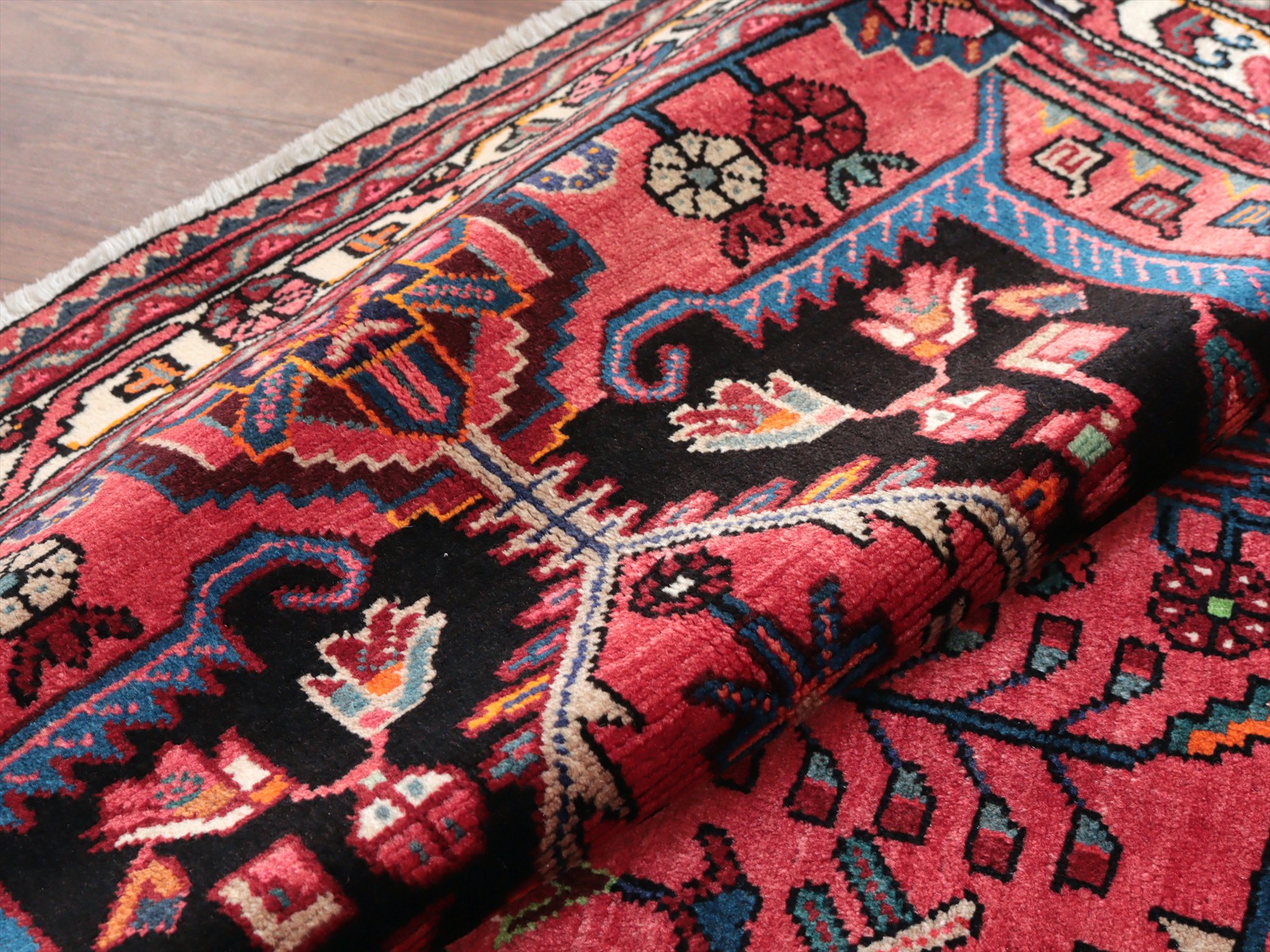 イランの手織りラグ トイセルカン177×114cm メダリオンと小花 レッド&ネイビー