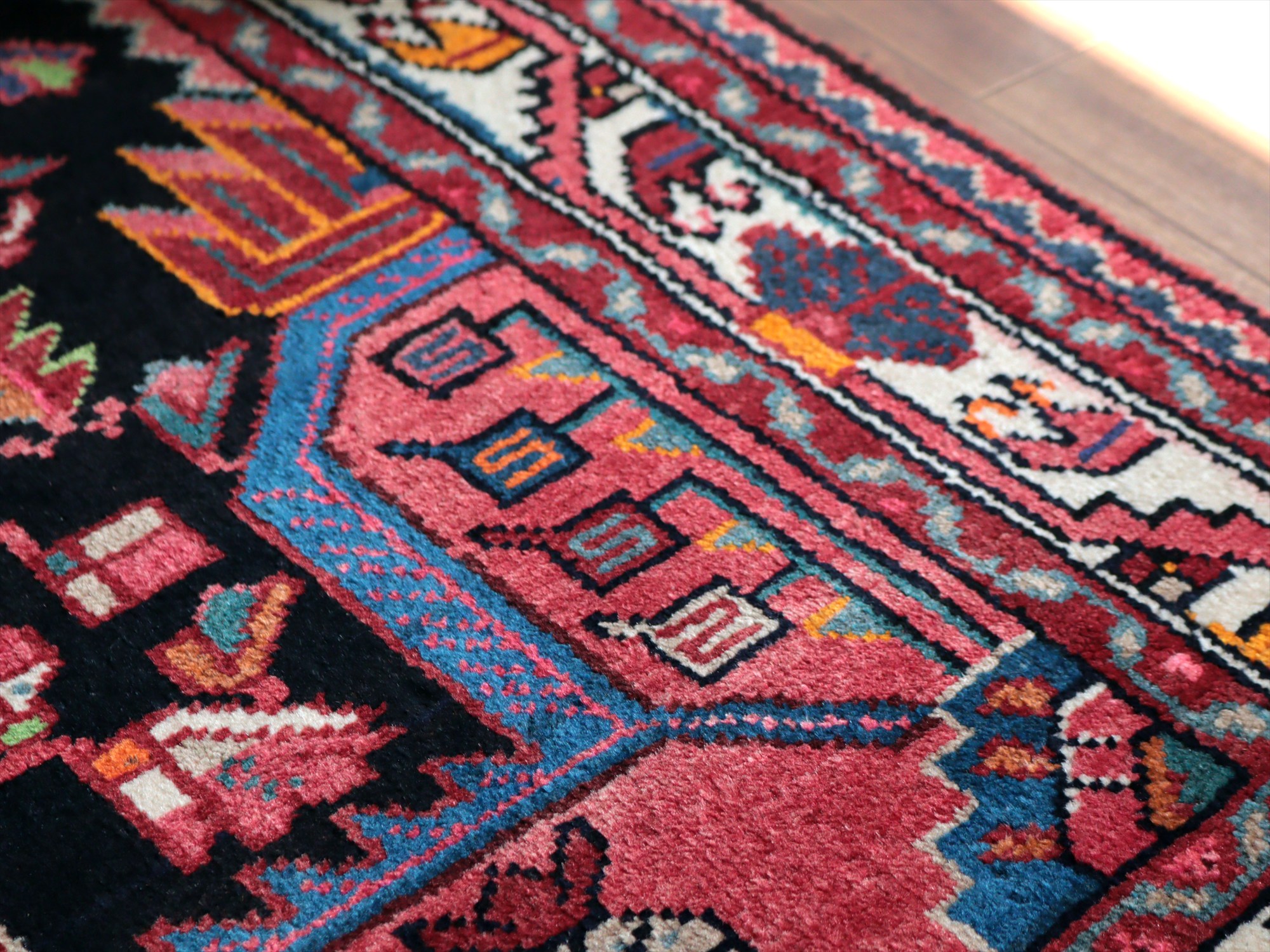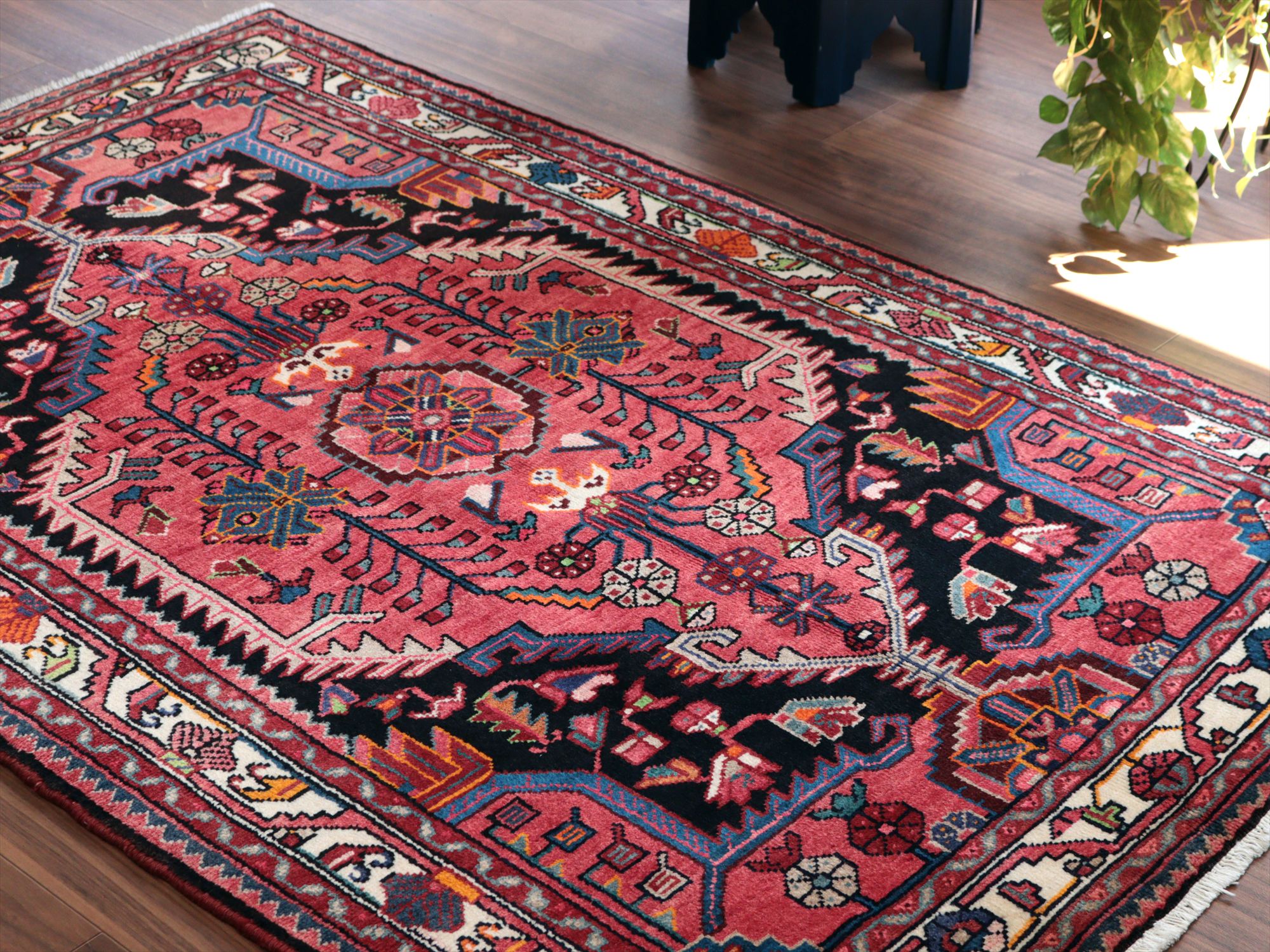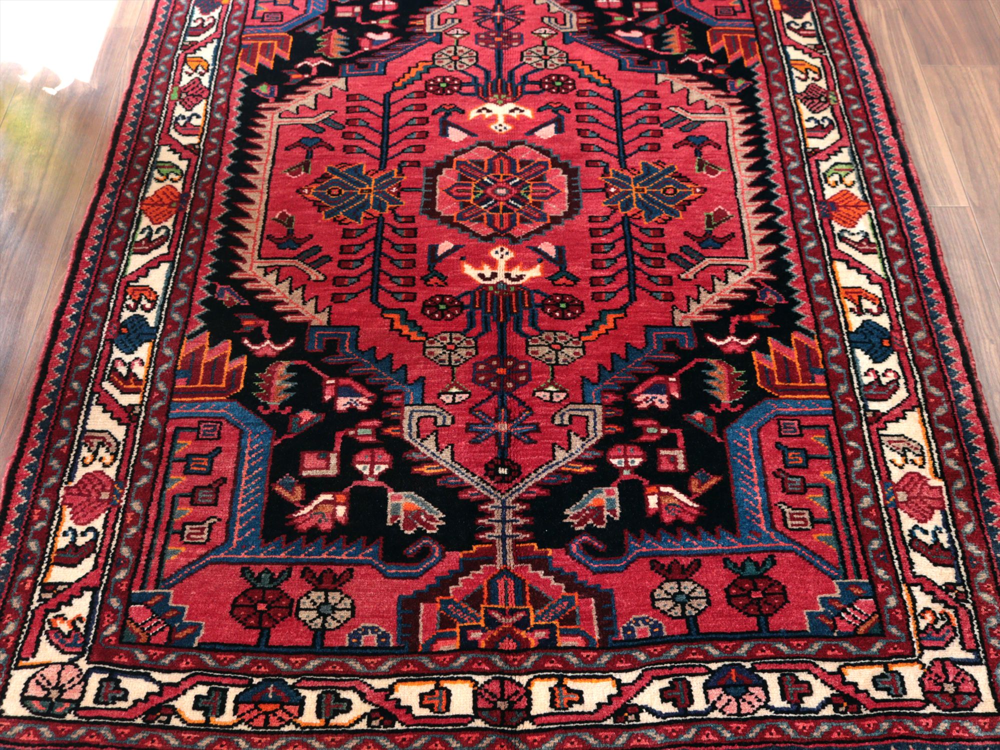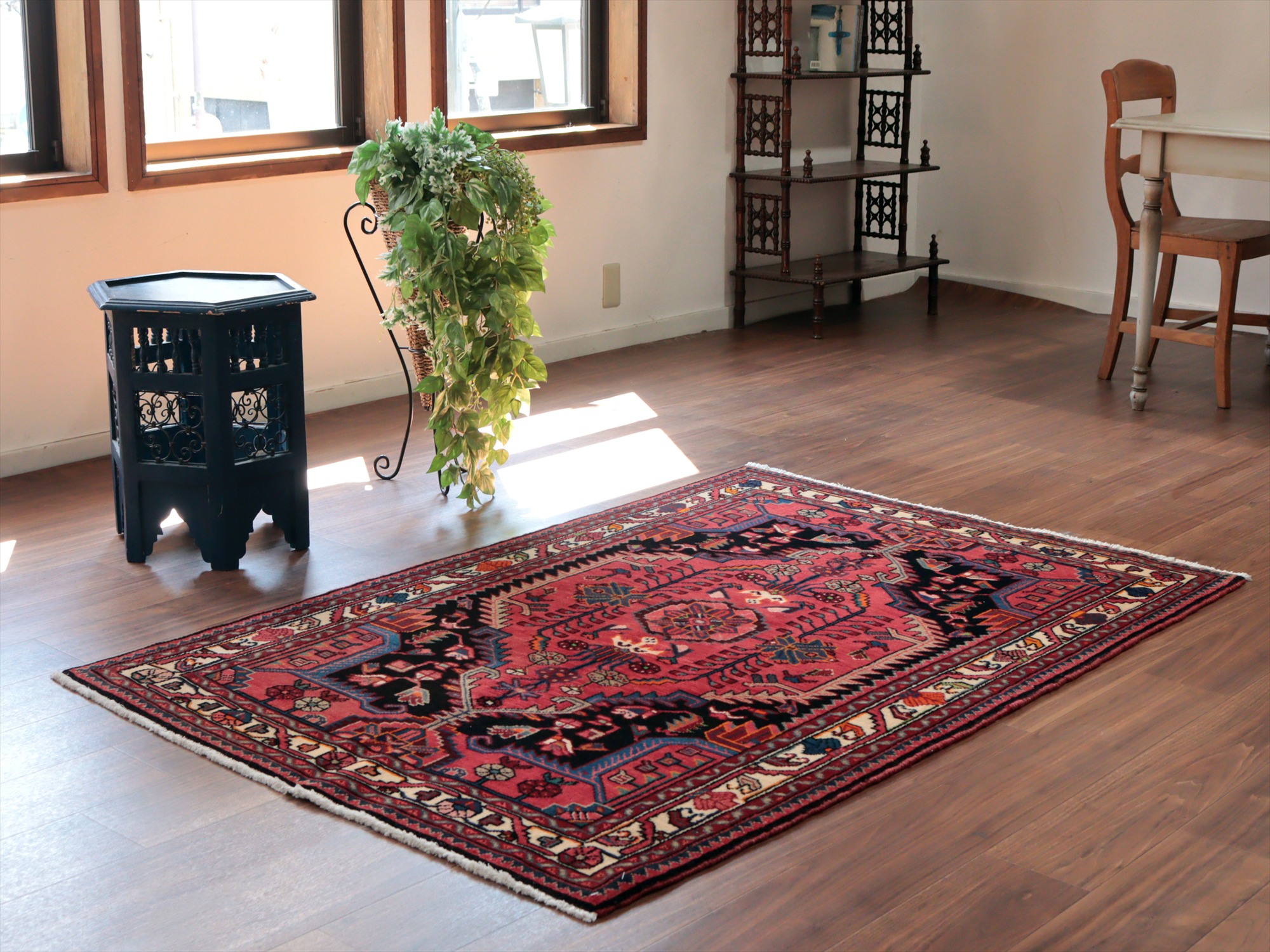 イランの手織りラグ トイセルカン177×114cm メダリオンと小花 レッド&ネイビー