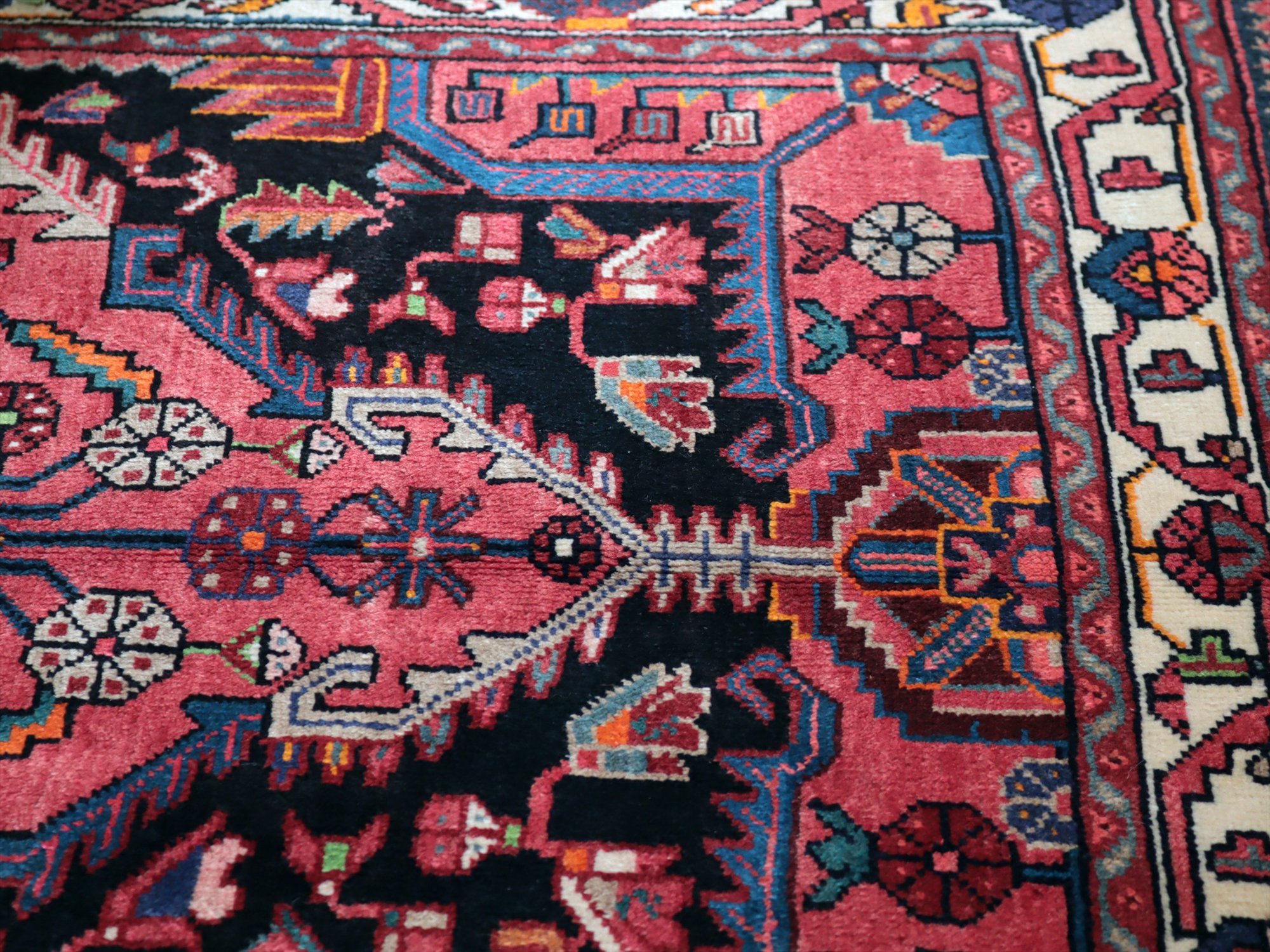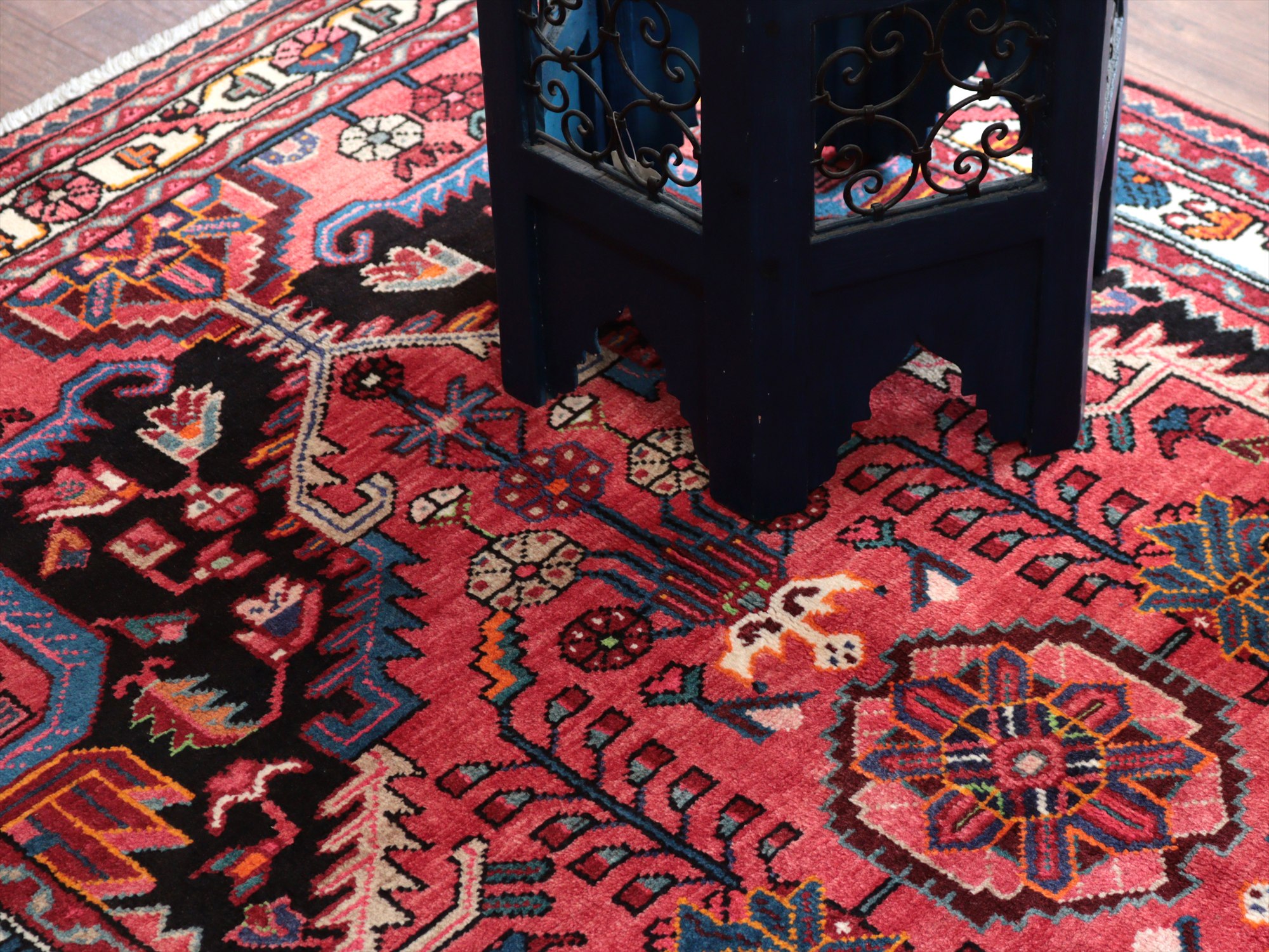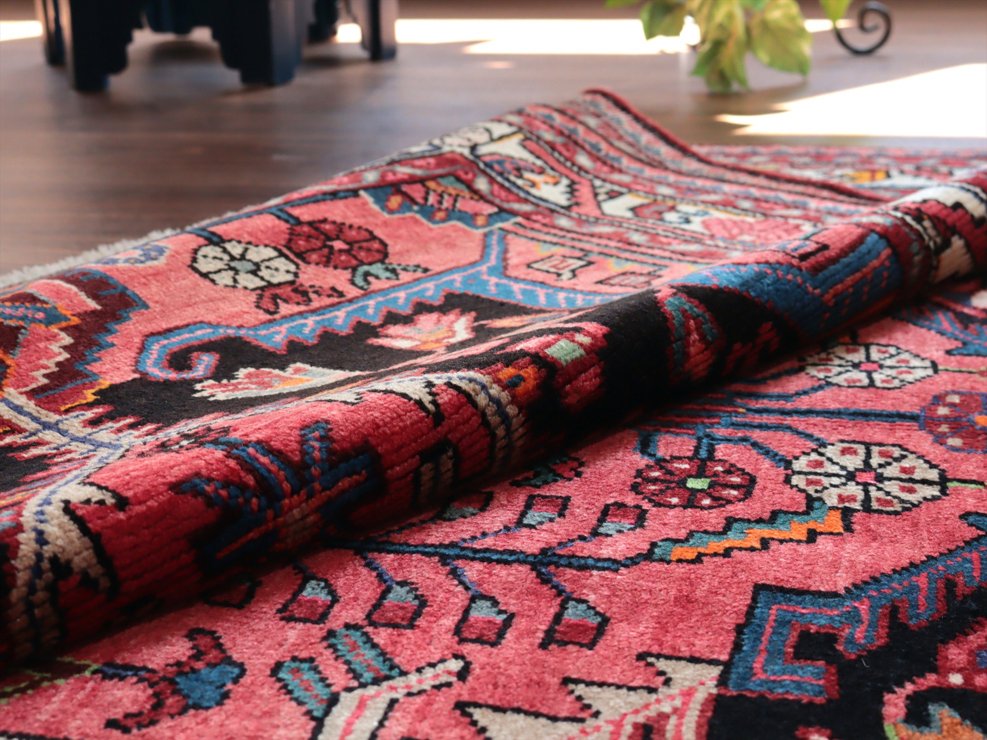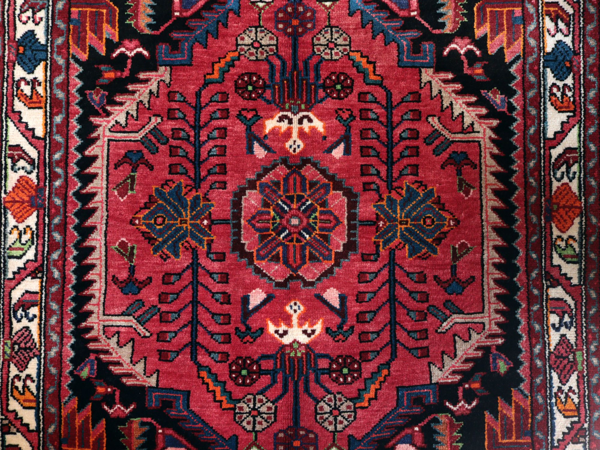 イランの手織りラグ トイセルカン177×114cm メダリオンと小花 レッド&ネイビー