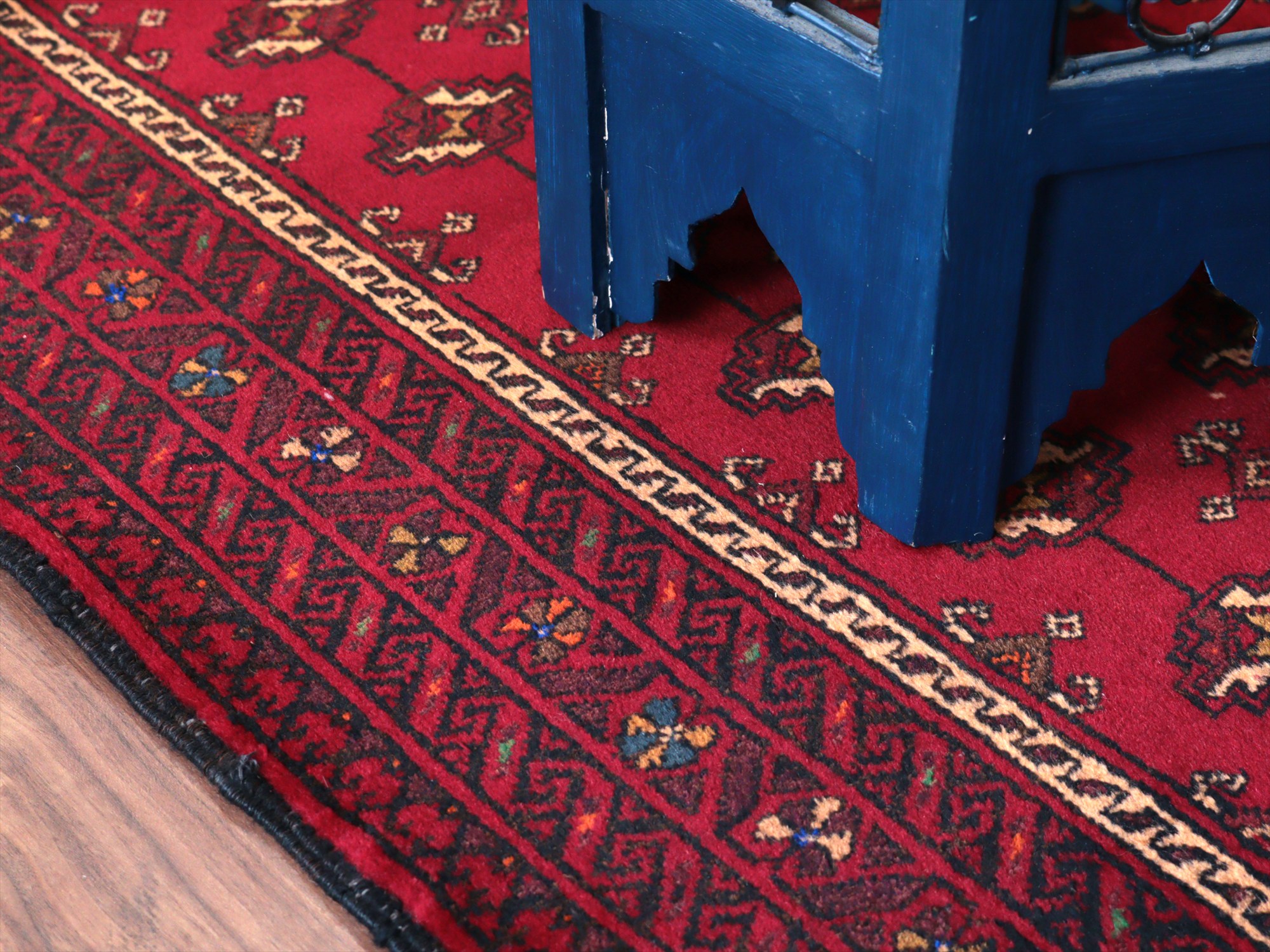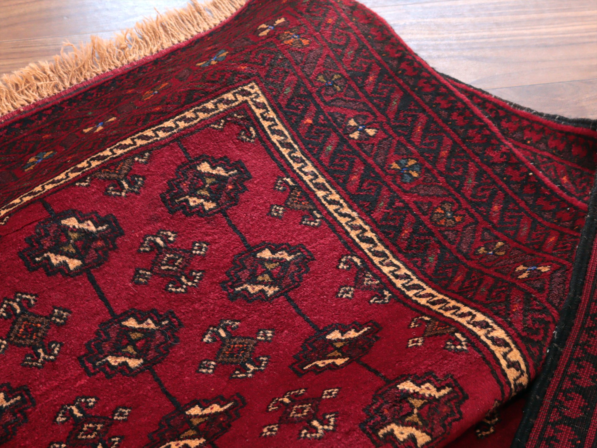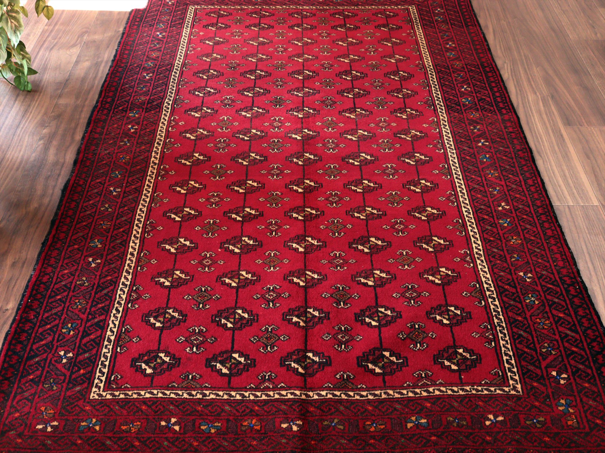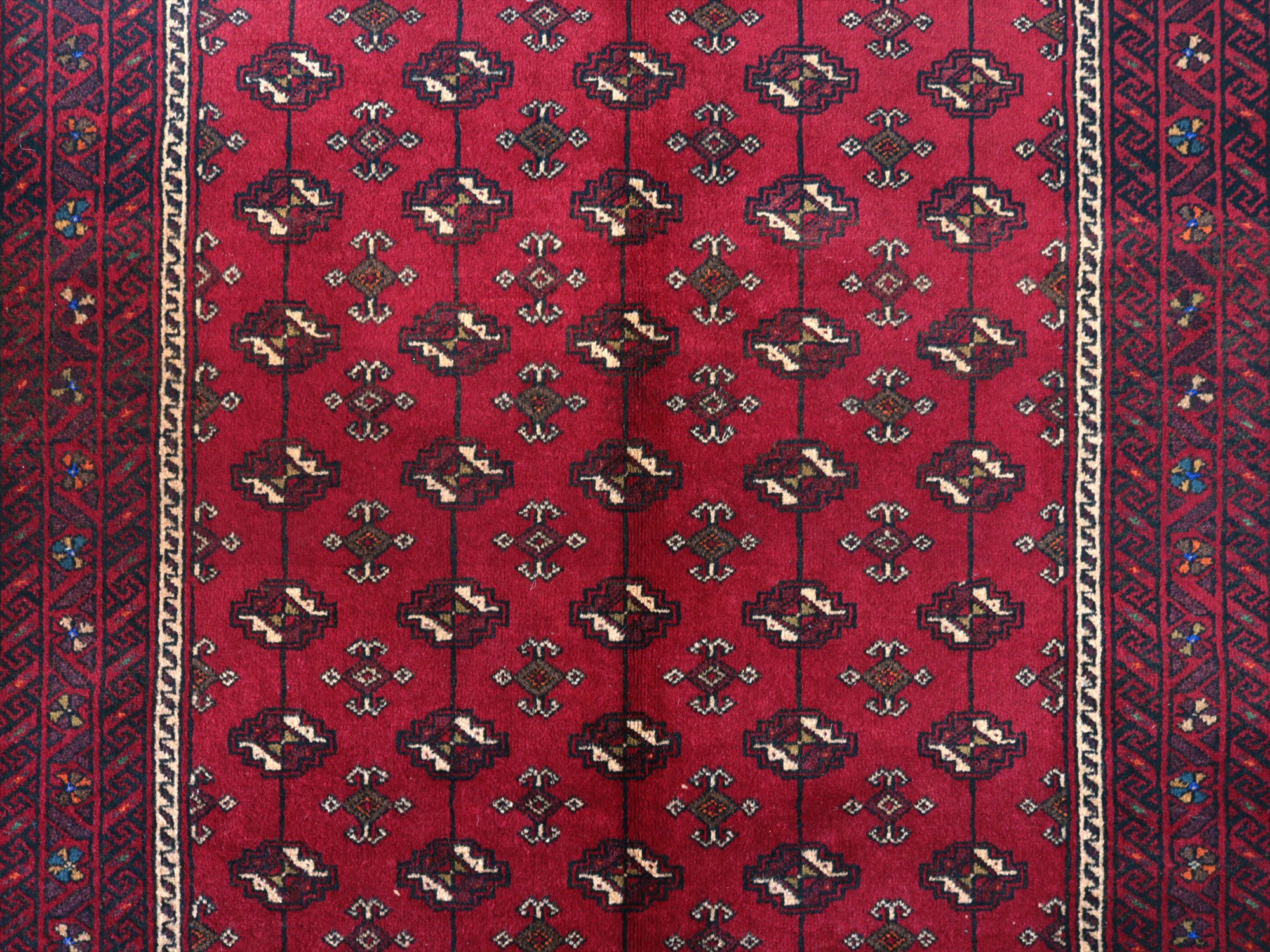 イランの手織りラグ バルーチ194×114cm 連続する幾何学模様
