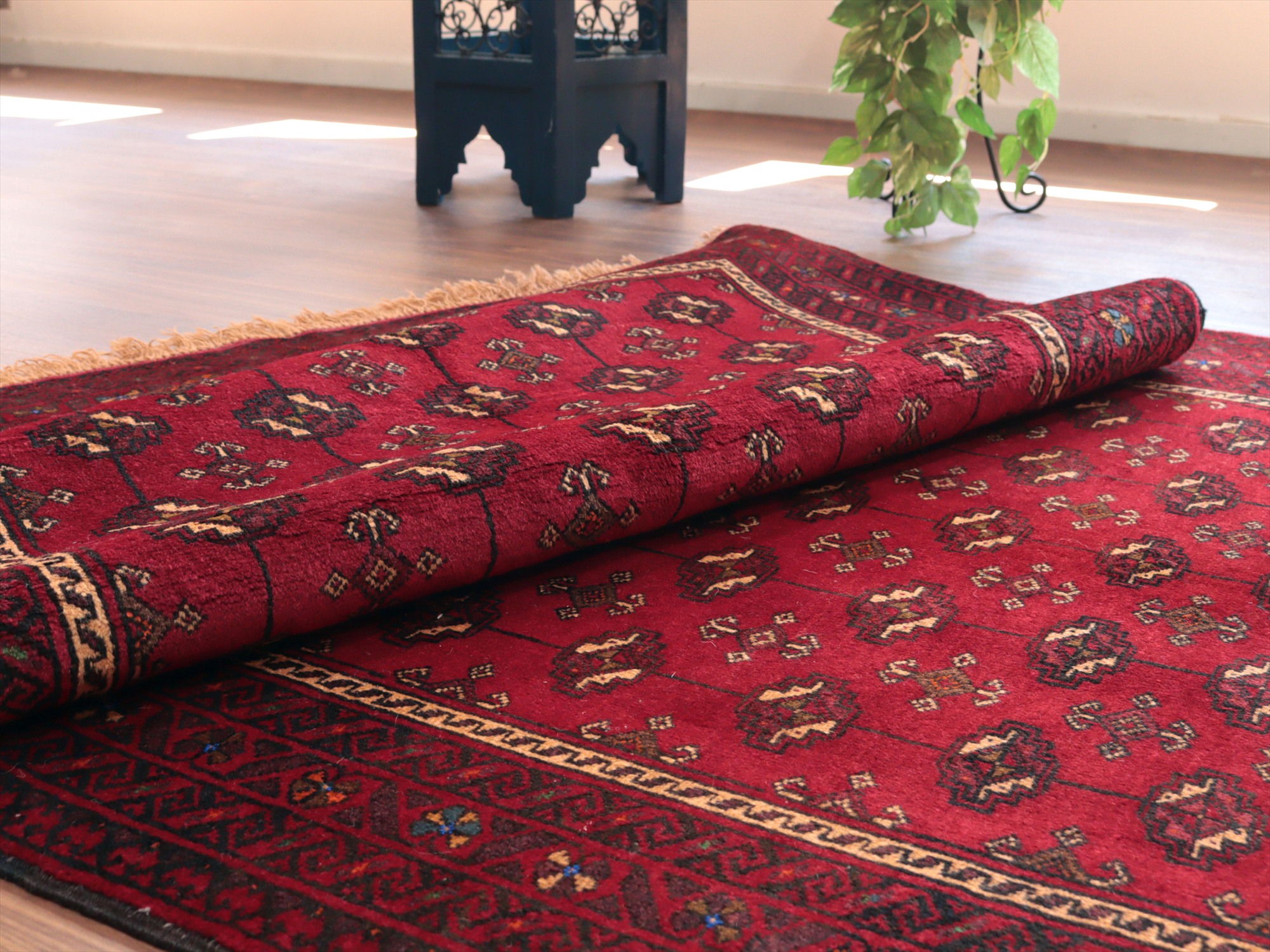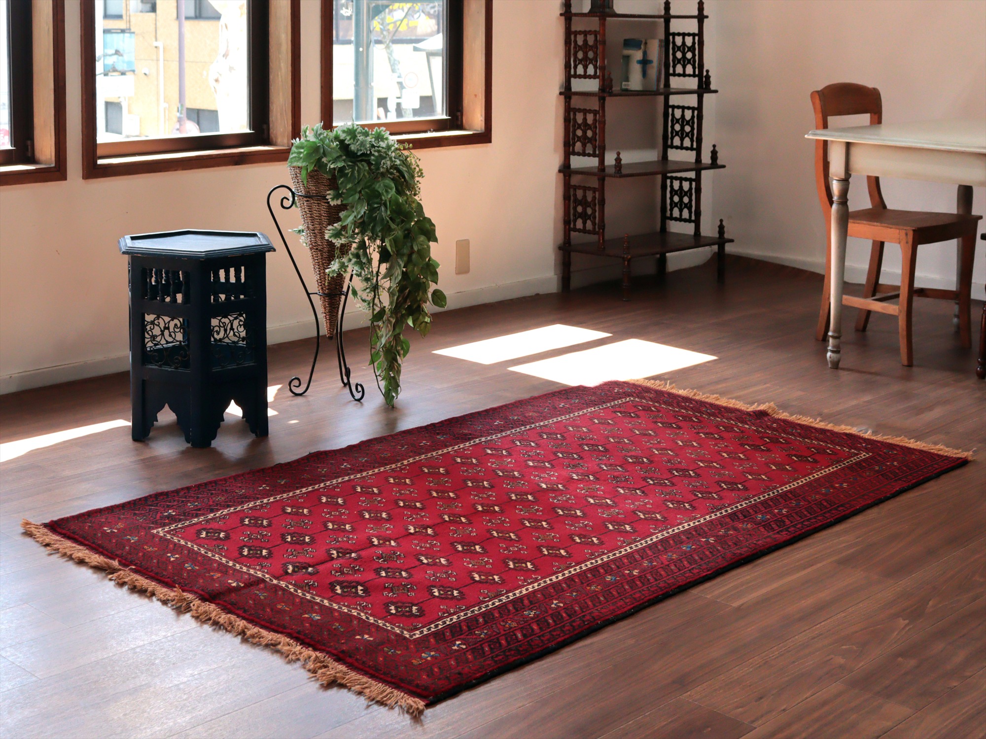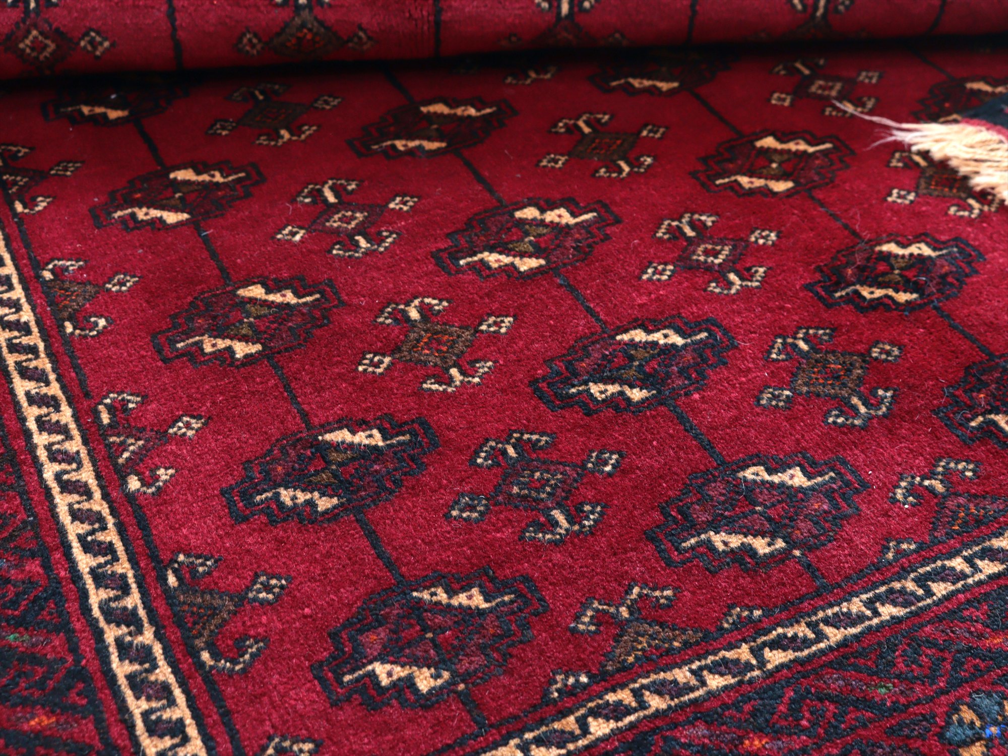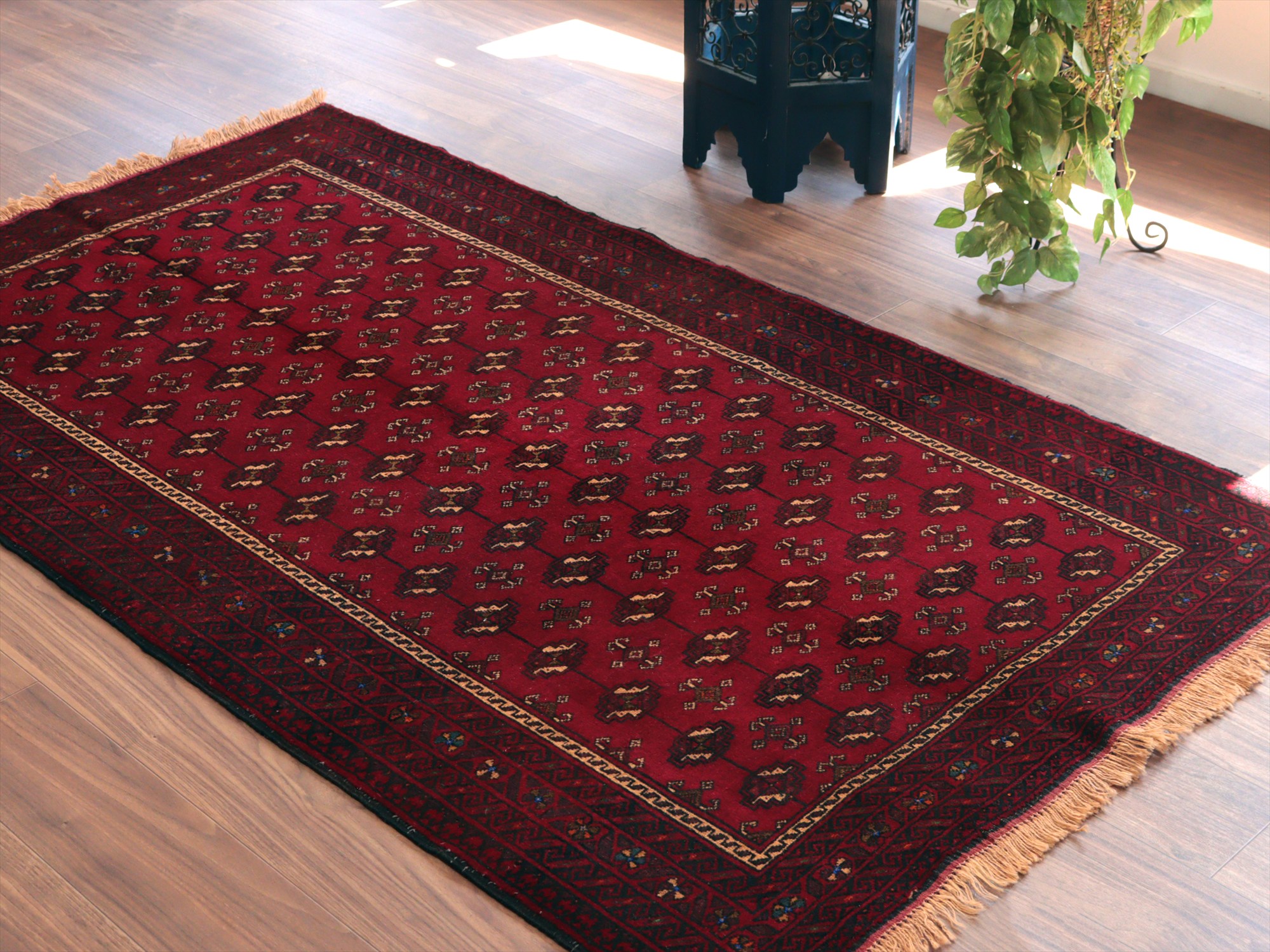 イランの手織りラグ バルーチ194×114cm 連続する幾何学模様