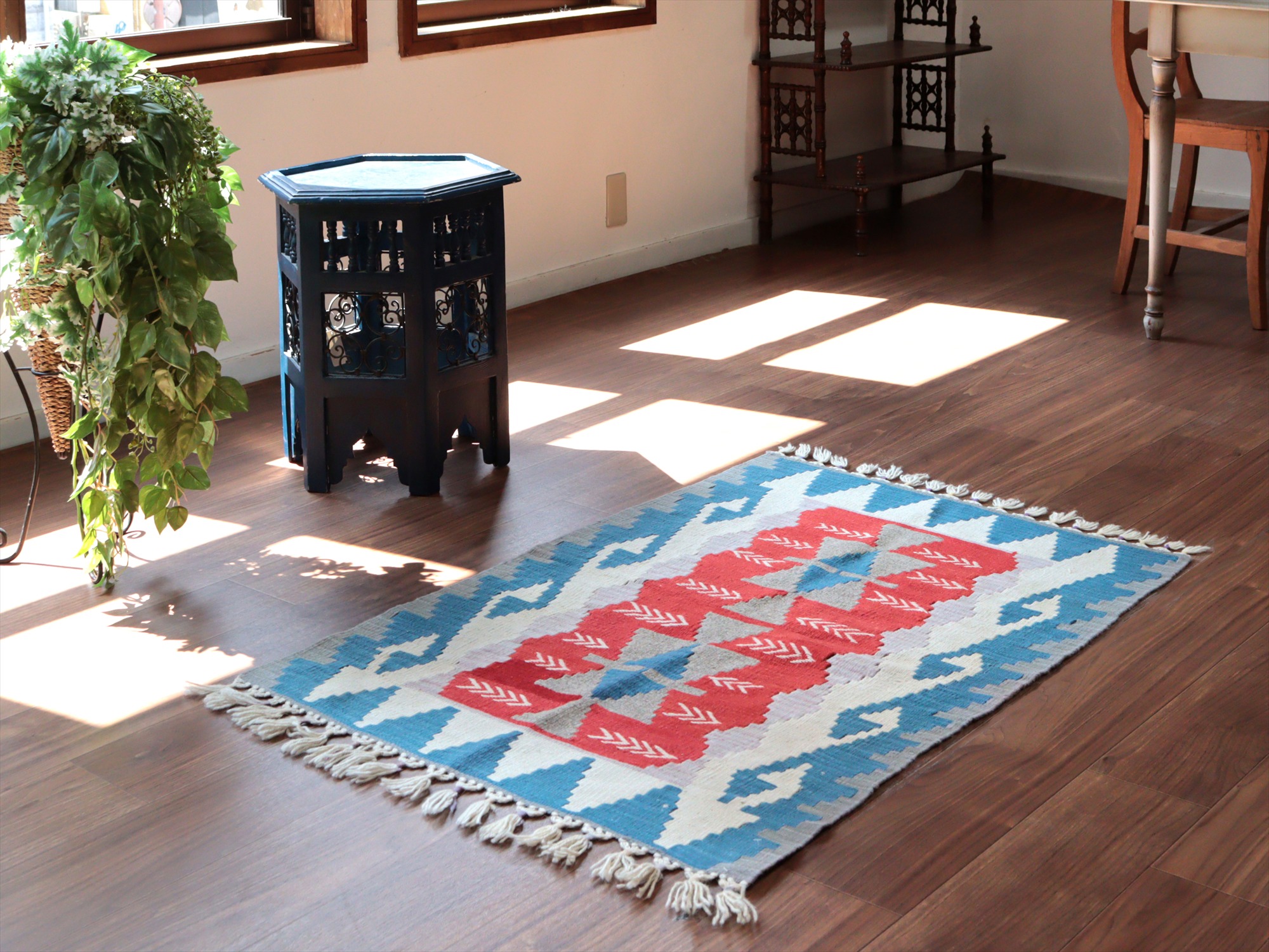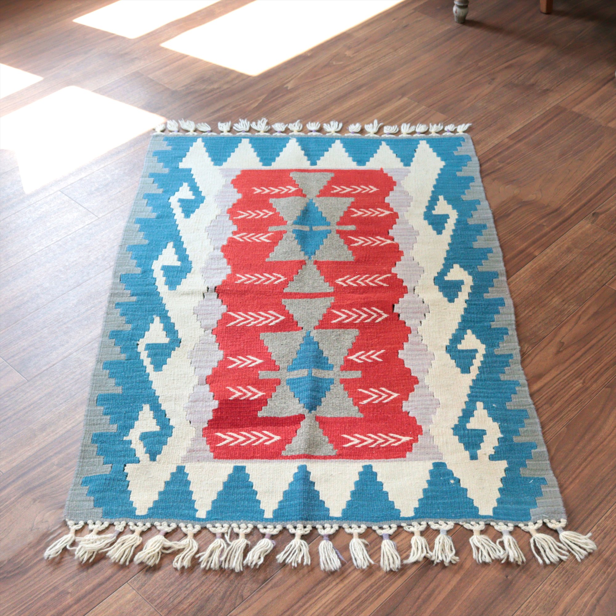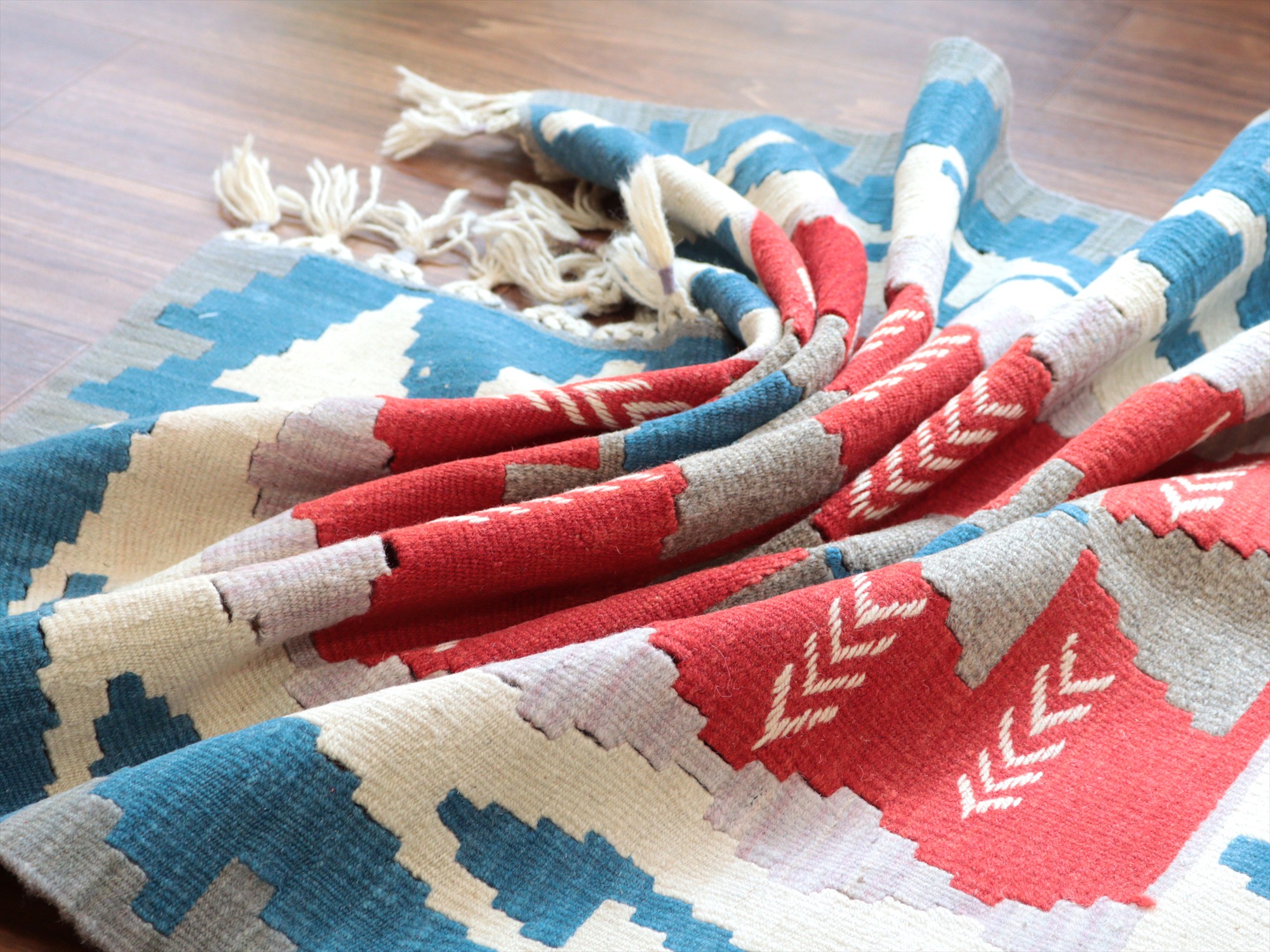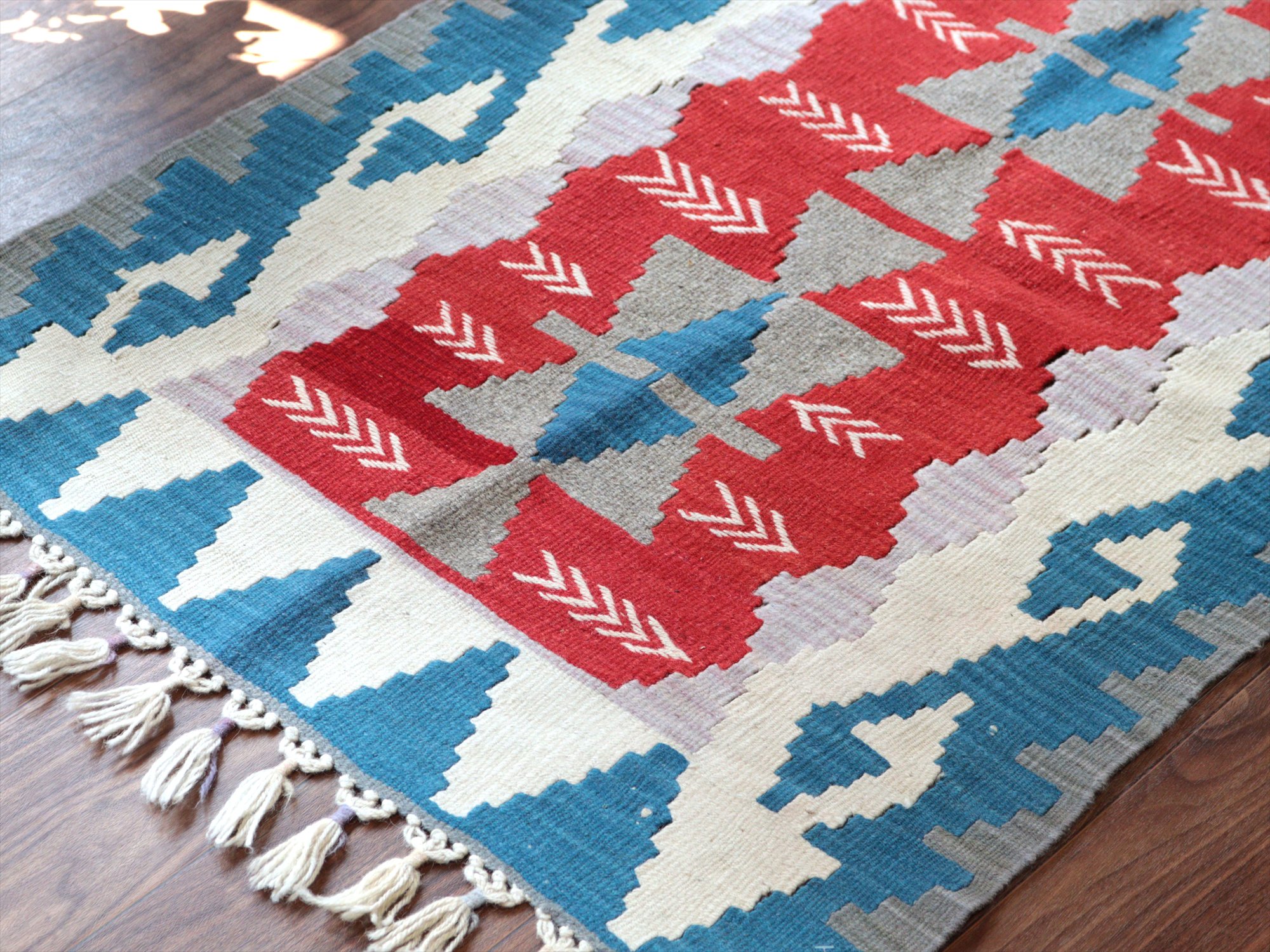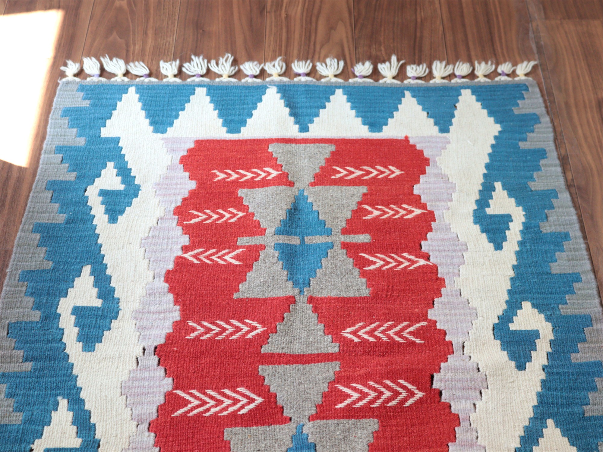 カイセリ産手織りキリム レッド&ブルー トルコの手織りラグ
