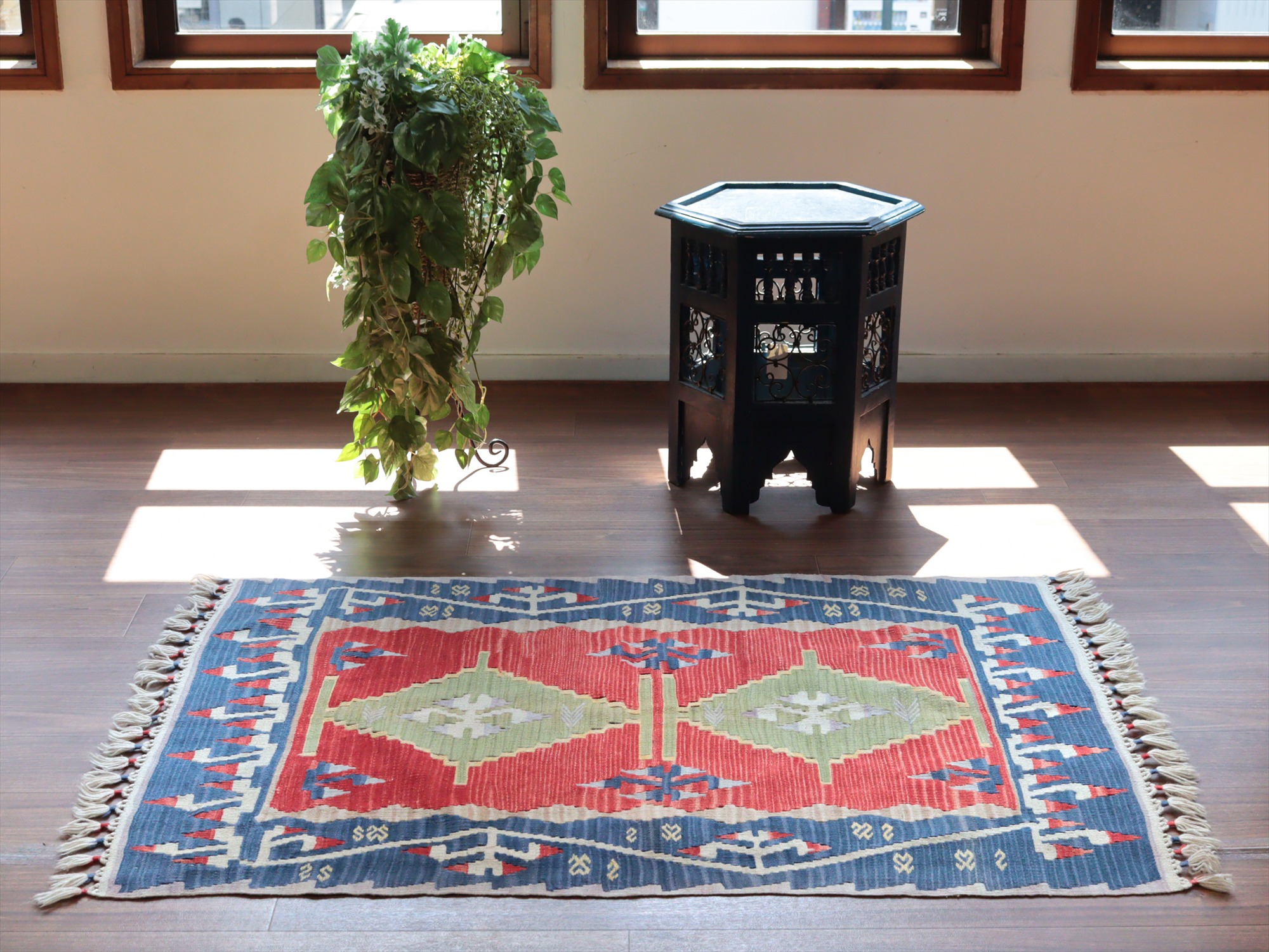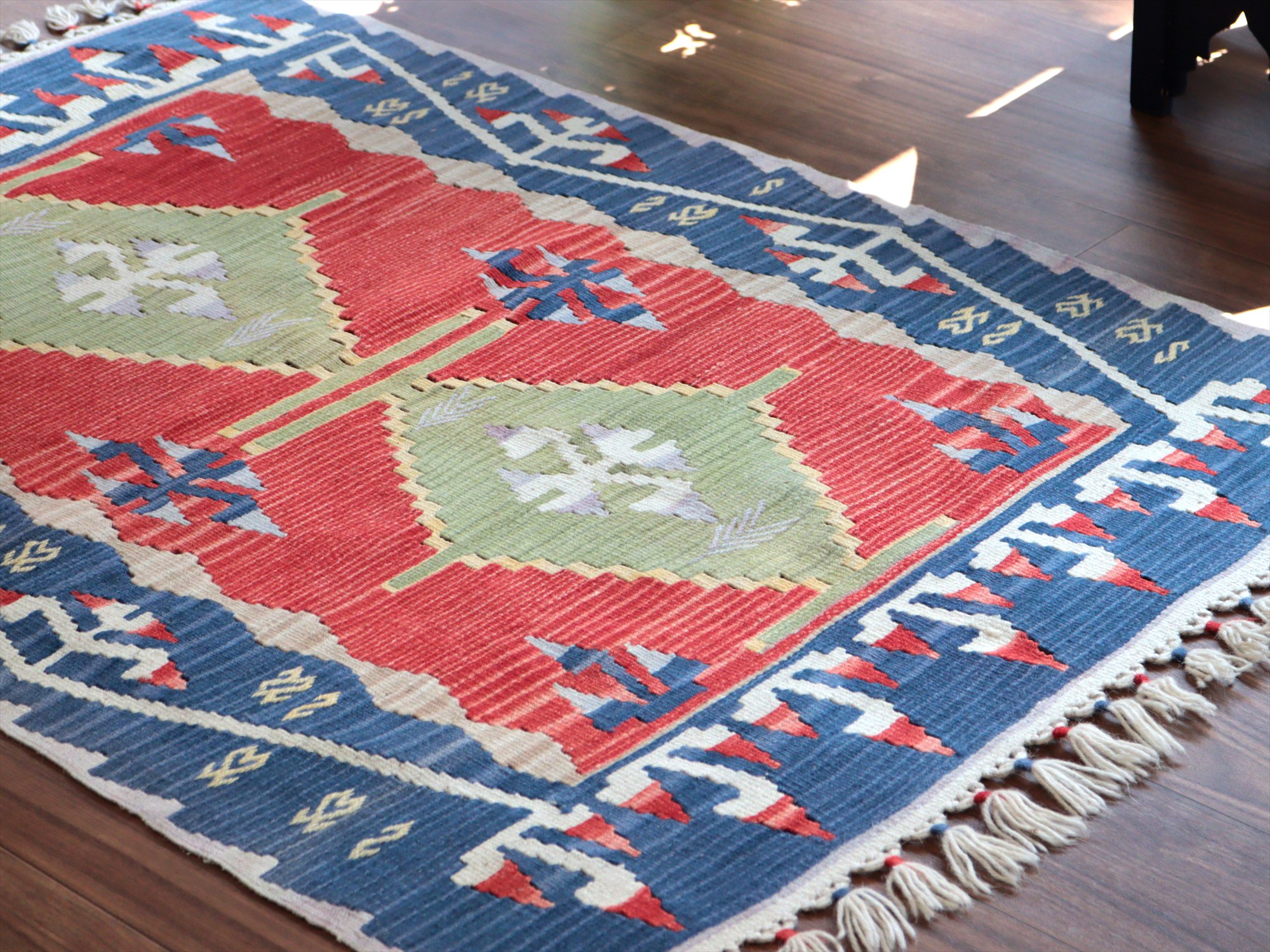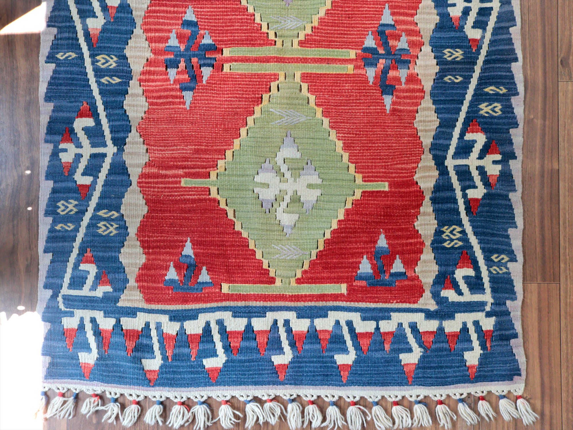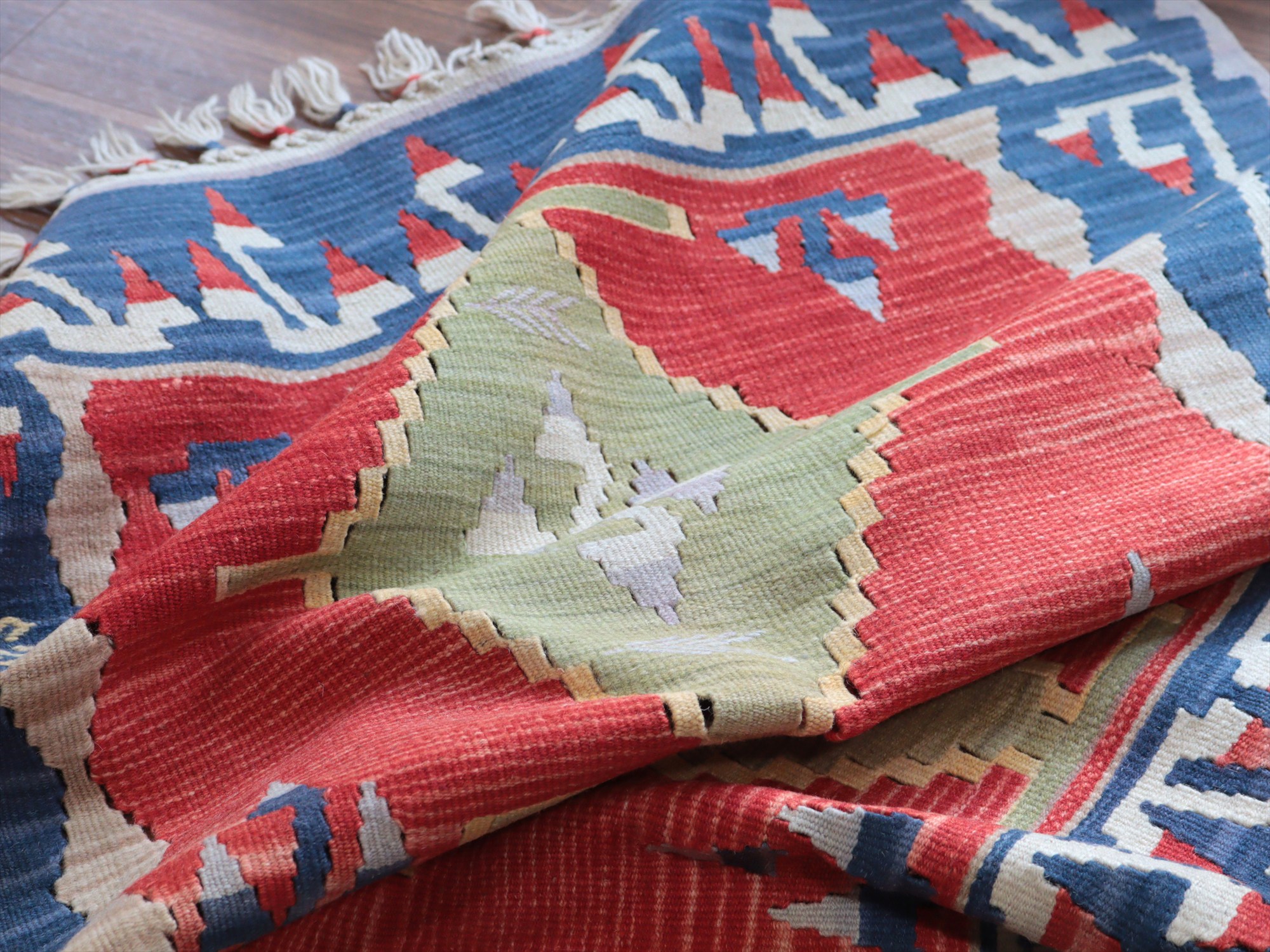 カイセリ産手織りキリム レッド&ブルー トルコの手織りラグ