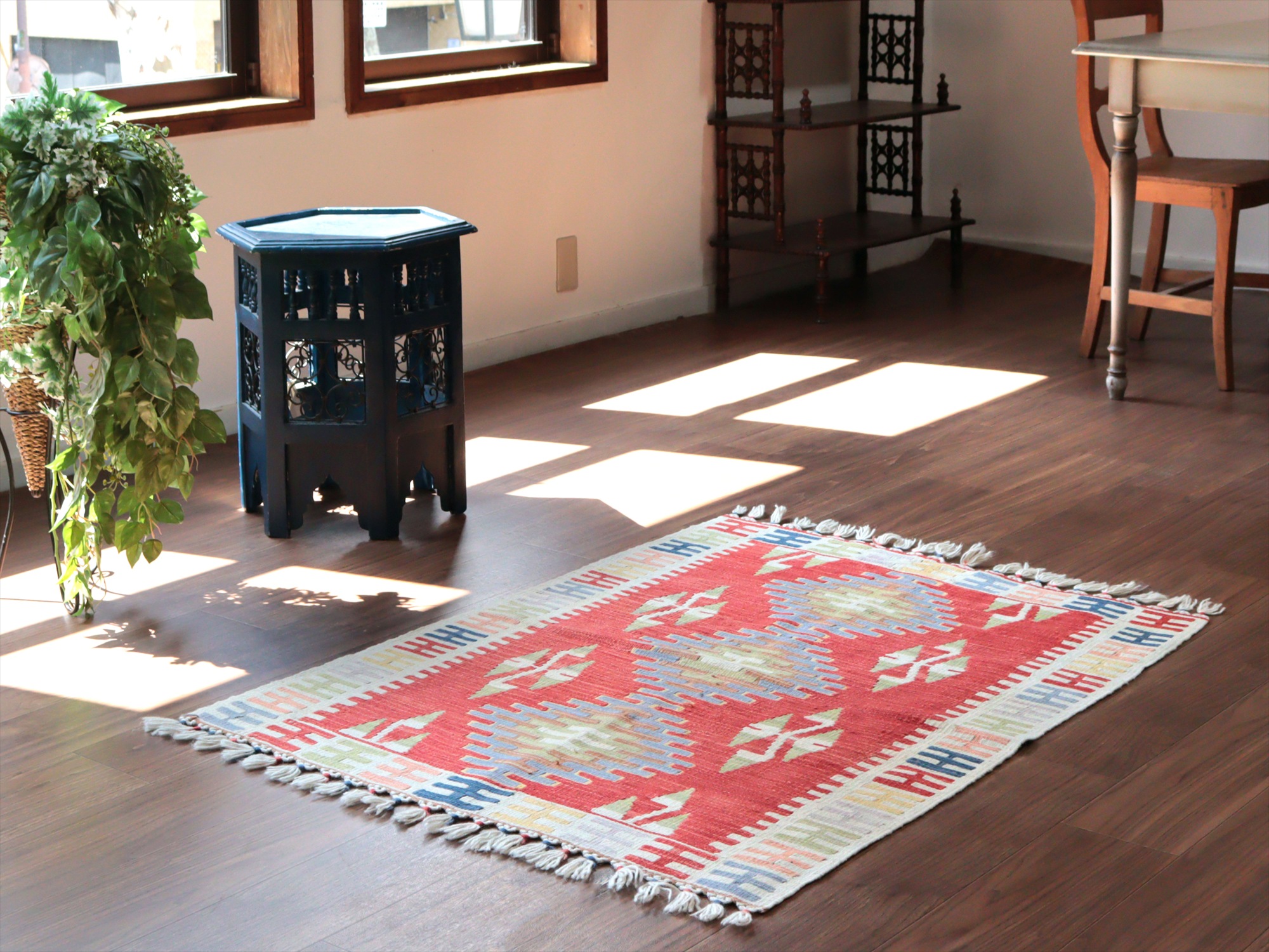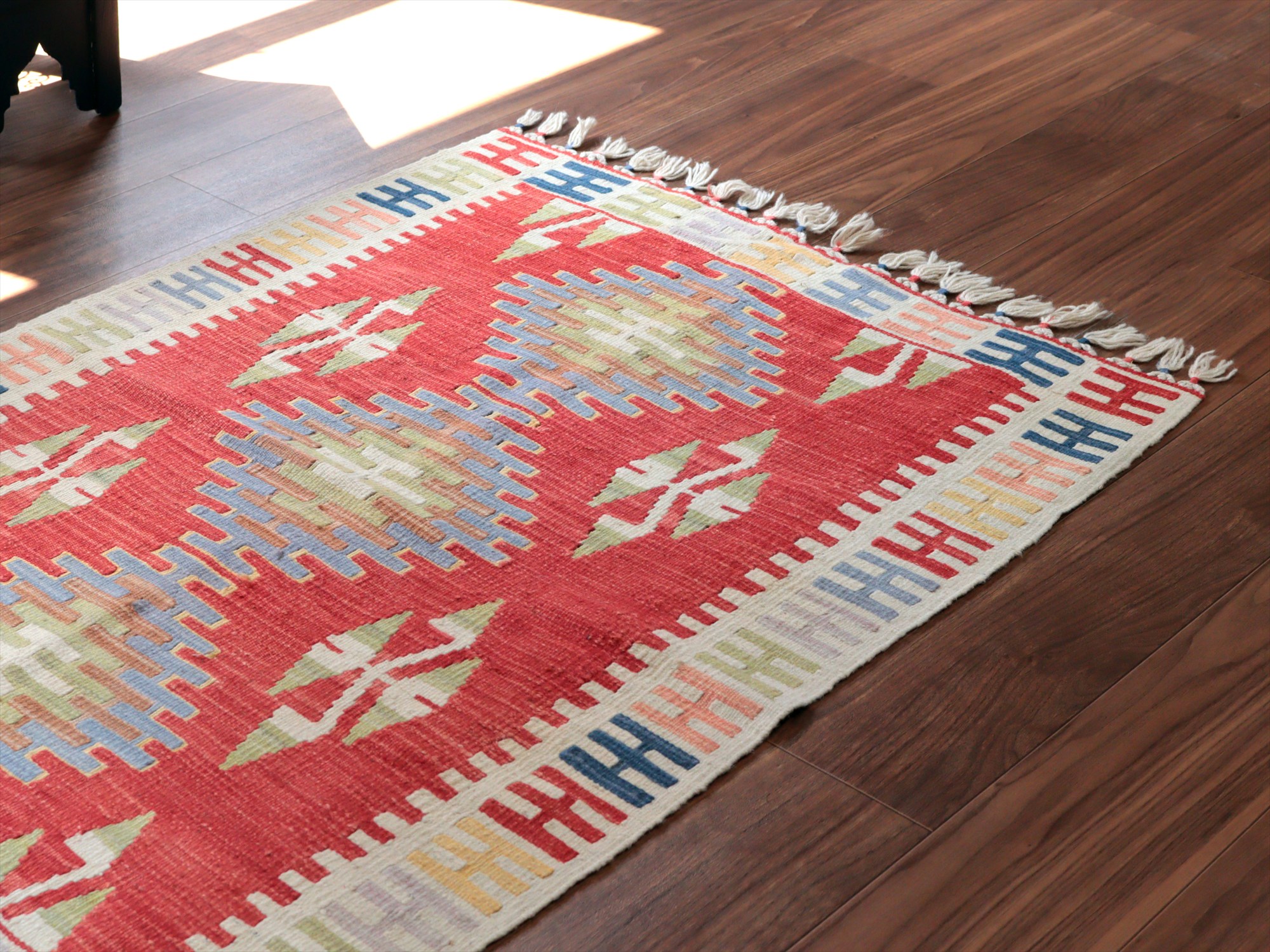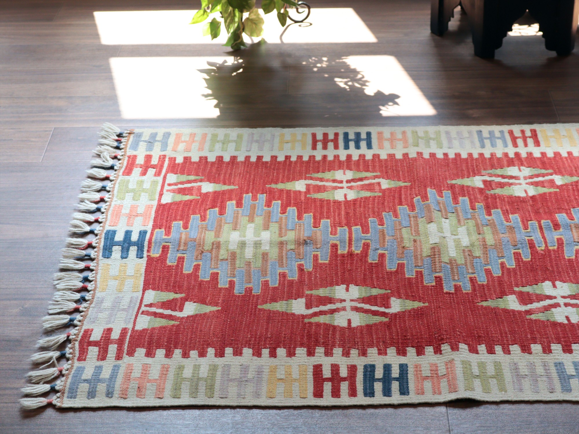 カイセリ産手織りキリム レッド&ベージュ トルコの手織りラグ